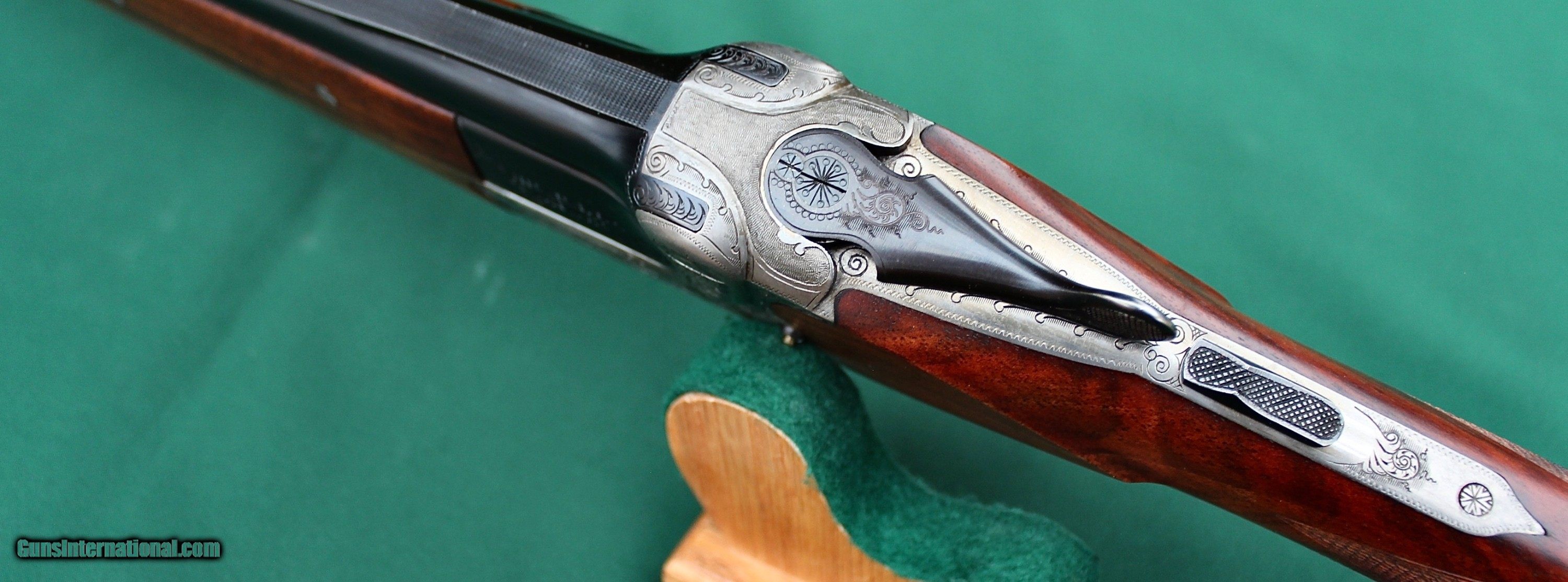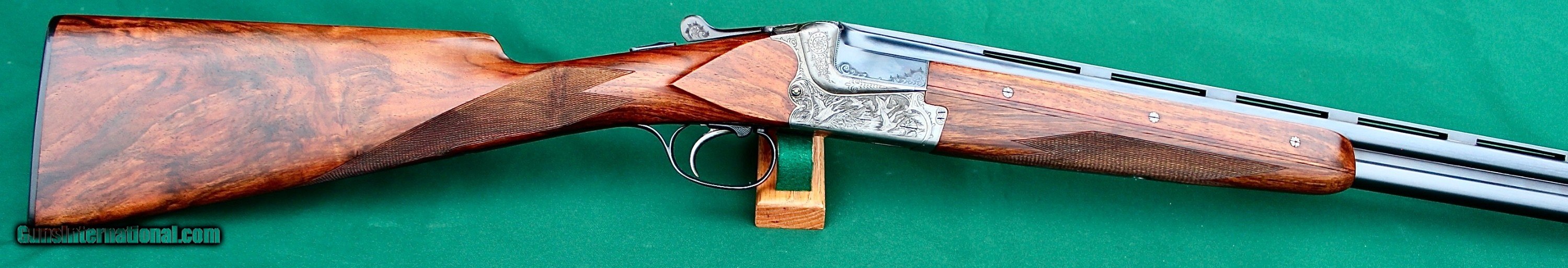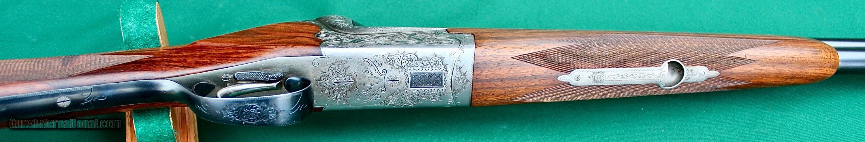 Description: This is an As New 1984 Merkel made in the old world hand made fashion. Gun doesn't appear to fired or ever taken afield. The chokes in this gun are Lt. Mod. and Mod which takes care of a wide range of hunting situations. Beautifully flat tapered rib is finished with lovely ivory bead. Single selective trigger has nice crisp even pulls. Overall this is a gun has many reminders of what old world hand made gun making was all about! Price: $6250.00 - Plus $75.00 shipping to lower 48. AK & HI Shipping: 2nd day air $175.00 Shotgun Gauge: 20 Gauge Manufacturer: Merkel Model: 201E Serial Number: 167927 Barrel Length: 26 3/4 - 68cm Chambers: 2 3/4 (Marked 70mm) Ejectors: Strong and In Time Condition: As New Metal Condition: As New Wood Condition: As New Bore Condition: Perfect Triggers: Single Selective Stock: Southern European Walnut Stock Dimensions: 1 3/8 x 2 3/8 x 14 1/2 Stock Heel: Merkel Logo Butt Plate Stock Cast: 1/8 off at heel. 1/4 at toe. Fore End: 3 Piece LOP: 14 1/2 Rib: Vent Rib Finish: French Grey Weight: 6 lbs. 12 oz. Sights: Ivory Manufacture Date: 7-84 Chokes: Mod & Imp. Mod Choke Left: .017 Choke Right: .011 Item Location: WI Price: $6,250.00 Contact Seller |