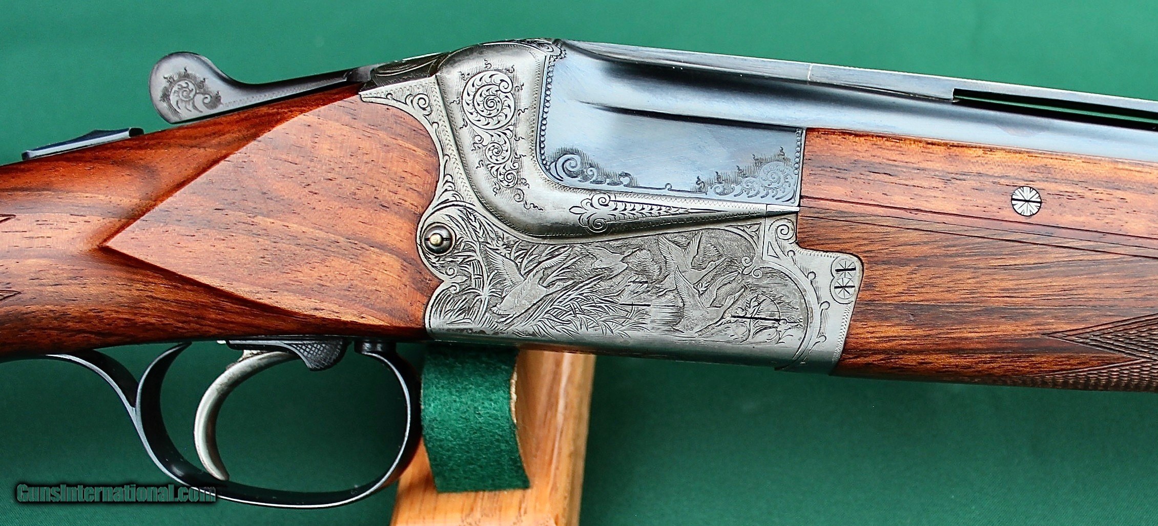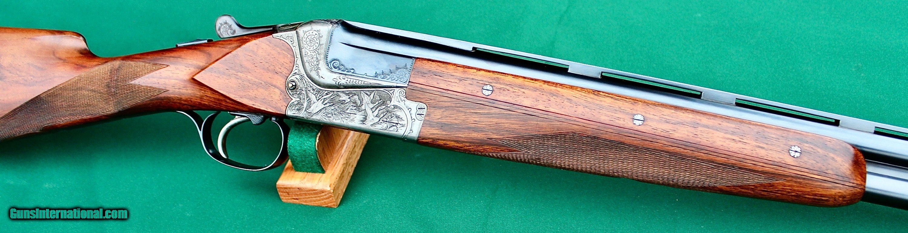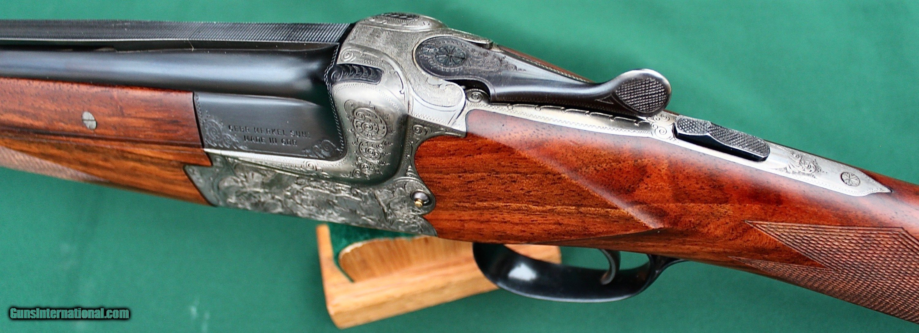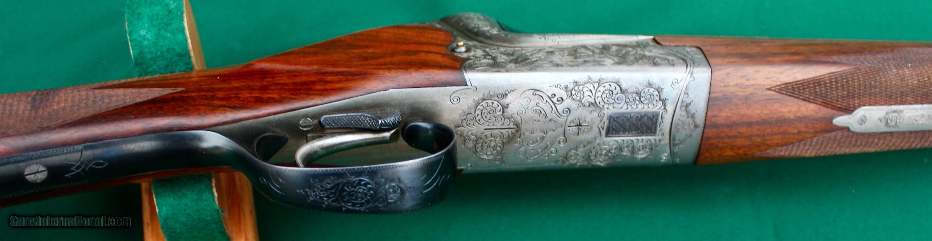 Description: This is an As New 1984 Merkel made in the old world hand made fashion. Gun doesn't appear to fired or ever taken afield. The chokes in this gun are Lt. Mod. and Mod which takes care of a wide range of hunting situations. Beautifully flat tapered rib is finished with lovely ivory bead. Single selective trigger has nice crisp even pulls. Overall this is a gun has many reminders of what old world hand made gun making was all about! Price: $6250.00 - Plus $75.00 shipping to lower 48. AK & HI Shipping: 2nd day air $175.00 Shotgun Gauge: 20 Gauge Manufacturer: Merkel Model: 201E Serial Number: 167927 Barrel Length: 26 3/4 - 68cm Chambers: 2 3/4 (Marked 70mm) Ejectors: Strong and In Time Condition: As New Metal Condition: As New Wood Condition: As New Bore Condition: Perfect Triggers: Single Selective Stock: Southern European Walnut Stock Dimensions: 1 3/8 x 2 3/8 x 14 1/2 Stock Heel: Merkel Logo Butt Plate Stock Cast: 1/8 off at heel. 1/4 at toe. Fore End: 3 Piece LOP: 14 1/2 Rib: Vent Rib Finish: French Grey Weight: 6 lbs. 12 oz. Sights: Ivory Manufacture Date: 7-84 Chokes: Mod & Imp. Mod Choke Left: .017 Choke Right: .011 Item Location: WI Price: $6,250.00 Contact Seller |