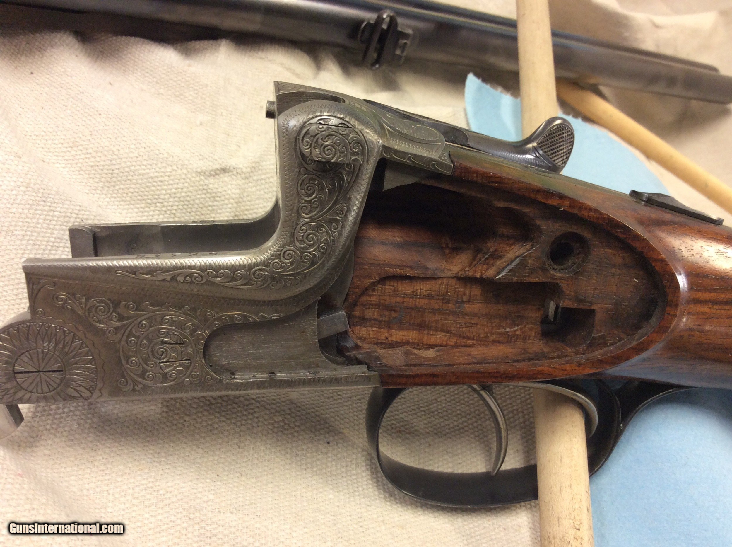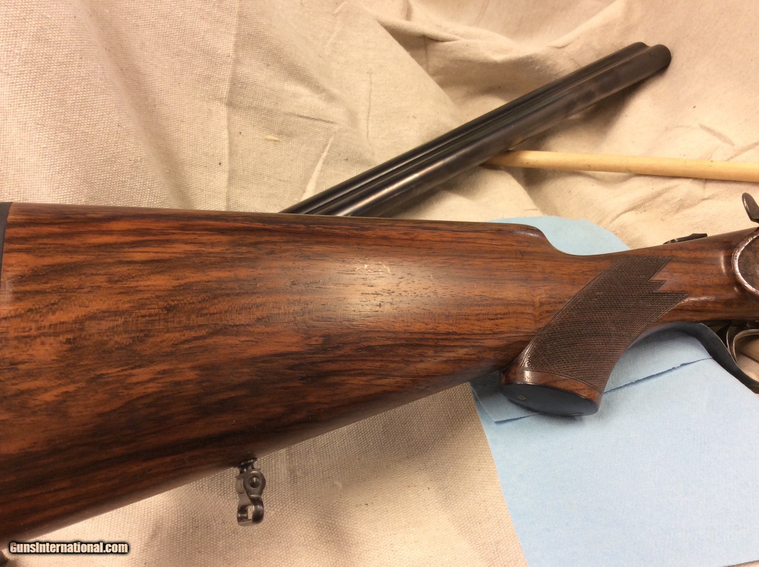 Description: We have a very lightly used 203 from the 80’s. Most of the lite marks appear to be from safe storage. There is a little blue wear at the muzzles. As shown the locks are clean and the wood is without qracks in the head. This shotgun features double triggers. Hand detachable sidelocks uncut butt stock at 13 5/8 with an added limbsaver pad to 14 1/8” Chokes Top= .021 Bottom = .010 28” barrels Ejectors of course SOLD Shotgun Gauge: 12 Gauge |