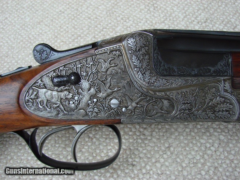 Description: This Merkel 203 E Sidelock O/U Shotgun in 16/70 from 1980 is a very fine example of German craftsmanship. LOP is 14.5 inches. Weight is approx. 6.7 lbs 7oz. This Sidelock O/U has very nice deep exclusive engraving on the side locks with Dog and 4 Ducks on the right side, Dog, three hens and a hare on the left side. Country Side fill. This gun has the exclusive deep relief animal engraving from the Merkel 303E which greatly increases the value. Chokes are Modified and Modified Improved in the 28 in Barrels. There are NO importer’s markings anywhere on the gun. Today's value is in excess of $ 14.000. This is truly a great value for an investment or just a beautiful gun to hunt with. This is a fine example of a great O/U Shotgun. It will definitely make some collector or shooter very happy. Thanks for Looking! SOLD Manufacturer: Merkel Model: 203E Condition: Very Good Metal Condition: Very Good Wood Condition: Very Good Bore Condition: Mirror Barrels: 28in Gauge Info: 16 LOP: 14 1/2 in. Manufacture Date: 1980 Chokes: Modified and Modified improved |