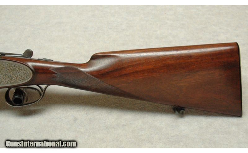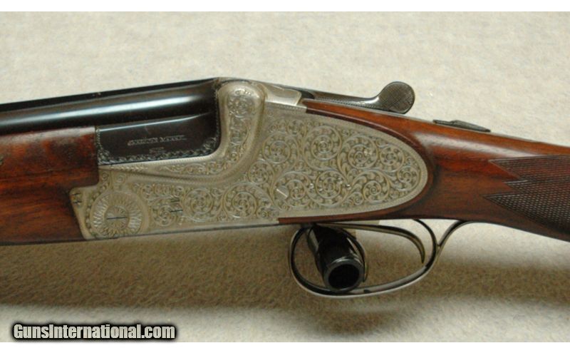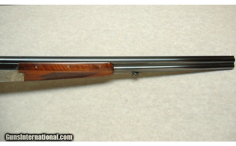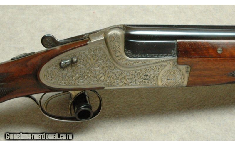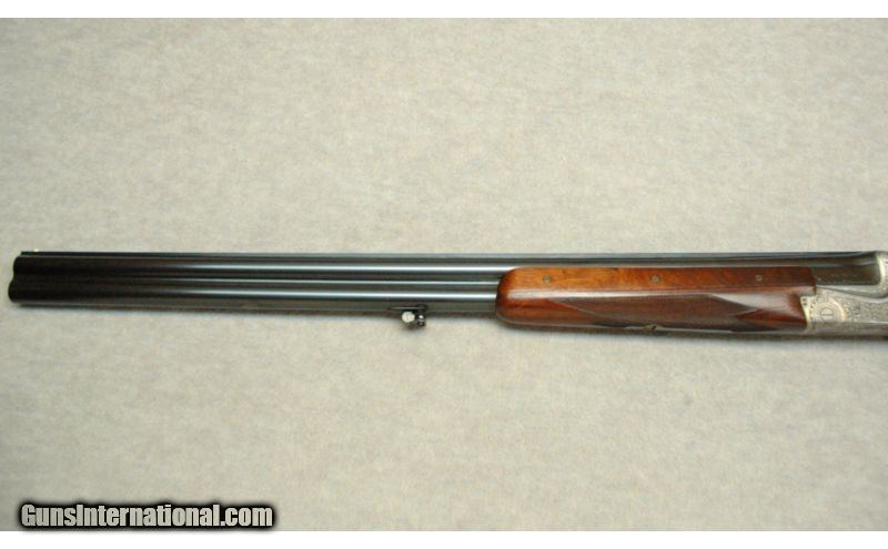 Description: Built in March of 1961, this ornately engraved over/under is spectacular! Featuring highly engraved 54 pin removable side locks with cocking indicators. Double triggers with an articulated front trigger, ejectors, long bottom tang and secondary interceptor sears. The inletting is impeccable as if the high grade walnut stock grew into the metal. The lock up is quite good with the top lever resting at center. The LOP is 14 ¼”, DAH is 2 ½”, DAC is 1 ½” and it weights 6 pounds, 14 ounces. SOLD Manufacturer: 1961 Caliber Info: 12 Gauge. Chambers: Over under. Metal Condition: Excellent. Wood Condition: Excellent. Bore Condition: Bright. Barrels: 27" Barrels. Triggers: Double triggers. Stock: Semi gloss finish. Stock Dimensions: 14 1/4" LOP. Fore End: Checkered. Butt Pad: Factory butt plate. Weight: 6 Lbs 14 ozs. Sights: Single white bead. Item Location: La Vista, NE |