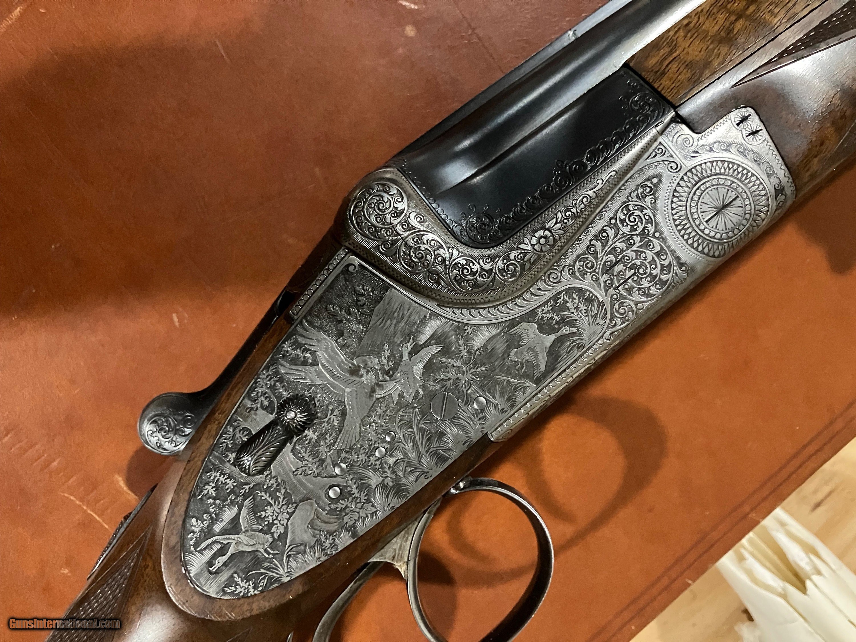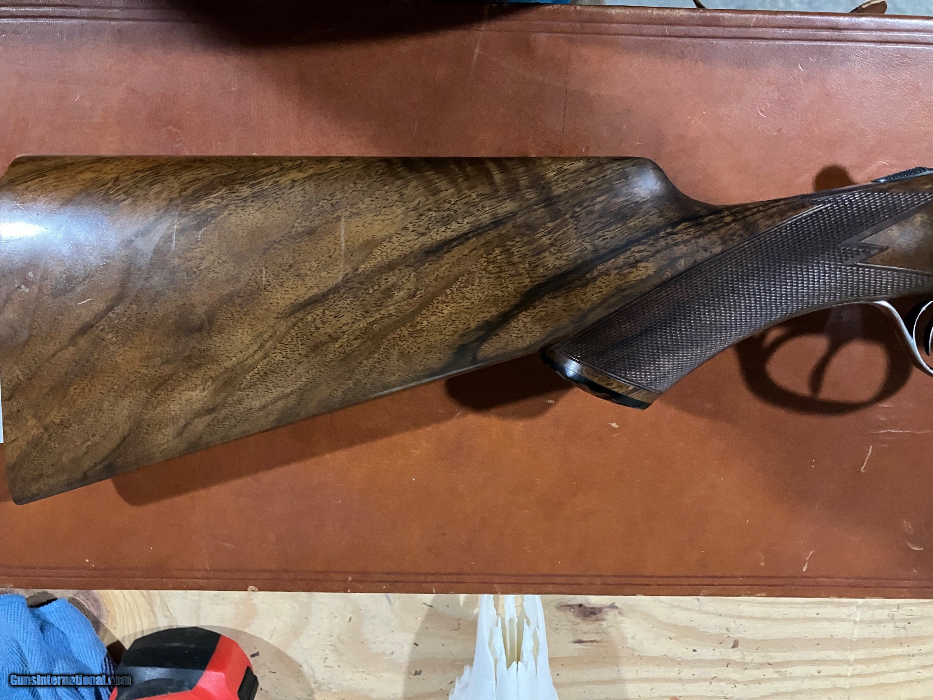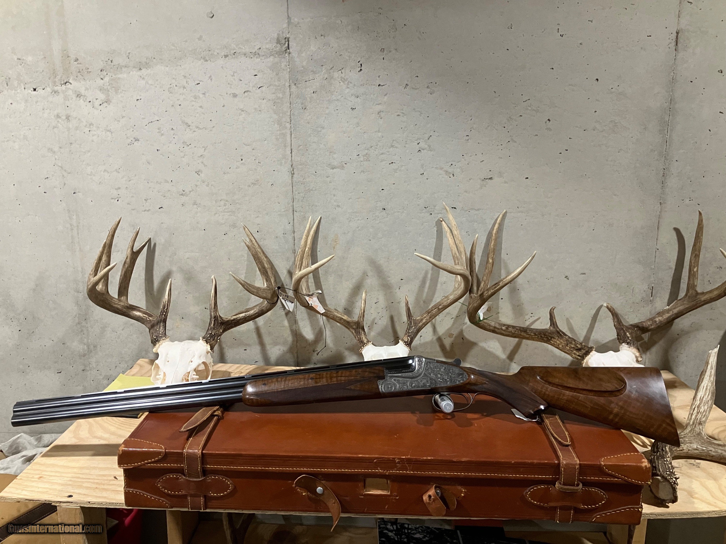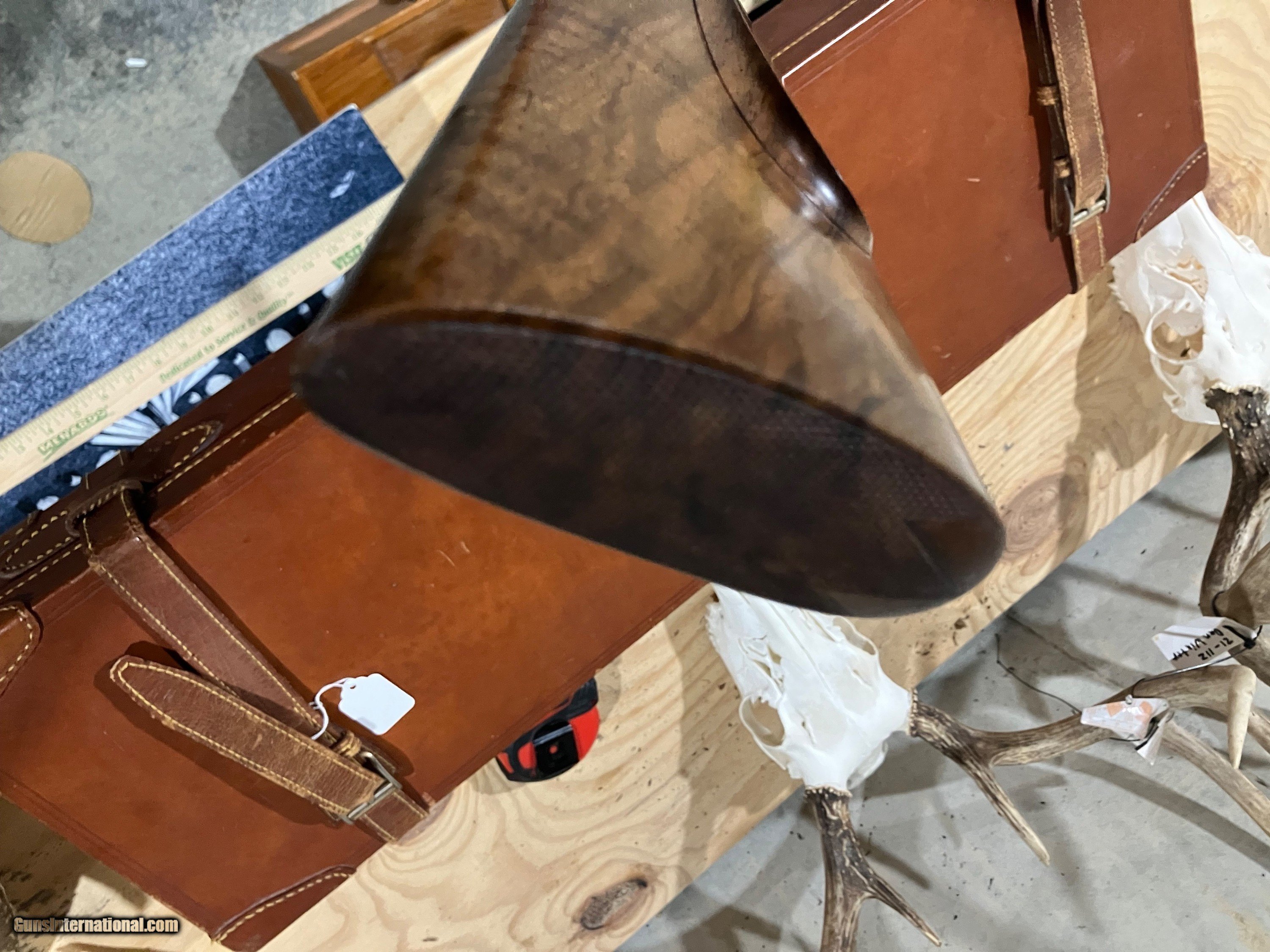 Description: 12ga 28" vent rib barrels. F/M choked. Double trigger, detachable side locks, checkered buttplate. 14" LOP 1-1/2" drop at comb 2-1/2" at heel. 98% overall finish with only small rub marks in the wood (also pictured). Trades or reasonable offers considered! actual shipping to be determined at final sale. SOLD |