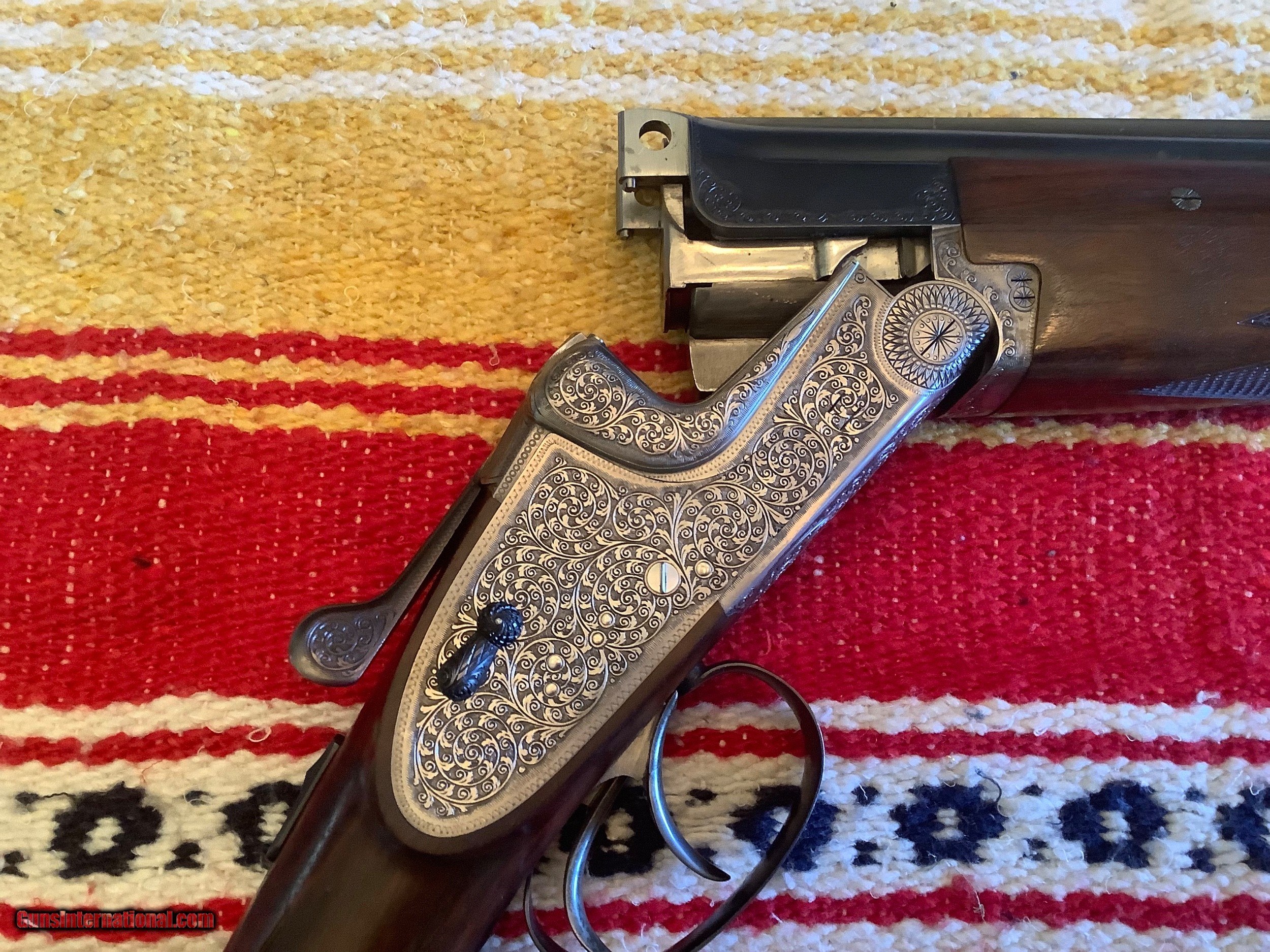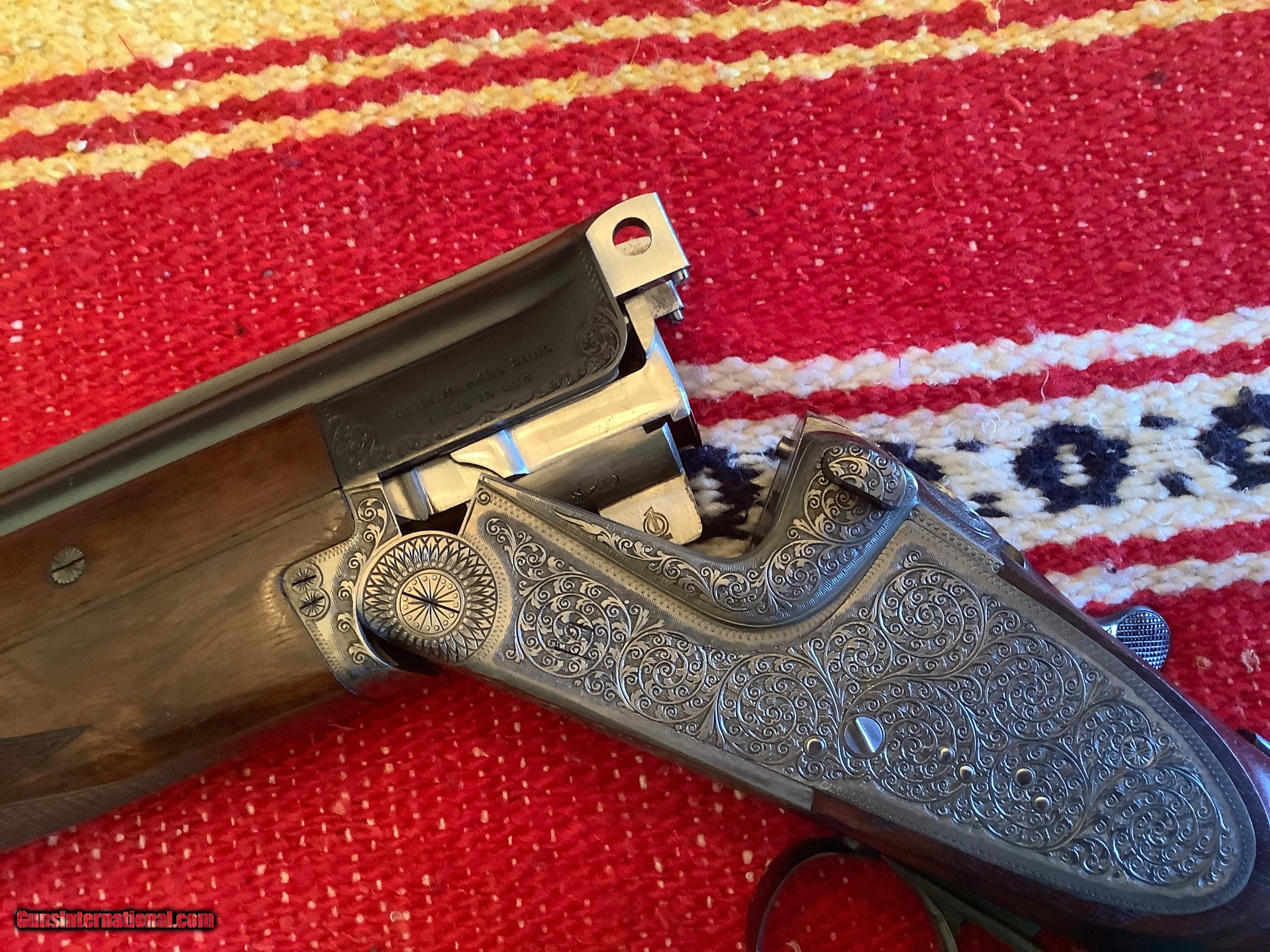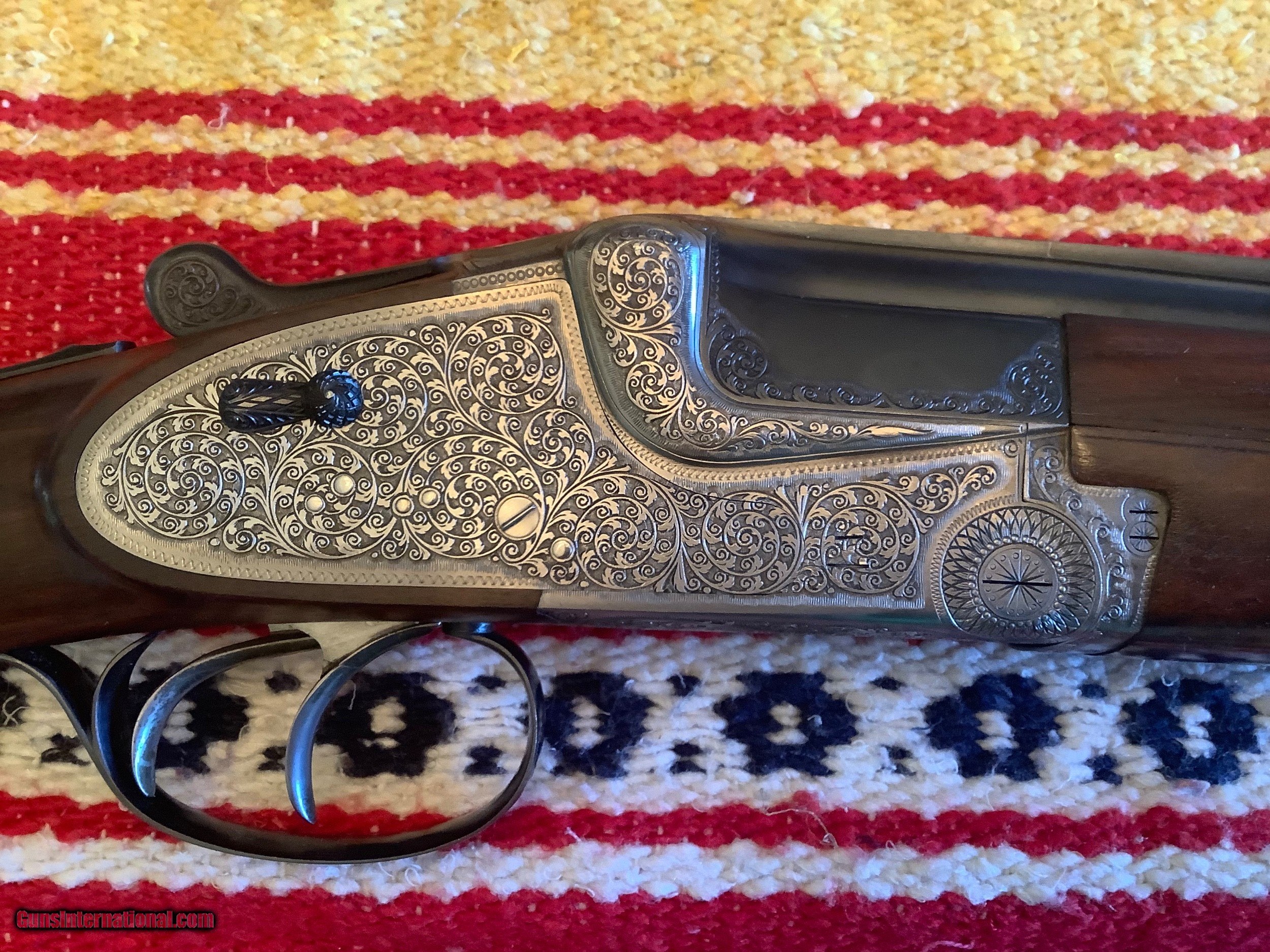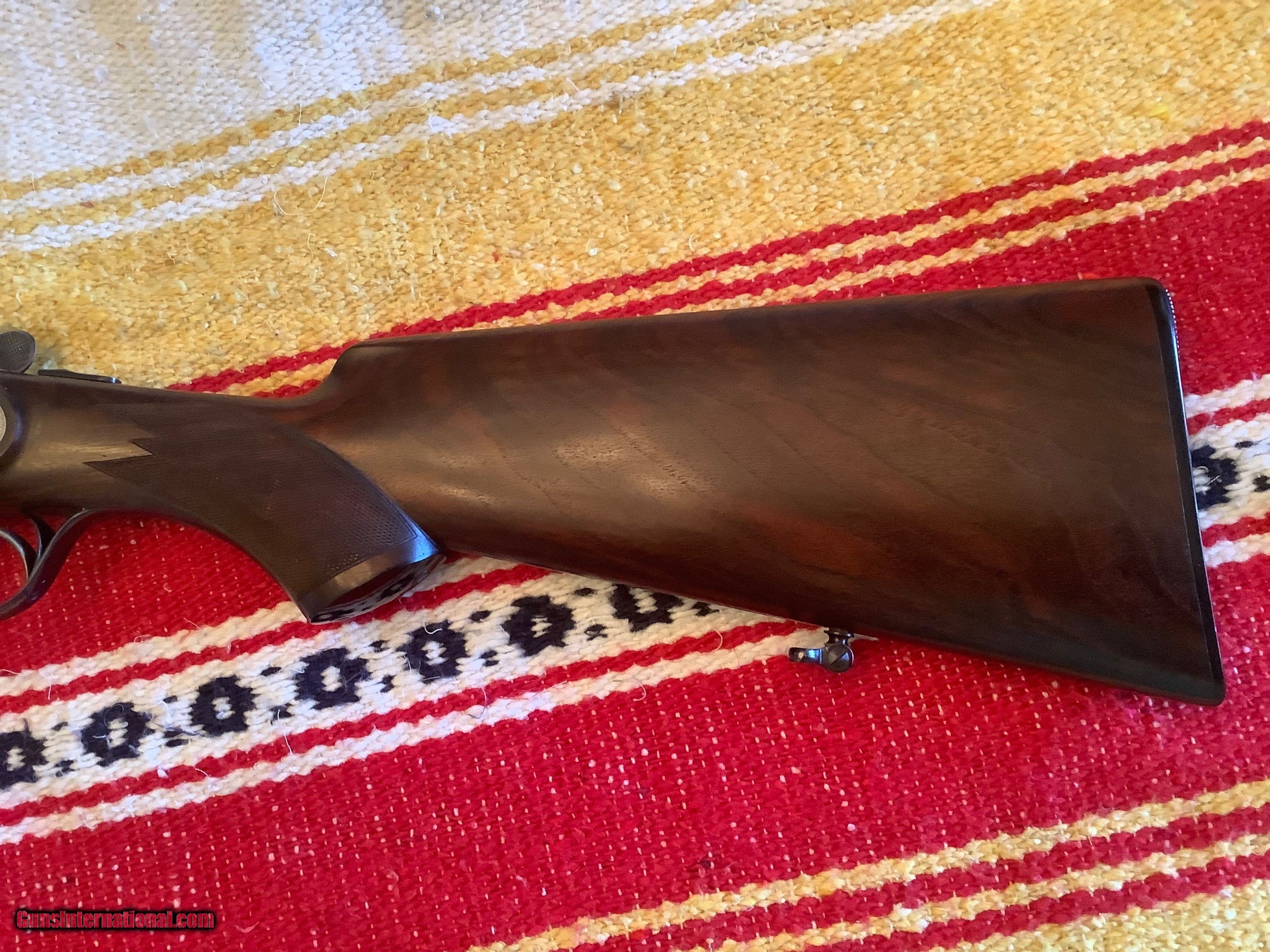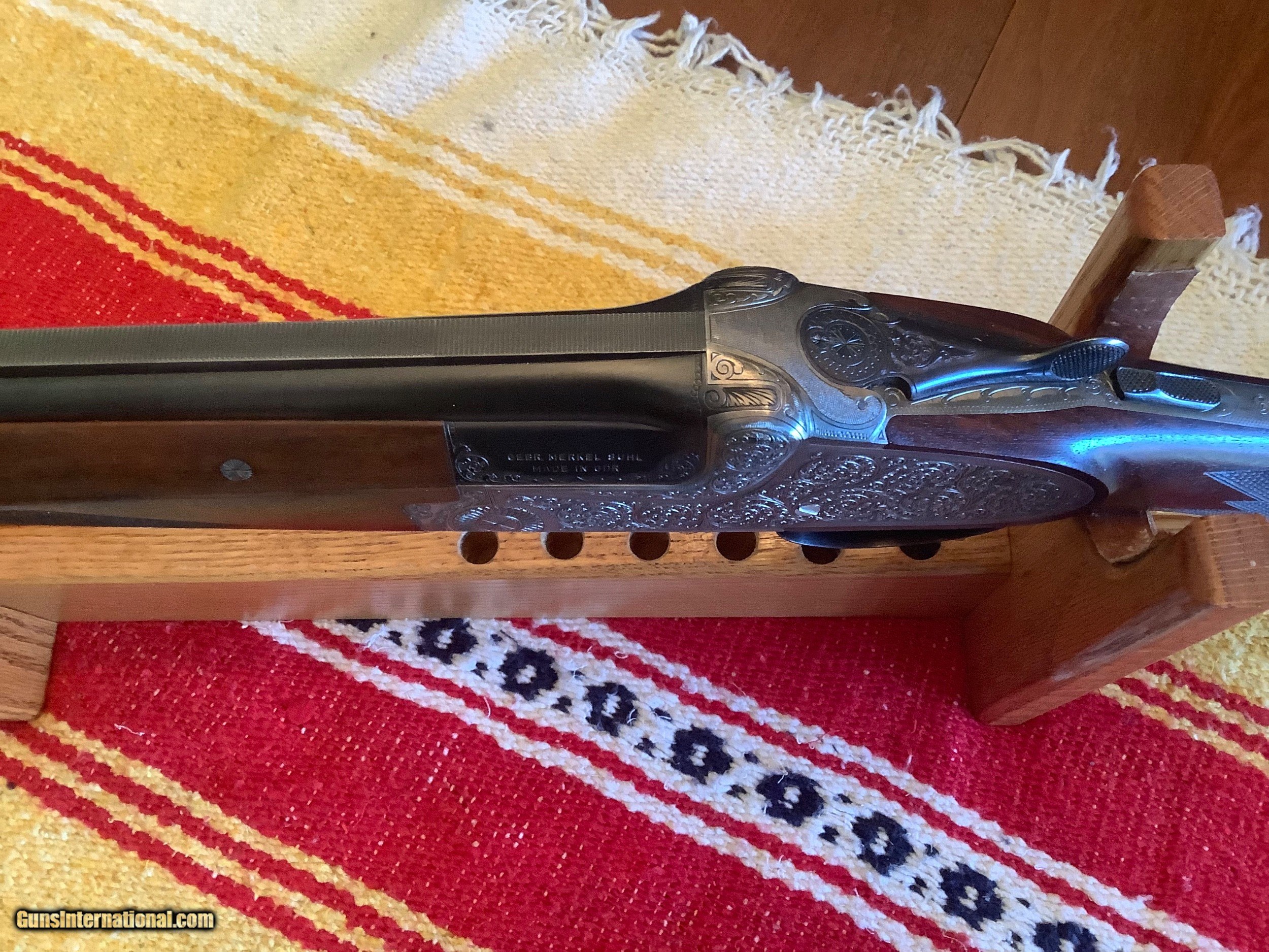 Description: Merkel 203E mfg. in may 1982 it has 27" barrels choked cyl --imp/ cyl ,gun is very slightly cast off,solid rib,hinged front trigger,hand detachable side locks,firing pin indicators,auto ejectors 2/3" chambers. DAC 1 1/2" DAH 2 5/8" LOP 14 1/2" very nice would rate 98% please call of email questions. Thanks Jim SOLD Shotgun Gauge: 20 Gauge |