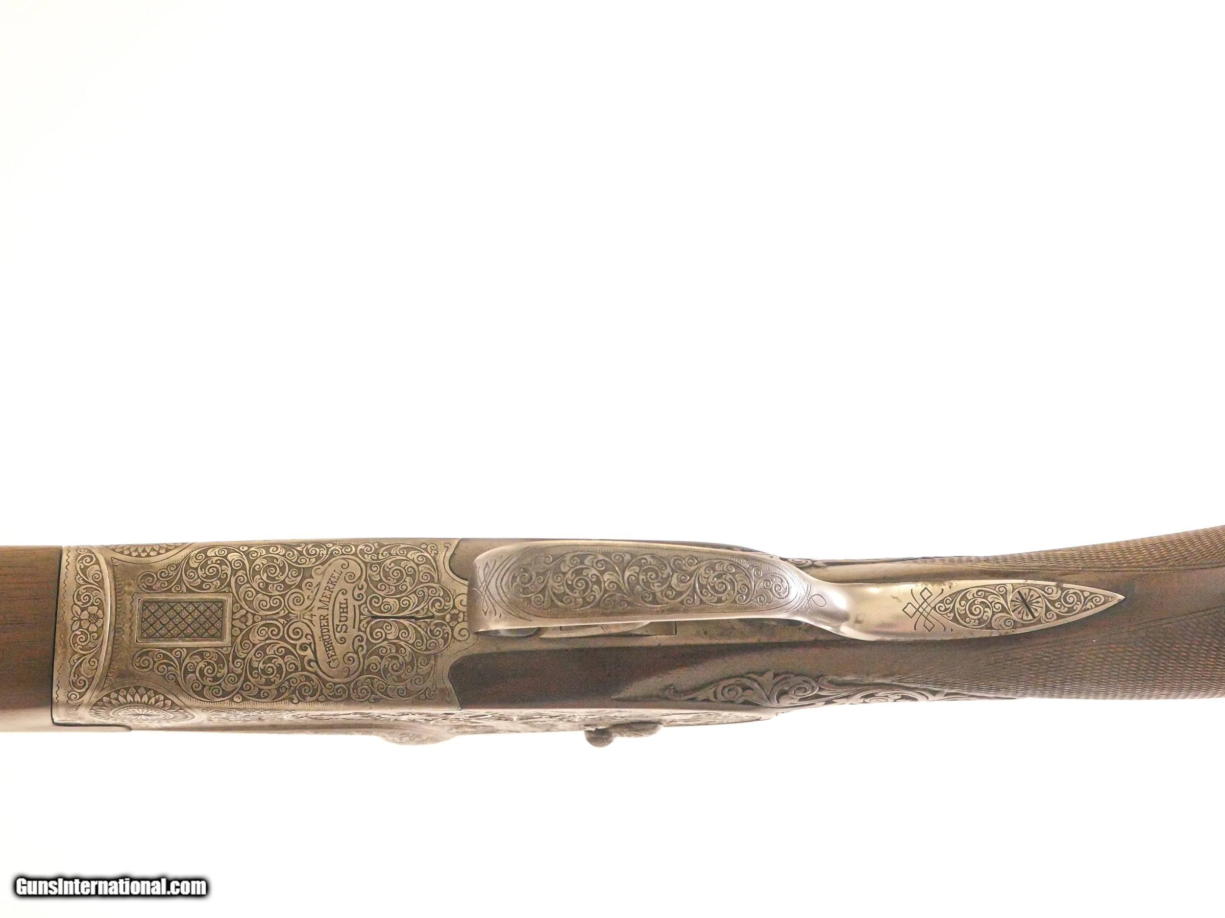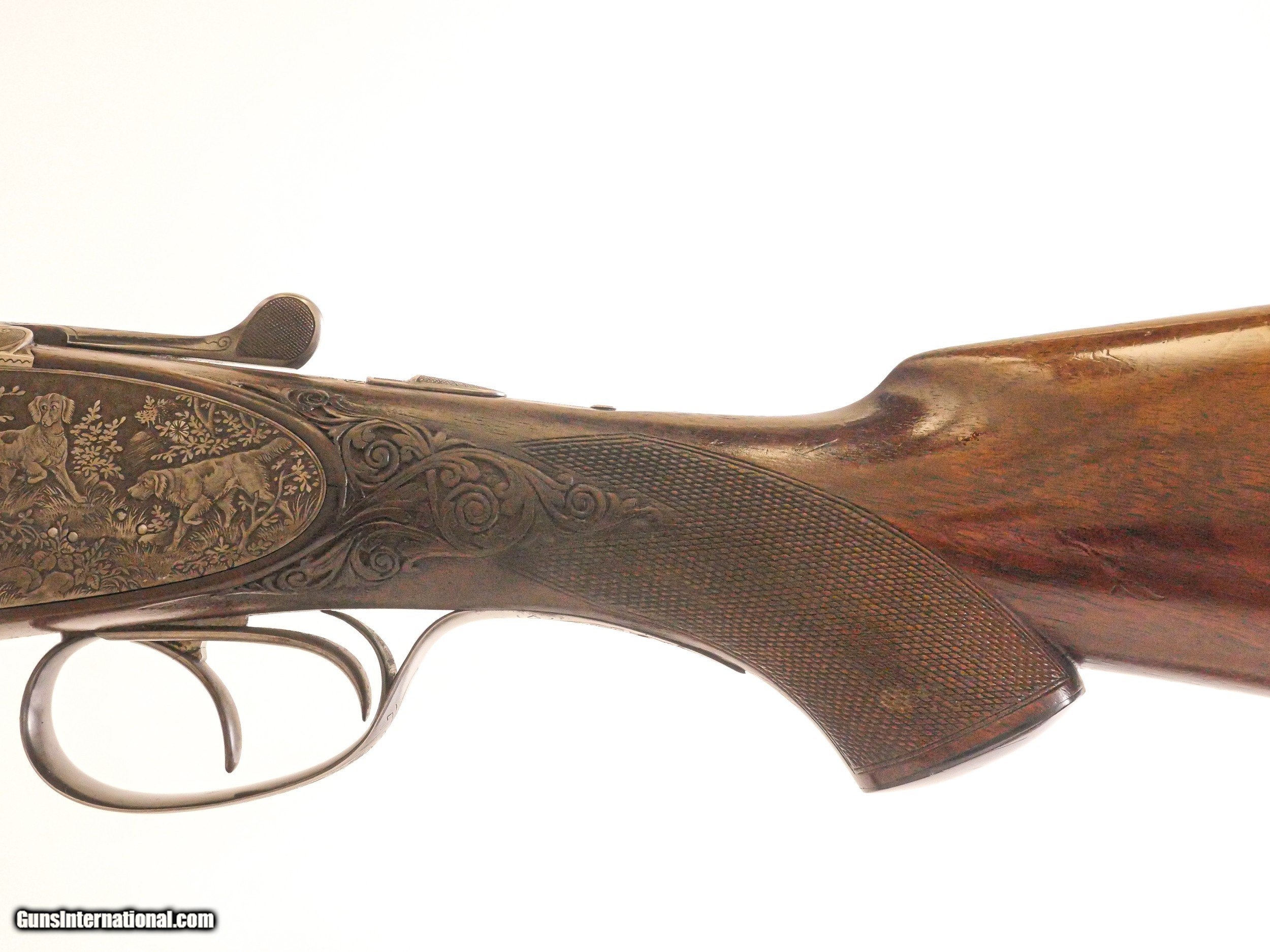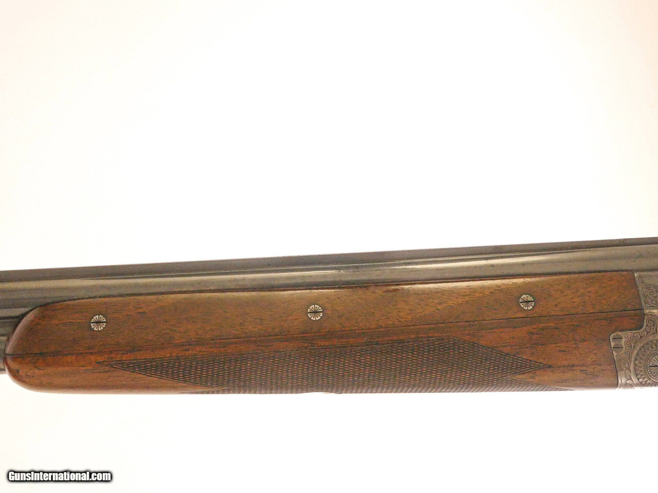 Description: Merkel - 203E. 20ga. 28” Barrels Choked IC/M. Horn capped pistol grip stock, highest quality 1954 manufacture, leather covered recoil pad, double triggers with the front trigger being articulated, solid rib, automatic ejectors, three piece forend, beautiful teutonic engraved game scenes of setters, pheasant, hawk,rabbit and capercaillie, over a coined finish, hand detachable lock plates, excellent condition throughout with only light handling marks on wood, gun excellent condition throughout. Available for immediate delivery. Inv: 50236 6 lbs. 11 oz. 15 ¼” x 1 ½” x 2” $4,250.00 SOLD |