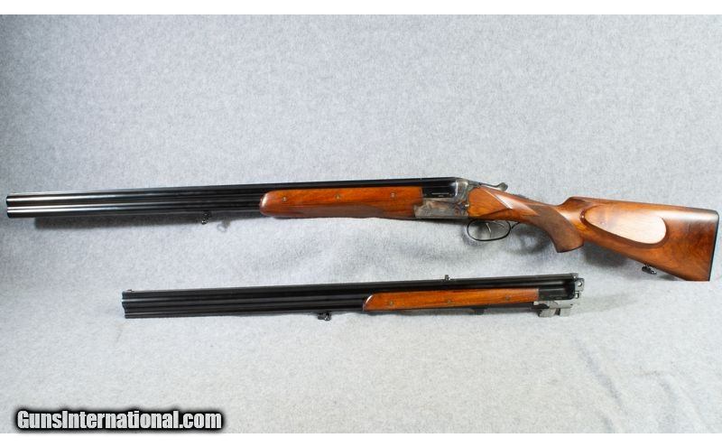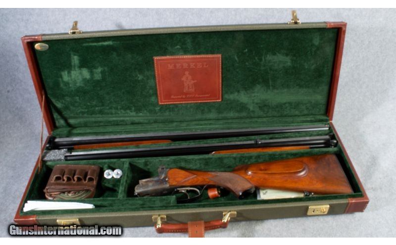 Description: A very nice Merkel Combo, dated to 1966. 2 barrel set, 1 Barrel set (25-1/2") is 16ga (IM choke) over 7mmx65R Other Barrel set is 28", 16 Ga, with Full and Modified Chokes Includes fitted Merkel hard case (unknown date on case) and accessories shown Booklet for combo and booklet for shotgun barrel set with test targets for rifle barrel Some wear to finish at lever, (hard to photo) A lovely combo to have 16/7X65R SOLD Chambers: "16 GA over 16 Ga, & 16 GA over 7x65R Metal Condition: Very Good Wood Condition: Very Good Bore Condition: Bright Barrels: "25-1/2 for Combo, 28"" for Shotgun Triggers: Double Stock Dimensions: 14-1/2" LOP Fore End: Walnut Butt Pad: Walnut w/ Factory pad Chokes: "Combo IM, Shotgun F/M Item Location: short pump |