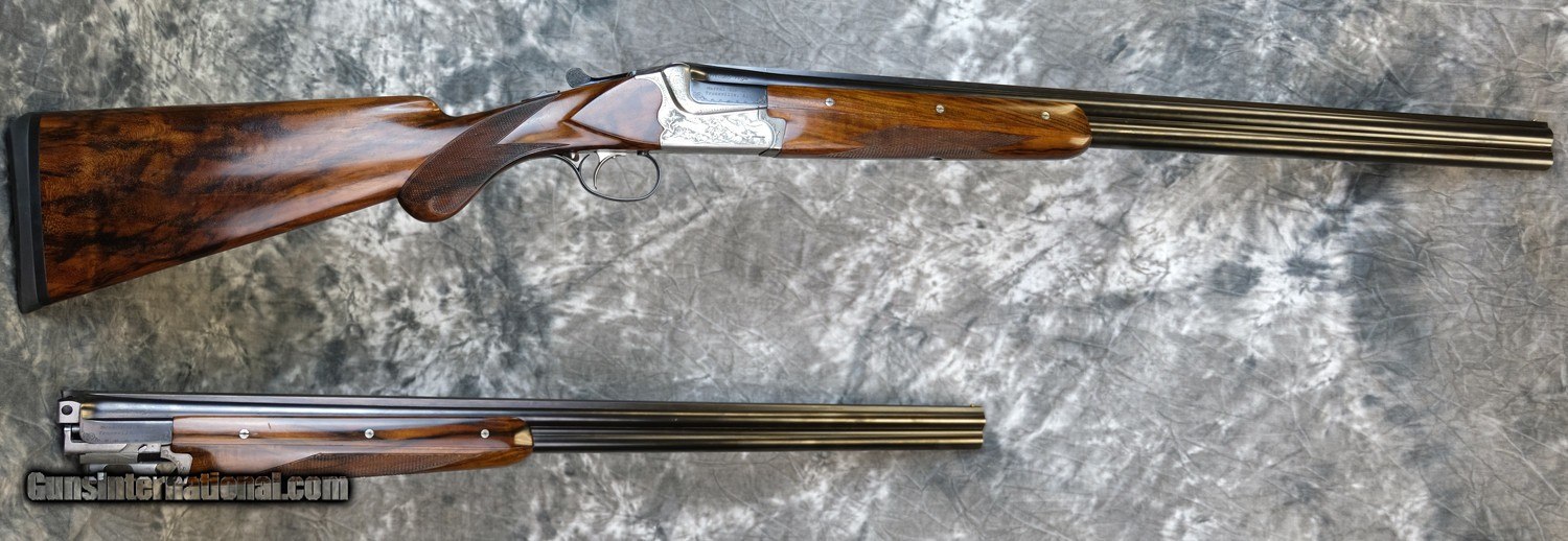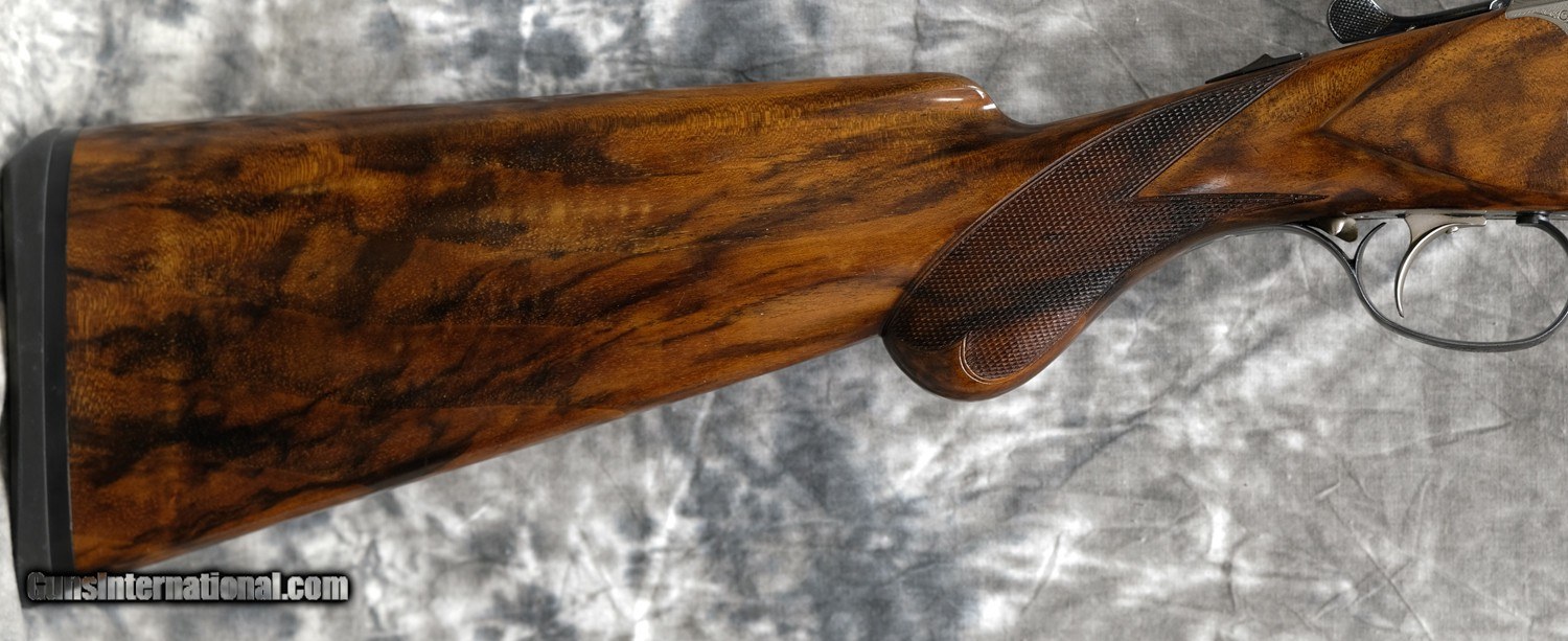 Description: Pre-Owned Merkel 2116 ELC Over Under Game Combo with 28" 16GA barrels, additional 28" 20GA barrels each with fixed chokes (IC/M) and individual 3-piece game style forearms, solid top and side-ribs. Factory scaled 16GA action with single, selective trigger; nickel finished frame with fully hand-engraved game scenes, signed "SP." Highly figured Prince of Wales pistol grip stock to recoil pad, very minor handling marks, very minor signs of use overall. Does not include case. SOLD Shotgun Gauge: 16 Gauge, 20 Gauge |