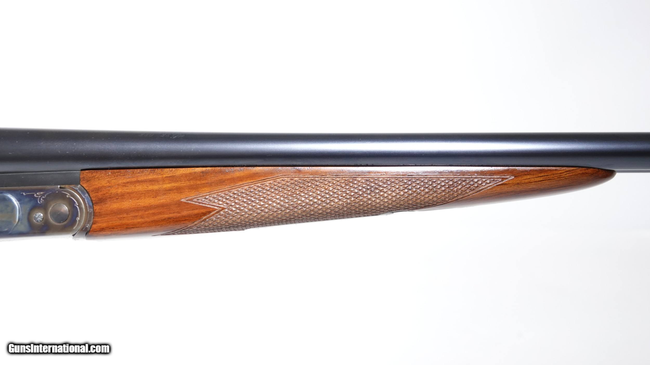 Description: Merkel - 280, 28ga. 28" Barrels Choked M/F. Ncely figured European walnut straight grip stock, factory butt plate, double triggers, automatic ejectors, splinter forend, game rib, color case hardened receiver with 25% coverage scroll, gun remains as new and appears unfired, includes factory carton and paperwork. Inv: 26147 5 lbs. 7 oz. 14 3/8" x 1 ½" x 2 ½" $3,499.00 SOLD |