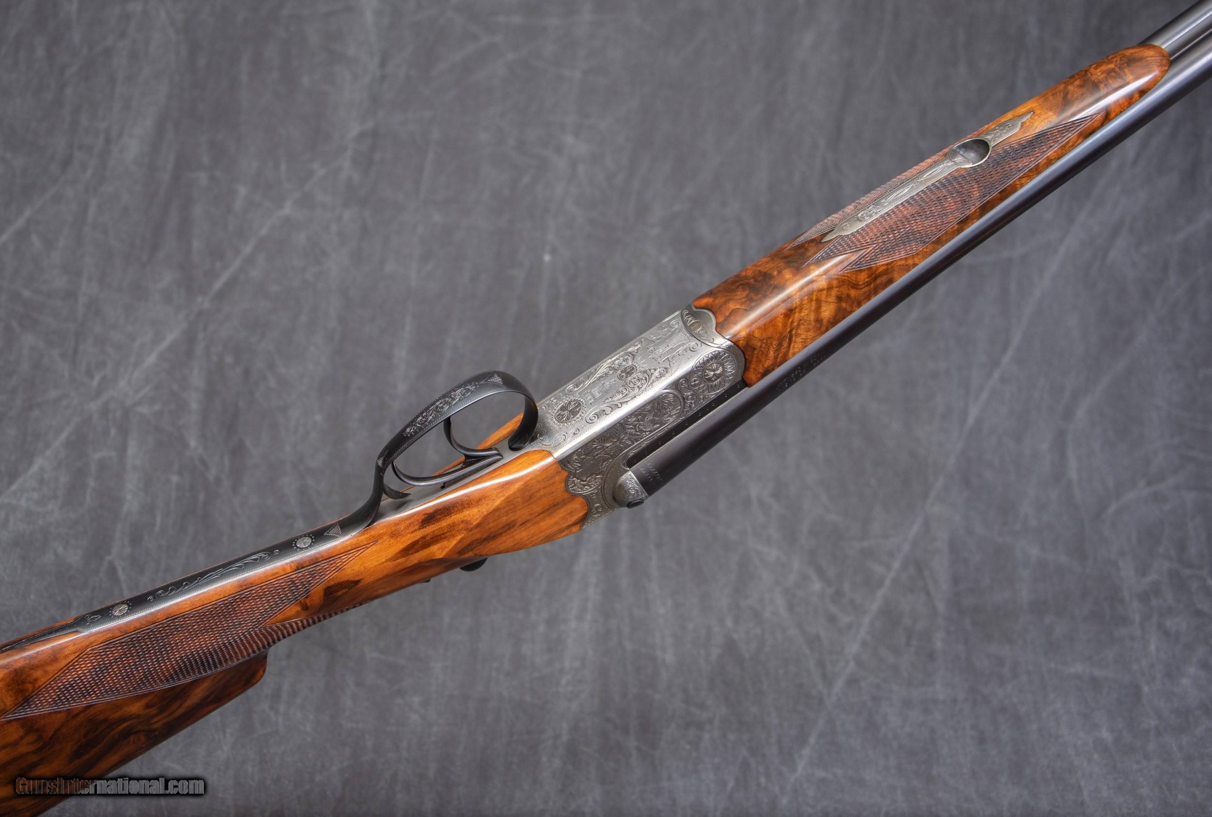 Description: Merkel 280/360EL 28 gauge & .410 Boxlock SxS, Deep relief game scene engraved coin finished scalloped receiver engraved & signed by Merkel master engraver Gerhard Liebscher, Greener crossbolt, 2 3/4" ch. 28g & 3" ch. .410, 28" bbls w/ Filed concave rib, Chokes: Rt. IC & Left M, Double triggers, Automatic ejectors, Automatic Safety, Highly figured straight grip stock w/ maker's butt plate, Splinter forearm, DC: 1 1/2" x DH: 2 3/8" x Cast:1/8" OFF at Heel x 14 3/8" LOP, Weight: 5 lb. 5 oz. w/ 28 gauge bbls., Condition: Excellent w/ maker's fitted luggage case &, maker's box, Made in Germany circa 2001, Serial #384137 ( C7616) Current MSRP: $12,995 / FIELDSPORT: $9495. SOLD |