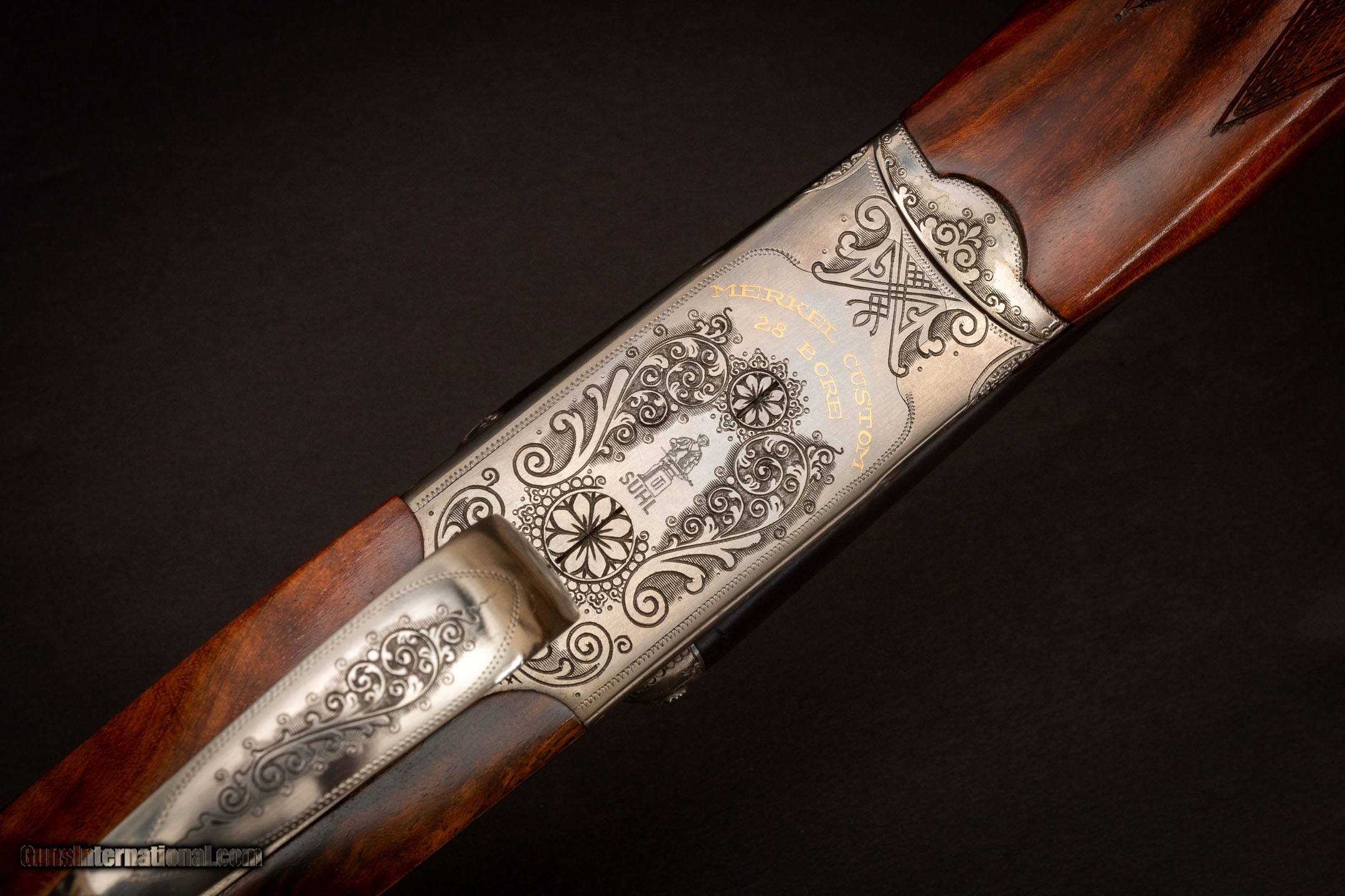 Description: This is a Merkel 280EL 28 gauge shotgun. Wearing serial number 387100, this beautiful German example was original made in 1975. 28” barrels, factory engraved, checkered butt. Overall excellent condition, with minimal handling marks. Contact us for more information and additional photographs. SOLD Shotgun Gauge: 28 Gauge Manufacturer: Merkel Model: 280EL Serial Number: 387100 Barrel Length: 28 Action: Boxlock Butt Pad: Checkered LOP: 14-3/8" LOP Manufacture Date: 1975 Item Location: NY |