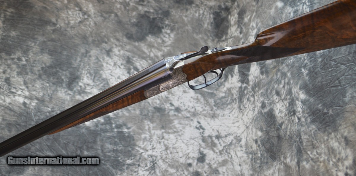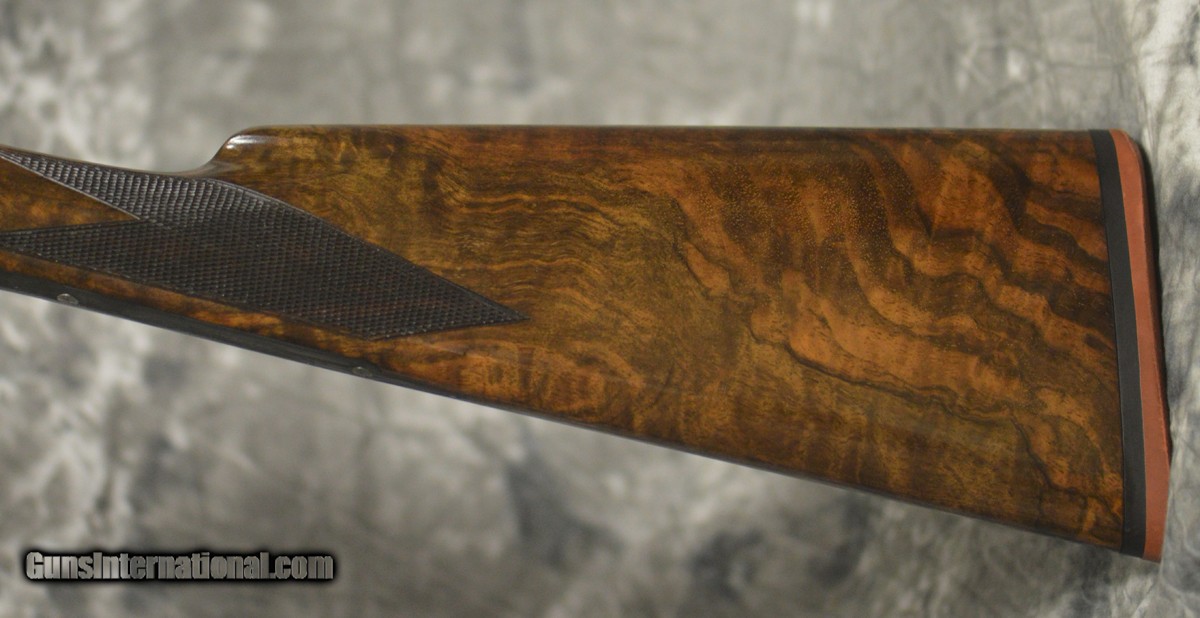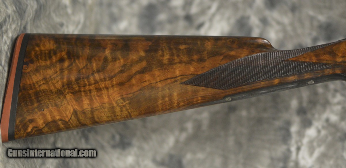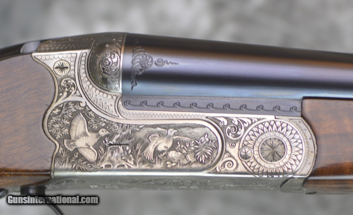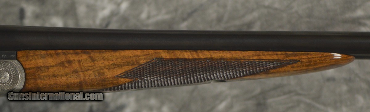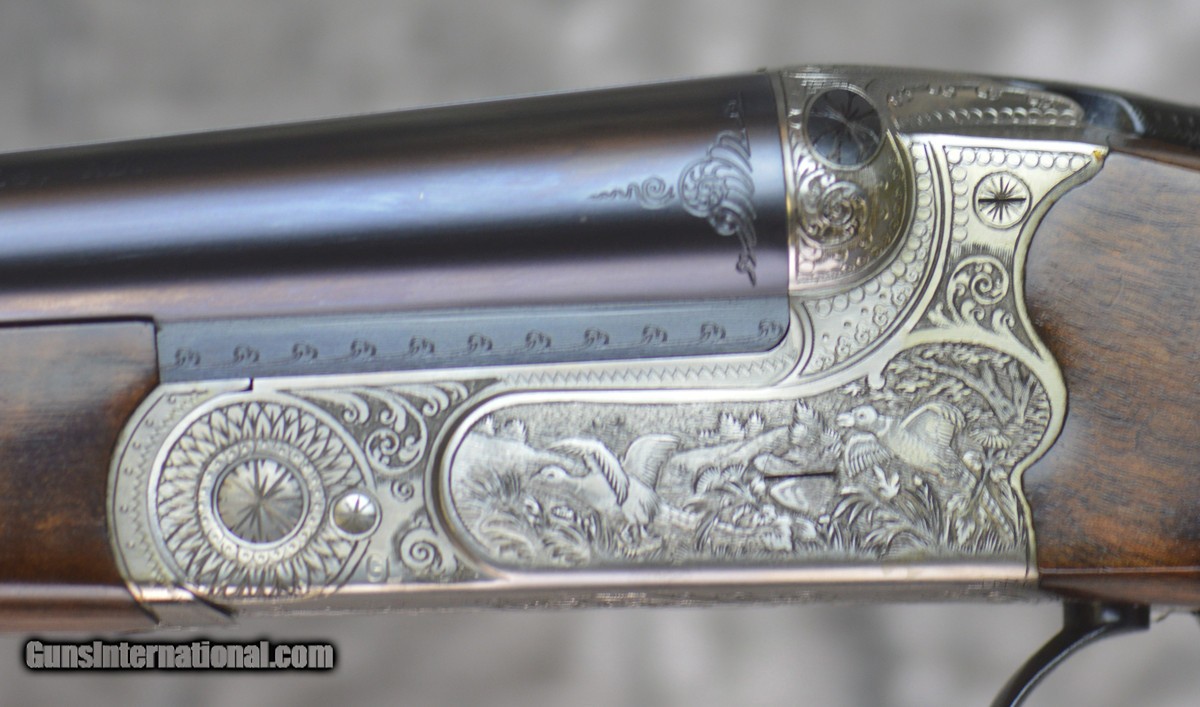 Description: Pre-Owned Merkel 280EL Game 28GA with 28" fixed choke (IC/M) barrels, concave checkered solid rib. Factory nickel finished receiver with hand engraved game scenes and scrolls. Double triggers with English straight-hand stock to Pachmayr recoil pad, splinter forearm. Minor handling marks and scuffs on stock-overall excellent condition. Does not include case. SOLD |