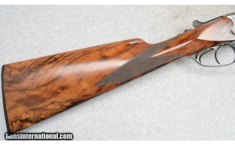 Description: SOLD Caliber Info: 28-Gauge. Chambers: 2¾ Metal Condition: Very good with minor scratches and sharp engraving on the receiver. Wood Condition: Good with handling marks. Bore Condition: Shiny. Barrels: 28 Triggers: Double triggers. Stock: Checkered walnut. Stock Dimensions: LOP 14¼", DAH 1¾", DAC 1½". Fore End: Checkered walnut. Butt Pad: Merkel factory black plastic. Weight: 5-lbs., 3-ozs. Sights: Front brass bead. Chokes: Fixed IC and C. Item Location: Fort Worth, TX |
