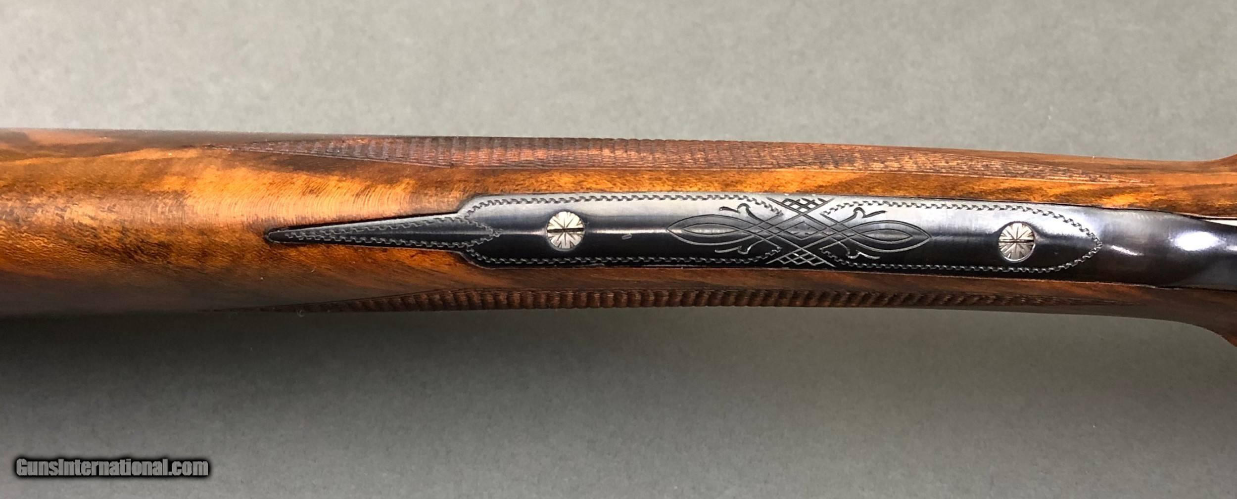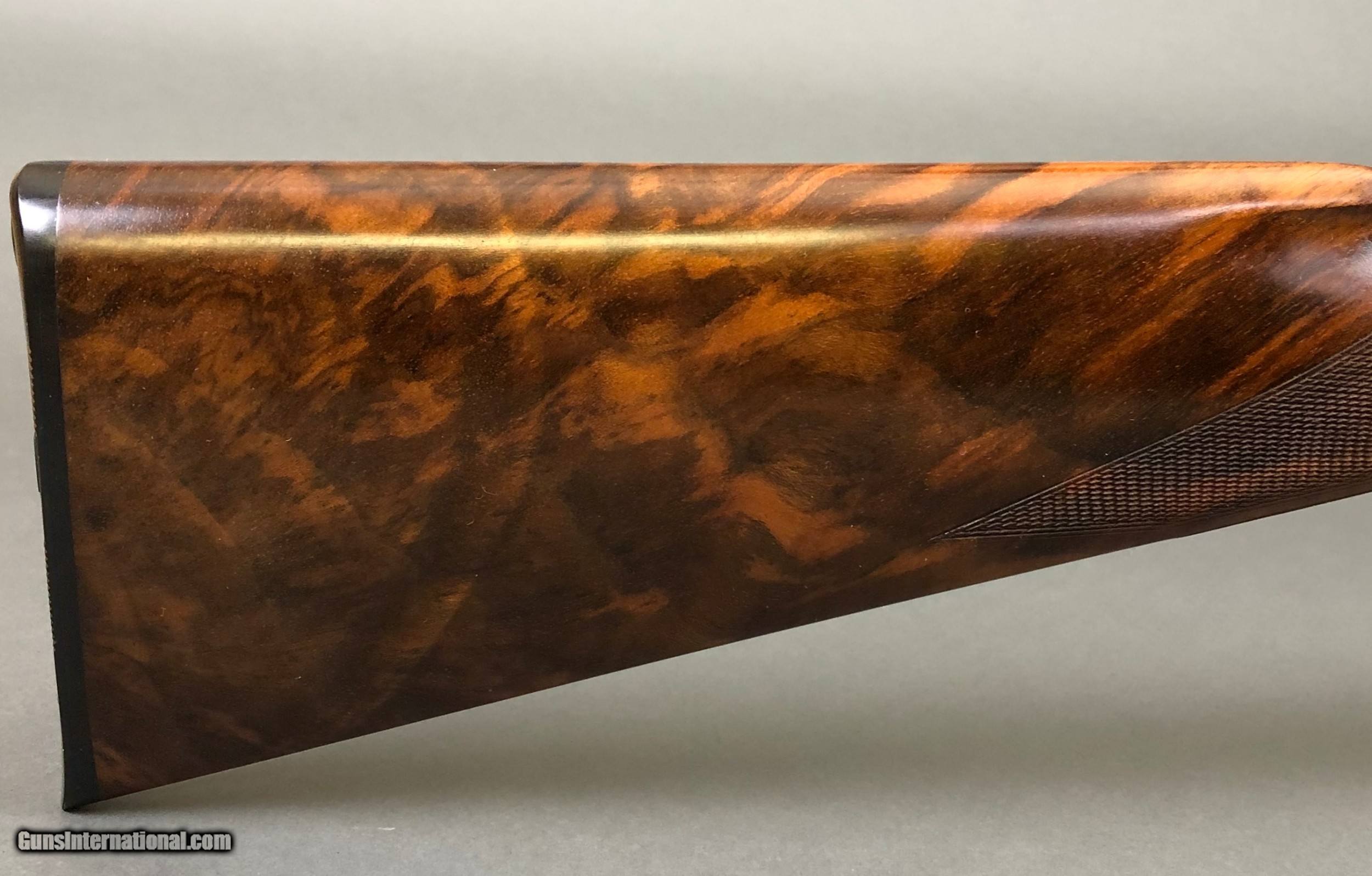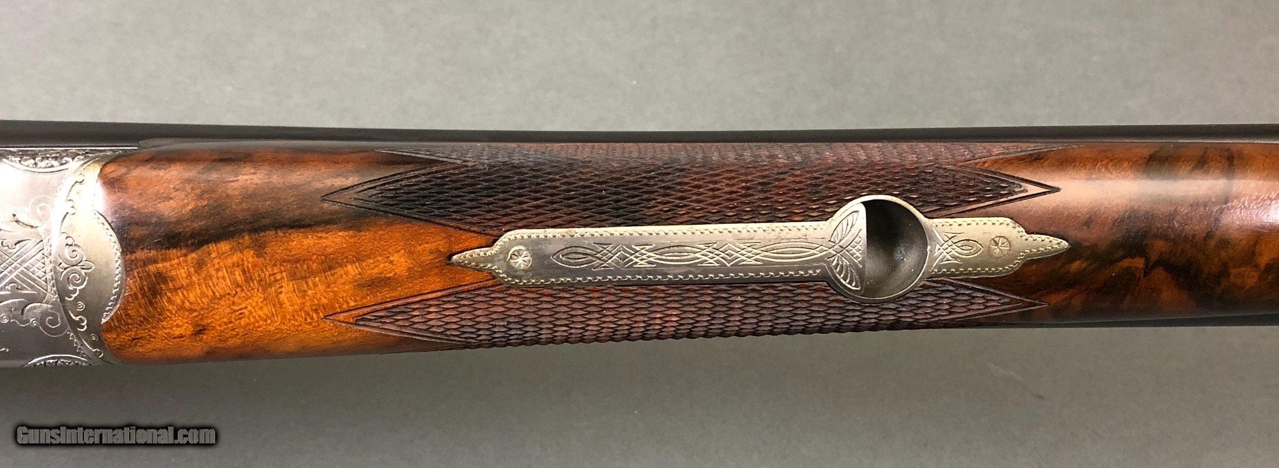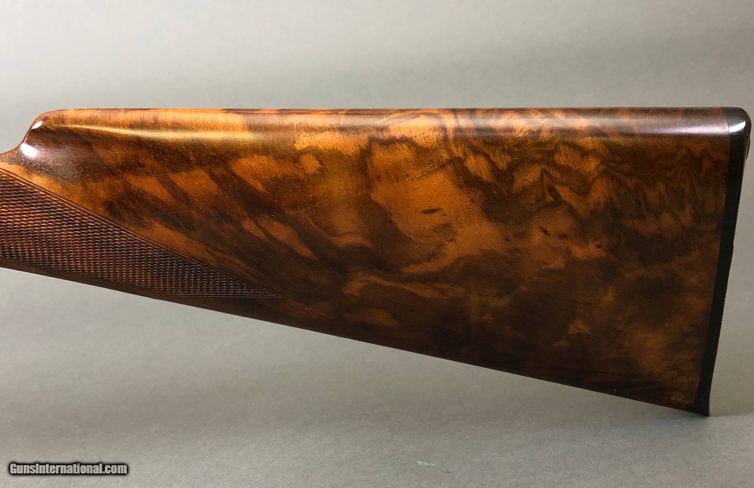 Description: Merkel 280EL with original box. This gun is near new original condition with 99% barrel blue and only minor handling marks in the wood. Tight as the day it was made! It is factory choked IC/MOD with a straight grip, 28' barrels, and double triggers. At 5lbs 5oz, it's the lightest 280 Ive owned. I believe the gun was orignally made for a left handed shooter because it has 5/8 CAST ON. Hand engraved and signed by the engraver, Burkhadt Hafner. It features an English Setter on each side with quail and pheasants. Trades always considered, up or down. SOLD Manufacturer: Merkel Model: 280EL Serial Number: 383682 Chambers: 2 3/4 Ejectors: Yes Condition: Excellent Original Metal Condition: Excellent Original Wood Condition: Excellent Original Bore Condition: Mint Barrels: 28 Action: Boxlock Triggers: Double Gauge Info: 28 Stock Dimensions: 14 1/4 x 1 3/8 x 2 1/2 Stock Cast: 5/8 cast on Finish: Original Weight: 5lbs 5oz Chokes: Factory IC/Mod Choke Left: .550 ( .018 ) Choke Right: .550 ( .008 ) Engraving: Hand Engraved by Burkhadt Hafner Extras: Original Box |