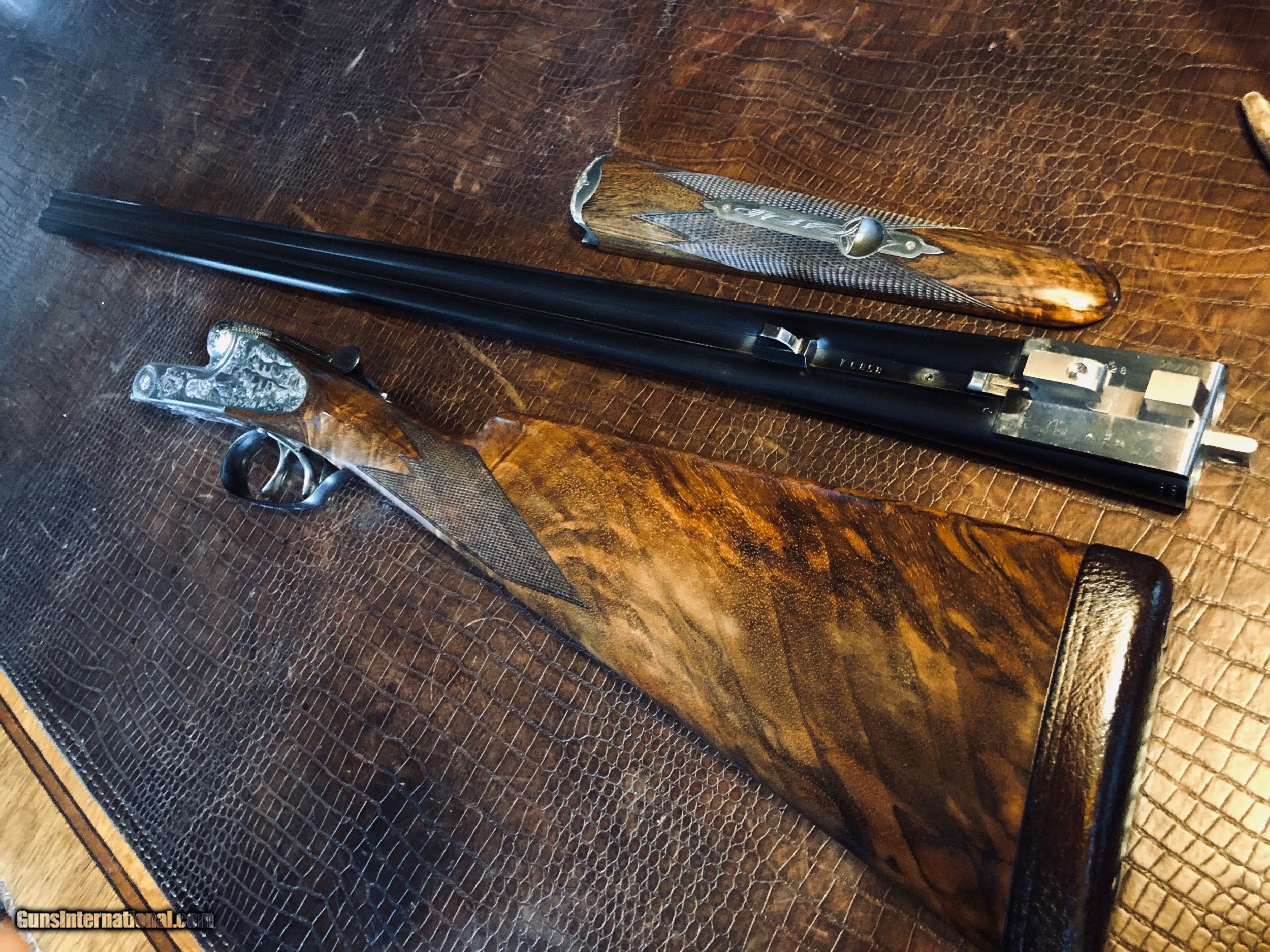 Description: Merkel 280SL - 28ga - 28” - M/F - 99% Condition - Custom Leather Pad - Finest Engraver (Knoth) and Engraving of Setters and Bobwhite Quail - Beautiful! 15 1/8 x 1 1/2 x 2 1/2 - 5.10 lbs - #16 of 100 - Custom Sidelock Merkel with the right wood, engraving and dimensions. Outstanding field and club gun. *****SPECIAL NOTE***** 1. I am a reasonable man – I encourage you to make reasonable offers on my listings. At times, there is some flexibility in pricing – other times there is not. I have been collecting guns since 1988 – so I have amassed quite a covey of what I consider to be some very fine guns and some utility guns. Feel free to call me, unlike most gun dealers – I am easy to talk to and will answer the phone on weekends and late evenings (not after 9PM CST). 2. I DO NOT ACCEPT TRADES 3. I do provide LAY-A-WAY plan, please inquire about my terms if you have a need – glad to do it when I can. 4. My collection consists of many guns that were bought from individuals – that means **I BUY GUNS** but I only buy clean used guns with collectibility. In particular - **I BUY SHOTGUNS** 5. ALL OF MY TRANSACTIONS ARE DONE THROUGH MY FFL with whom I have a very solid relationship. If you buy a guns from me, you’ll pay them, they will ship to your FFL of choice and all dealings will be with them post receipt of funds. They are a high end boutique gun dealer in the Texas Hill Country and can accommodate the entire transaction. If you live in Texas and want to drive to see one of my guns, reach out to me to discuss making an appointment with my FFL – I do not show guns at my home nor do I meet guys at public locations for viewings or sales. ALL GUNS ARE LEGALLY TRANSFERRED through my FFL – there are NO EXCEPTIONS. 6. Certified funds are preferred – if you send a personal check for payment the FFL ships one week after receipt. Certified funds payments – shipments are done next business day. NO CREDIT CARD payments are accepted. 7. I encourage you to shoot the guns you buy from me – so during your 3 day inspection – shoot the gun. Make sure it is operating in the manner you expected. If you are not happy – return the gun for a full refund except shipping costs. SOLD |
