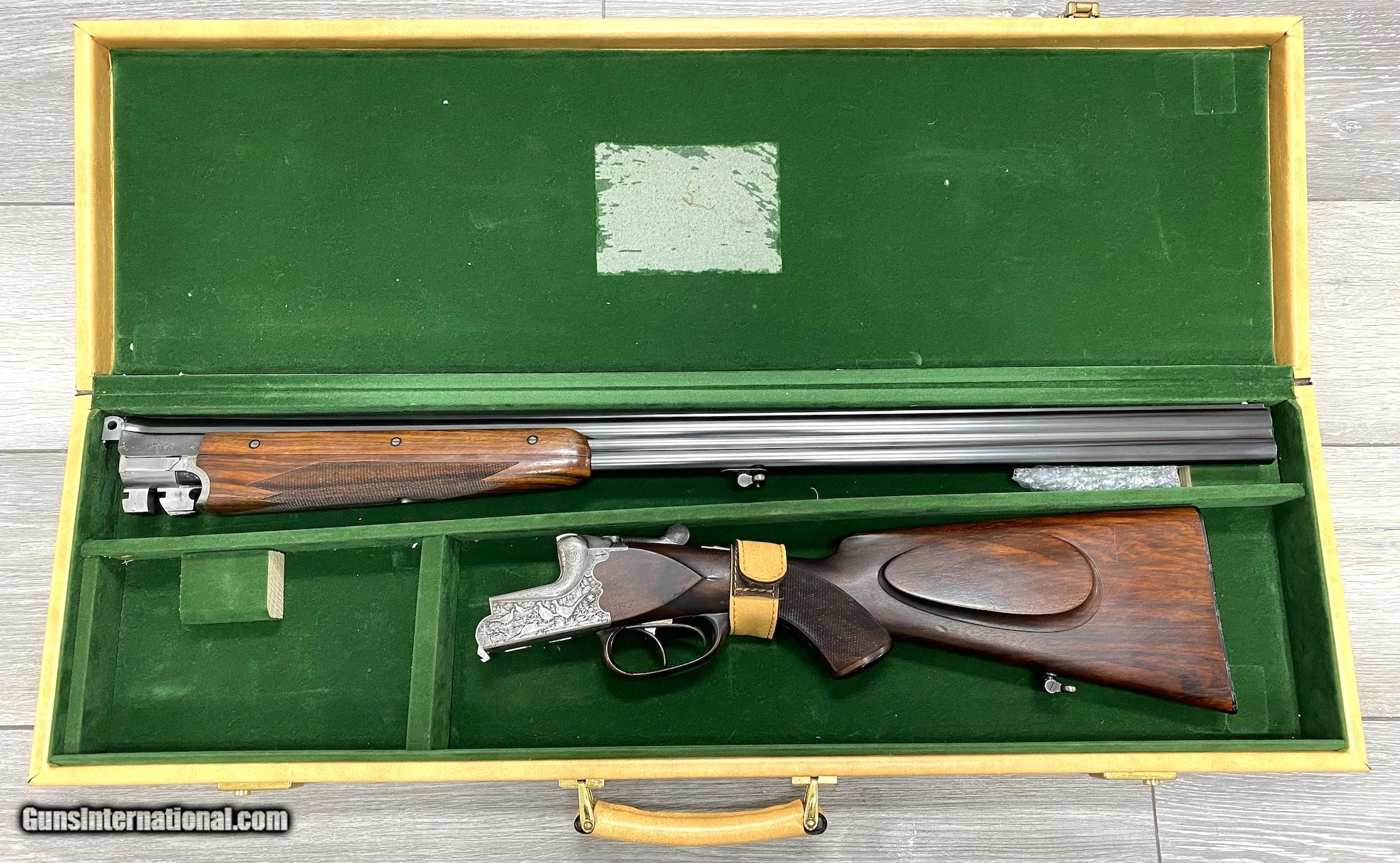 Description: Guns Listing ID: 1071416 Merkle 301E 16 gauge over under shotgun in case with 29\" barrels. Pre-World War II German made Model 301E made by Gebruder Merkel in Suhl, Germany in 1940. Blued 29 - 1/4\" Bohler Steel barrels in 16 gauge with 2 - 3/4\" chambers, raised matted rib, ejectors, and fixed Full and Improved Cylinder chokes. Coin finished, heavy chisel type game scene engraved scalloped action with cocking indicators, double triggers, and non-automatic tang safety. Finely checkered figured walnut pistol grip stock with horn buttplate and grip cap, and matching Merkel 3-piece forearm with latch release. Comes in later period trunk case. CONDITION: 90% factory barrel blue with light edge wear. Good action finish with sharp engraving. Worn varnish with line from recoil boot and some heavy hunting dings and scratches. Good bores and mechanics. Accessories: Case Barrel Length: 29 - 1/4\" Chamber: 2 - 3/4\" Choke: Full and Improved Cylinder Drop at Comb: 1 - 1/2\" Drop at Heel: 2 - 1/2\" FFL Status: Curio & Relic Gauge: 16 Bore Length of Pull: 14\" Manufacturer: Merkel Model: 301E Serial Number: 25725 SOLD Manufacturer: MERKEL Model: 301E Condition: Used - Non-Certified Barrels: 29 BARREL Gauge Info: 16 GA Finish: BLUED W/ ENGRAVING |