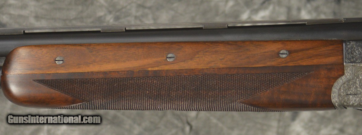 Description: Pre-Owned Merkel 303 Game Combo 12GA with 28" fixed choke (M/IM) barrels, additional 28" fixed choke 12GA (IM/F) barrels, factory ventilated rib (2 3/4" Chambers on Both Barrels). Fully hand engraved side-lock with hand-detachable locks. Outstanding factory pistol grip Monte Carlo stock with three piece forearm. Manufactured in 1970. Overall outstanding condition with only very minor handling marks. Outstanding Merkel O/U Side-Lock ejector game gun. Includes combo case. Consignment, ineligible for trade-ins. SOLD |