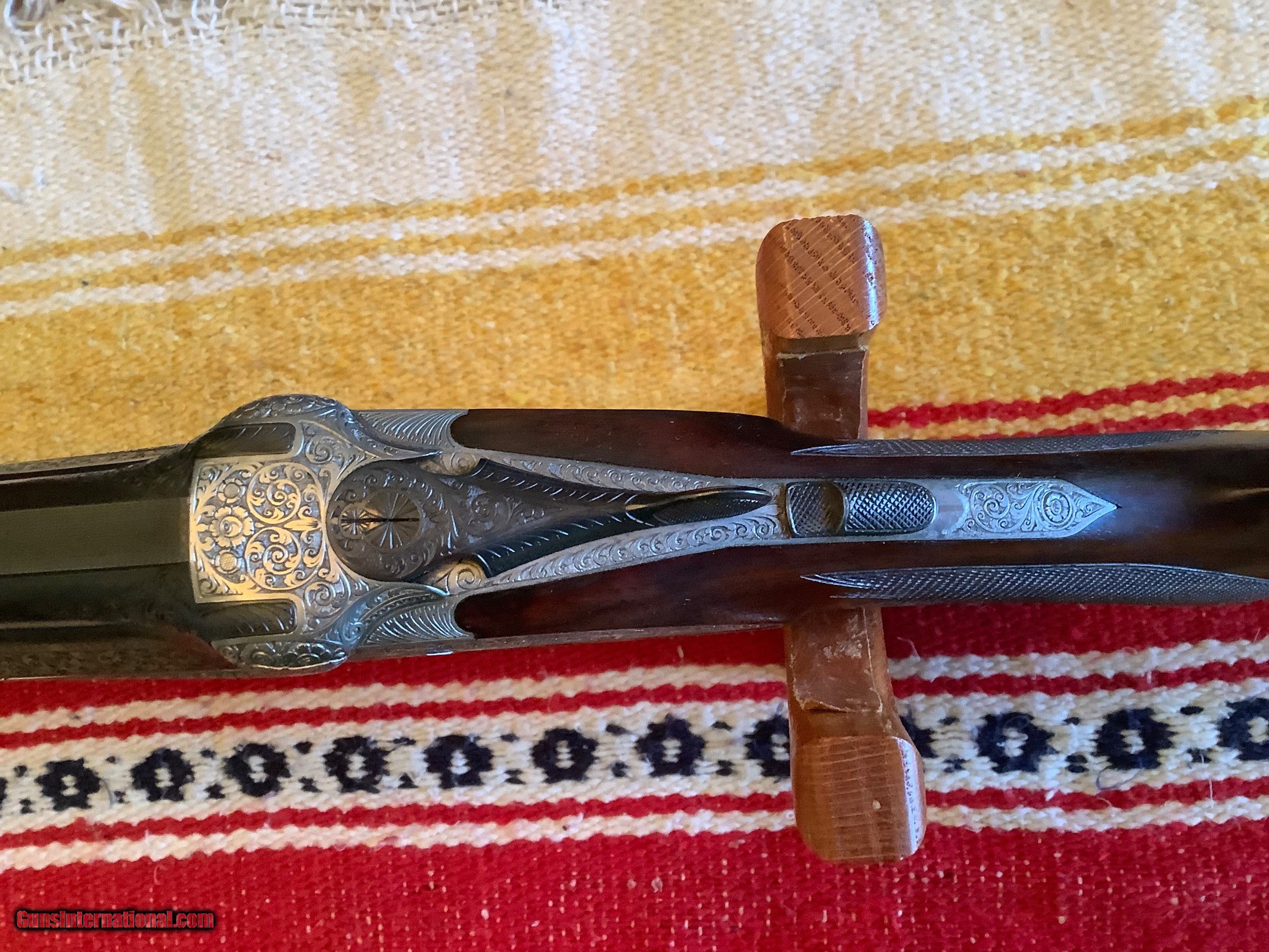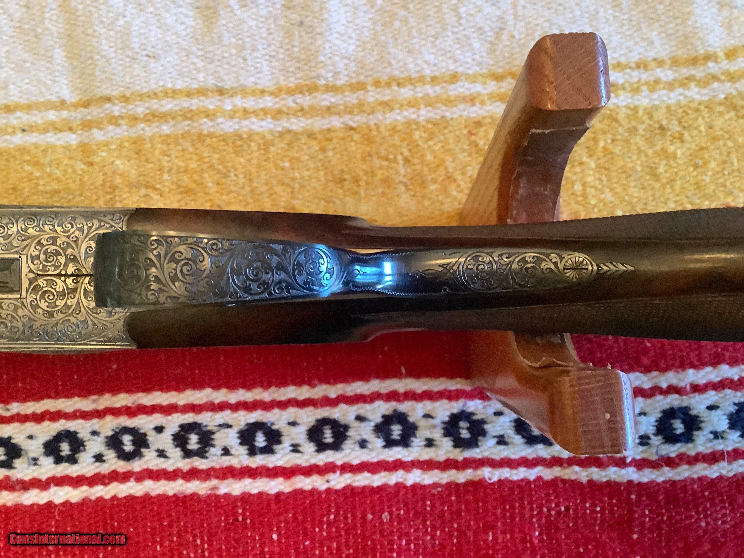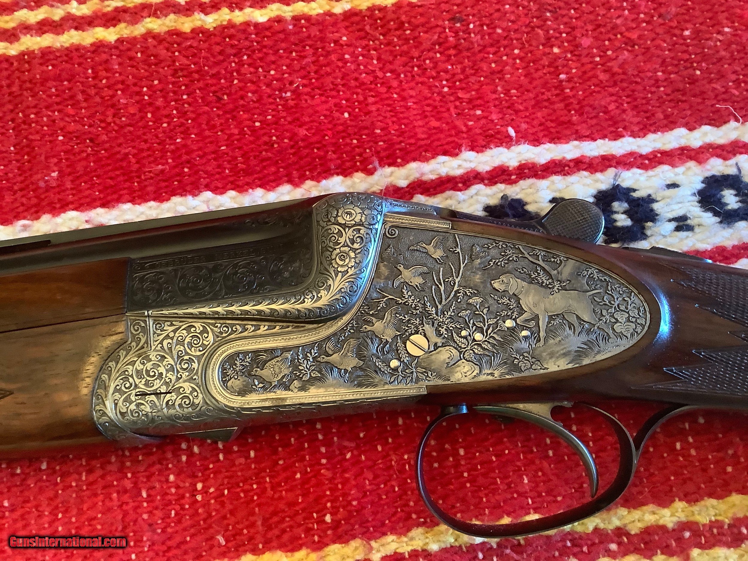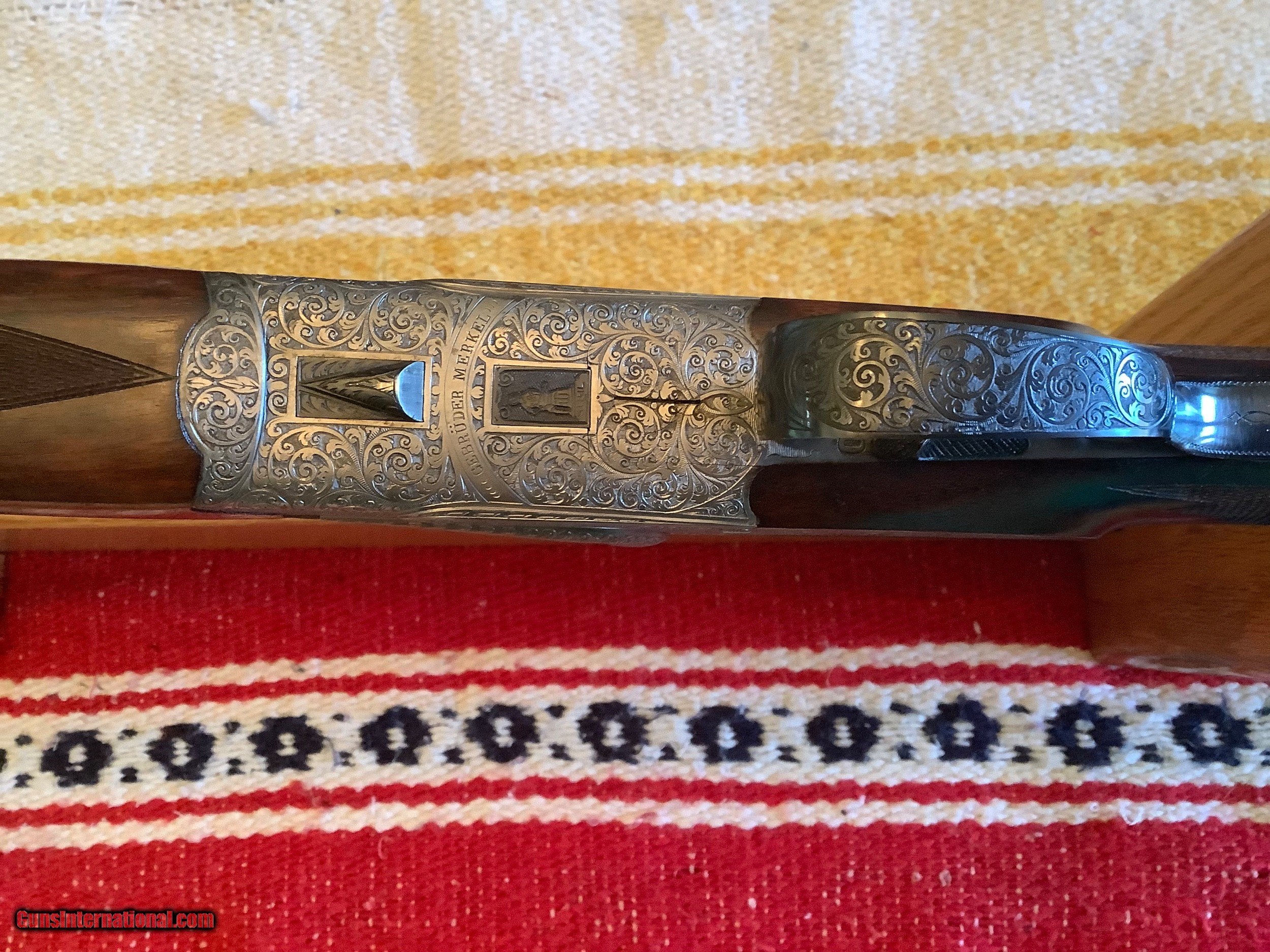 Description: Merkel 303E 20 ga.,26" barrels choked cyl/impcyl,3" chambers,mfg.3/68,gun has single select triggers,auto ejectors and firing pin indicators. Beautiful wood,gun is in 98 to 99% condition,DAC 1 1/2",DAH 2",LOP 14 1/8" from back trigger position.hand detachable side locks,call,text or email questions,thanks Jim SALE PENDING SOLD |