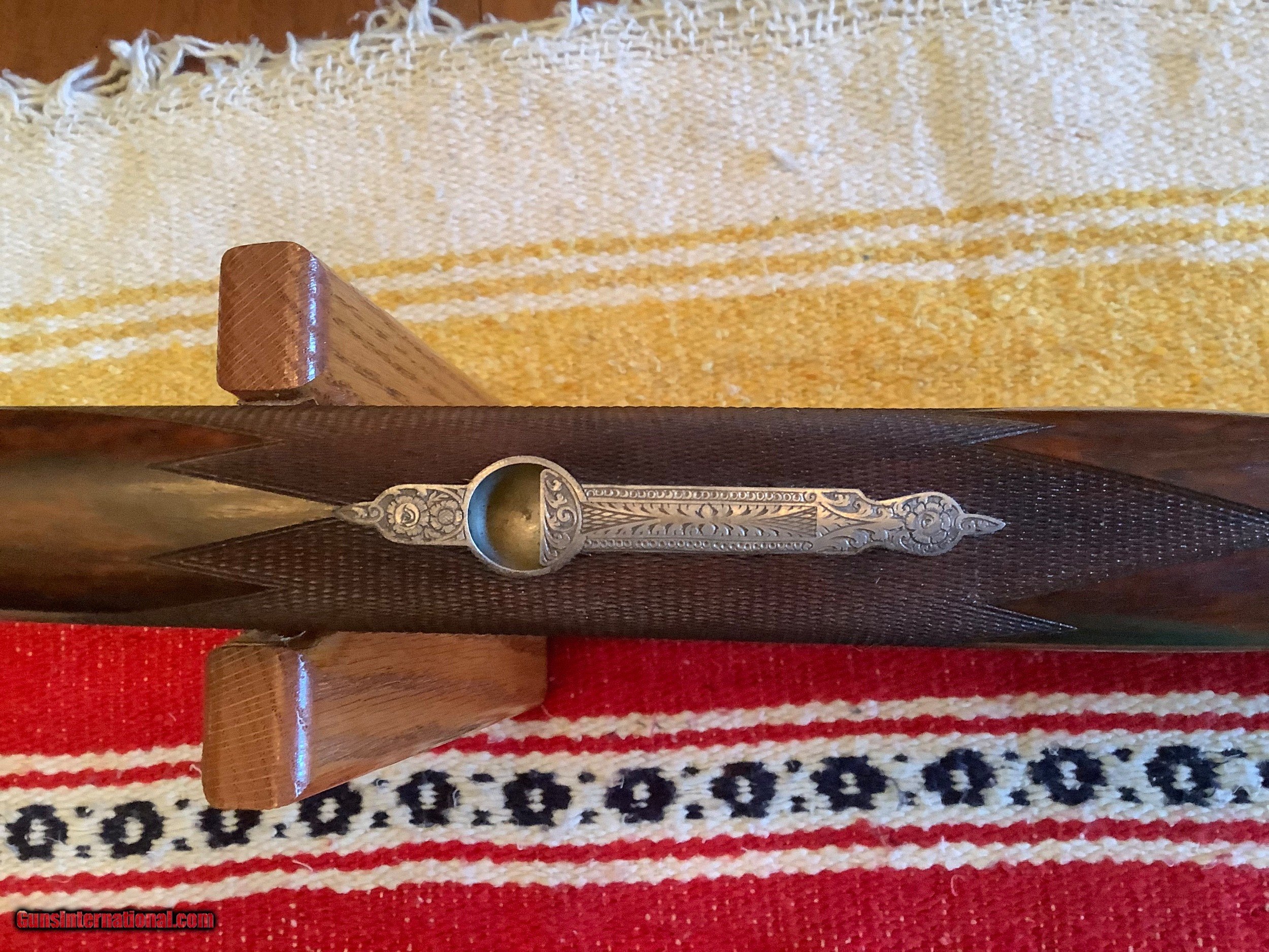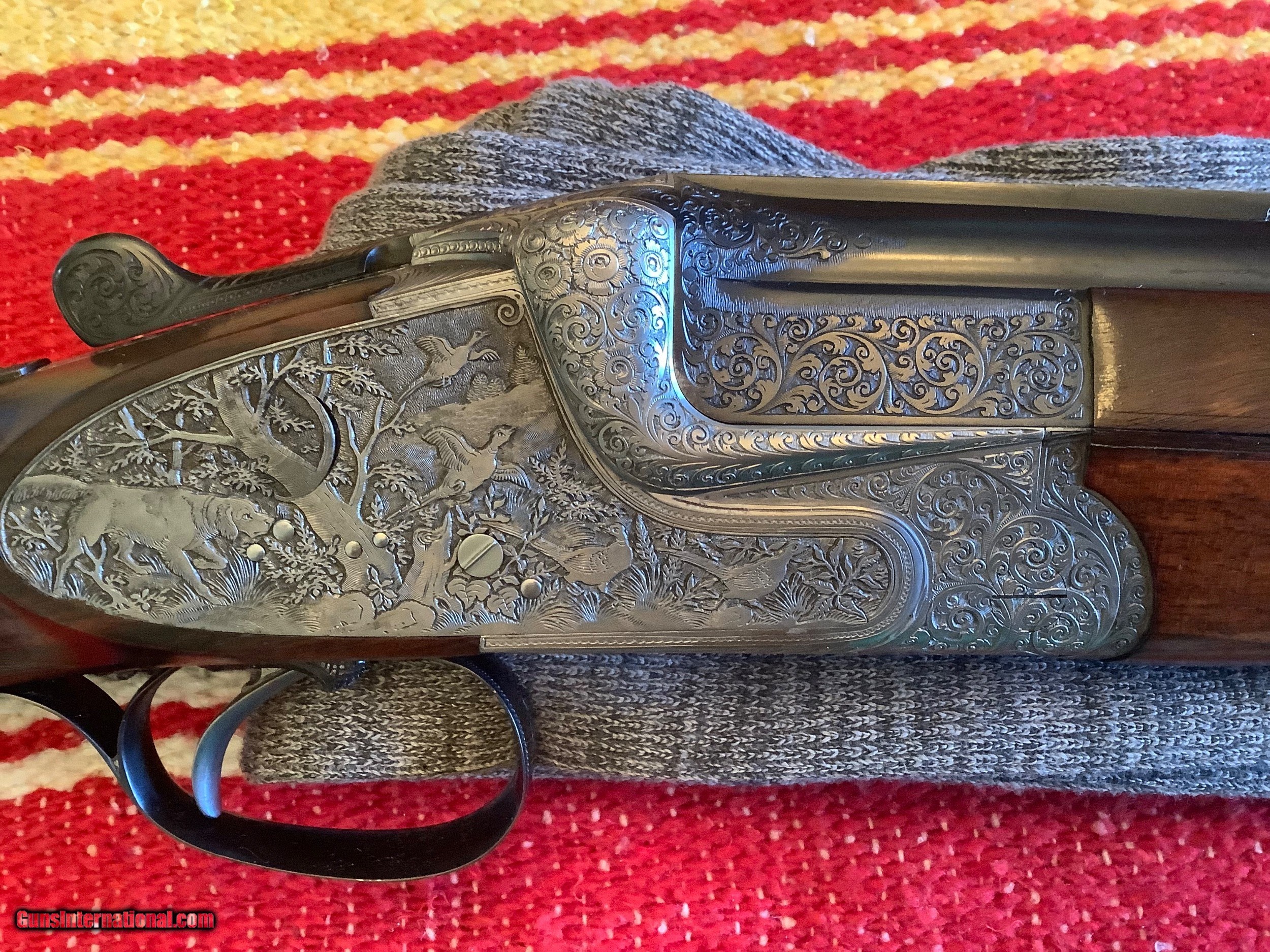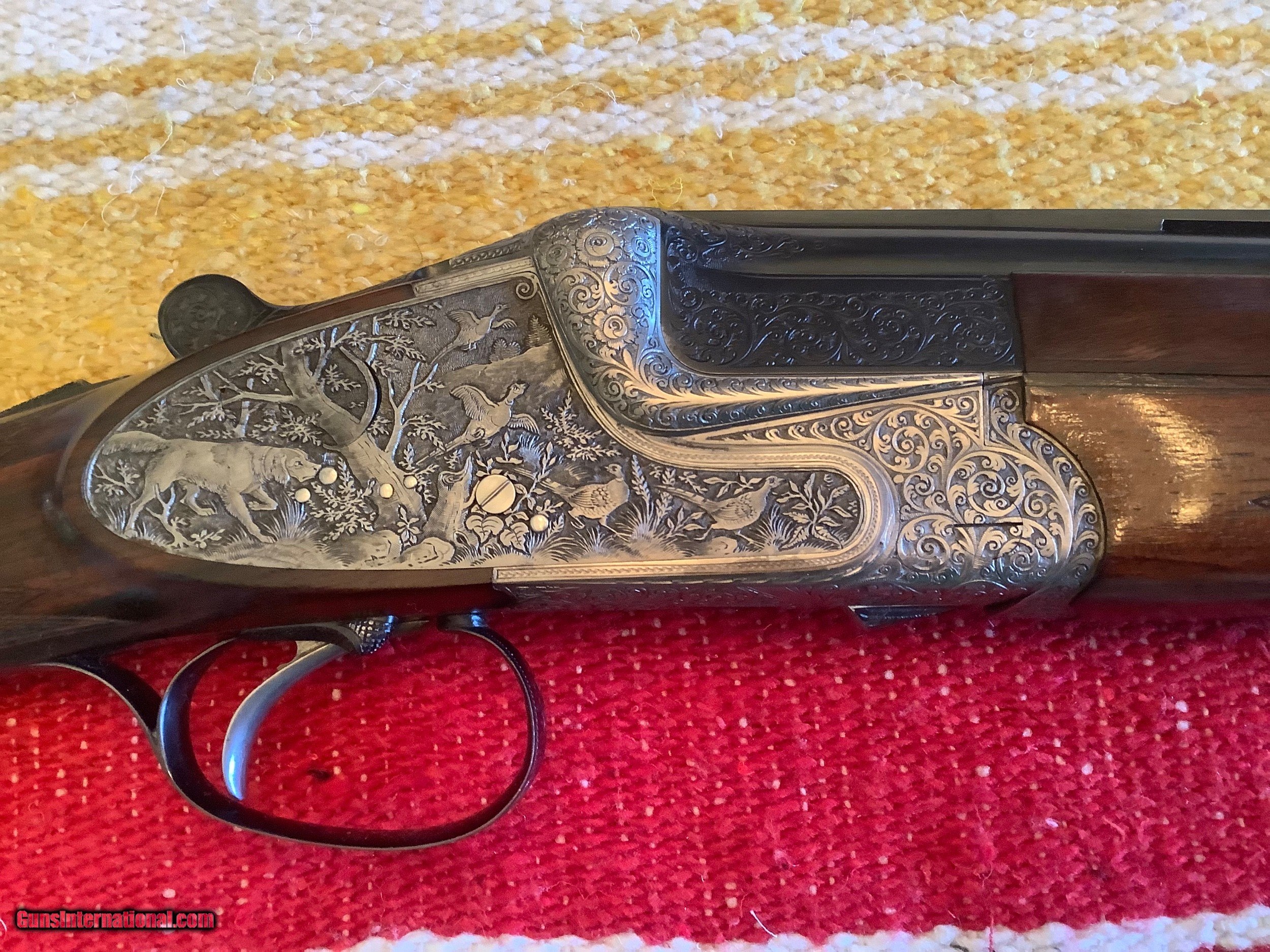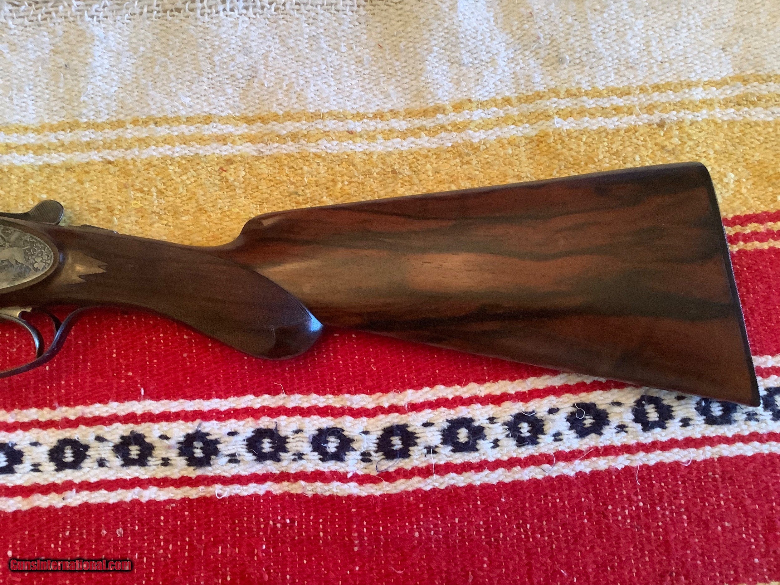 Description: Merkel 303E 20 ga.,26" barrels choked cyl/impcyl,3" chambers,mfg.3/68,gun has single select triggers,auto ejectors and firing pin indicators. Beautiful wood,gun is in 98 to 99% condition,DAC 1 1/2",DAH 2",LOP 14 1/8" from back trigger position.hand detachable side locks,call,text or email questions,thanks Jim SALE PENDING SOLD |