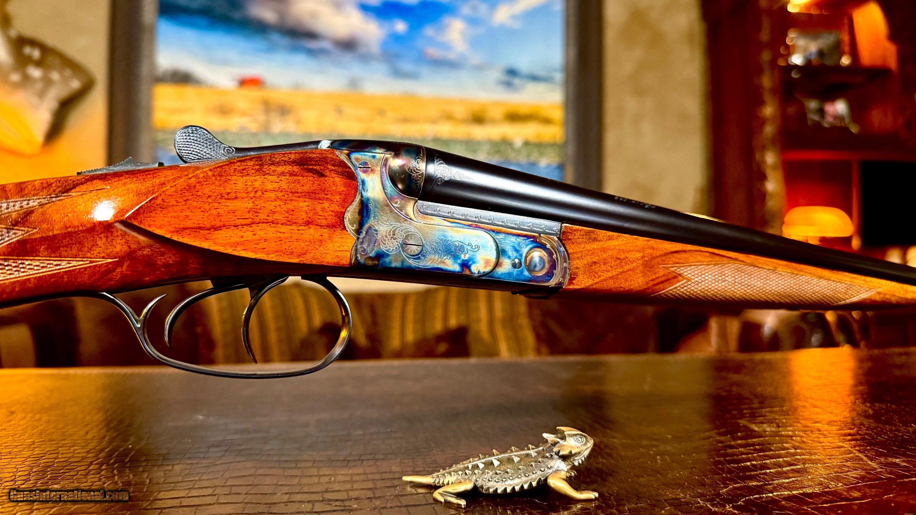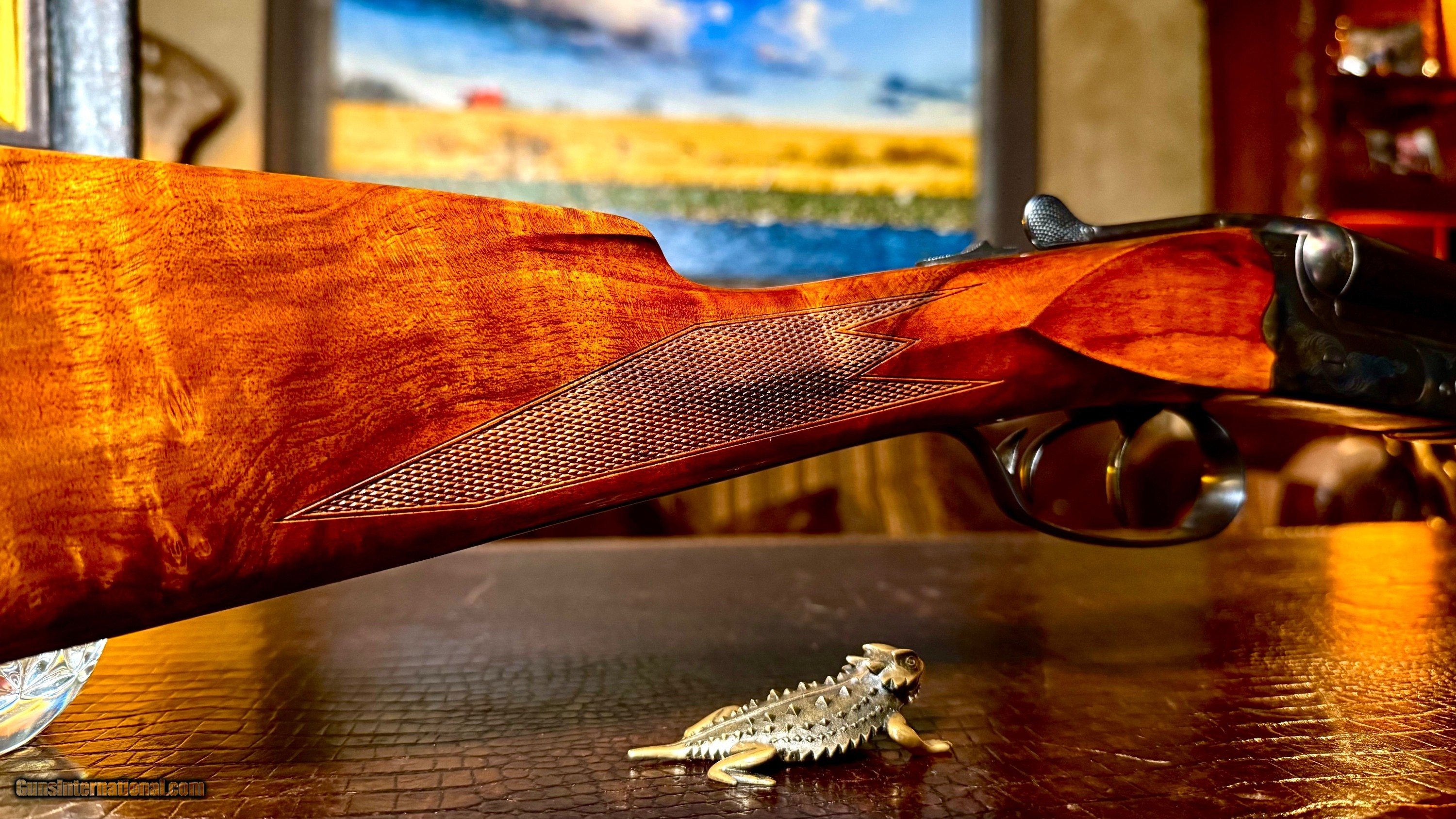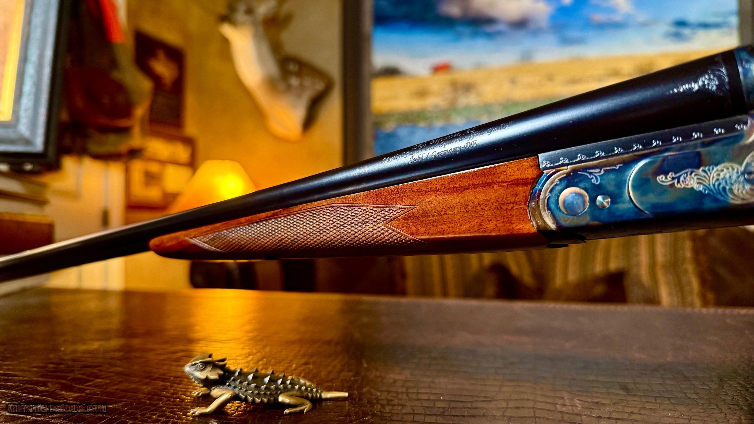 Shotgun Gauge: .410 Gauge Manufacturer: MERKEL Model: 360 SXS DOUBLE TRIGGER BLE Serial Number: 388725 Barrel Length: 28 Chambers: 3 Ejectors: CRISP TIMED Condition: AS NEW -- ONLY WEAR I COULD FIND I HAD TO USE INSPECTION LAMP (BOTTOM OF RECEIVER AND TINY EVIDENCE) Metal Condition: 99% Wood Condition: 99% AS NEW Stock: ENGLISH STRAIGHT GRIP Stock Comb: 1 1/2" Stock Heel: 2 1/2" Stock Cast: 100% NEUTRAL Fore End: SPLINTER Butt Pad: MERKEL BUTTPLATE LOP: 14 3/8" TO FRONT TRIGGER -- 13 1/2 TO REAR TRIGGER Rib: SOLID RAISED GAME RIB Finish: HAND RUBBED OIL Weight: 5 LB 12 OZ Chokes: MOD / FULL FIXED Engraving: ARABESQUE ENGRAVED Extras: ALL AS SEEN IN PHOTOS Case: BOX -- NO CASE Price: $10,995.00 Shipping: $75.00 Buy Now Contact Seller |
