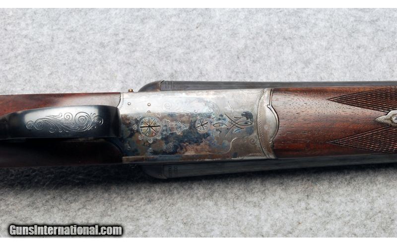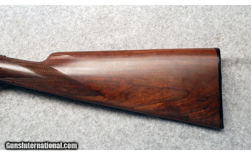 Description: Here we have a very nice Merkel 47E. Manufactured in 1997, this gun still retains quite a bit of its original finish, with honest wear around the carry points, and only minor dings and scuffs from use. This gun features light scroll engraving, ejectors, cocking indicators, and both barrels are choked 1/1 (Full). The lever sits just a shade to the right, and the gun locks up tightly. Overall, a handsome gun ready for many more seasons in the field. 12 Gauge SOLD Chambers: 3 Metal Condition: "Good, the barrels and trigger guard retain almost all of their factory bluing. The case colors on the underside of the frame are starting to fade. Wood Condition: "Very good, with only some minor dings and handling marks Bore Condition: "Excellent, both bores are bright and shiny Barrels: 28 Triggers: Single Selective Stock Dimensions: "LOP: 14 3/8"", DAC: 1 5/8"", DAH 2 1/2"" Fore End: Splinter Butt Pad: Factory plastic Weight: 7 lbs Sights: Brass bead Chokes: Full/Full Item Location: Scarborough, ME |