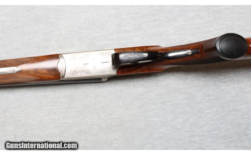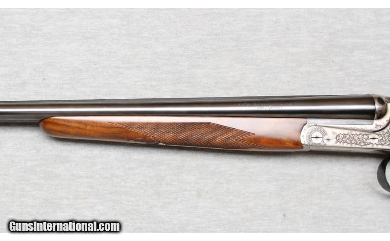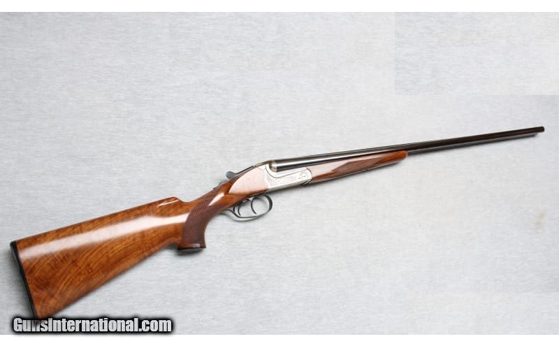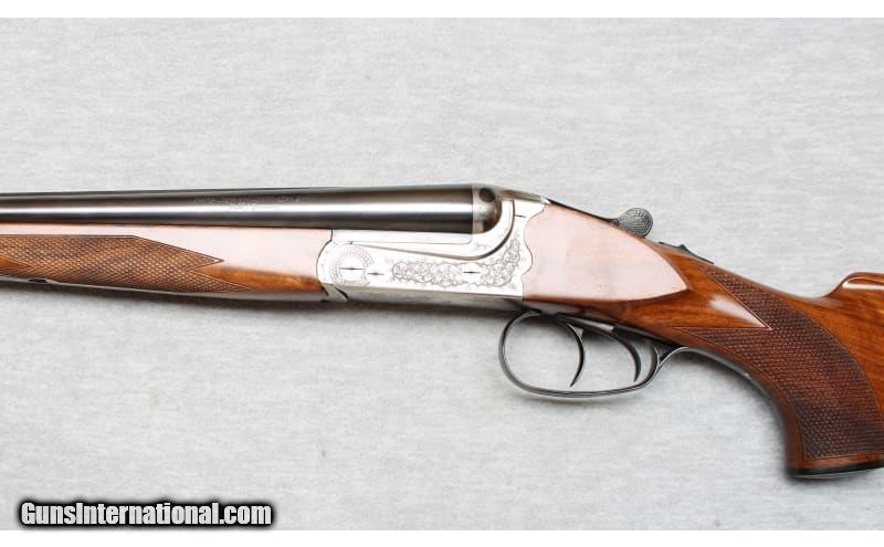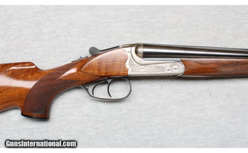 Description: Merkel Model 47E in 28 Gauge. High quality SxS boxlock shotgun made in the famous gun-making town of SUHL (Germany). Deluxe checkered pistol grip and forend, French walnut with cheekpiece. Double trigger, Greener crossbolt, ejectors, and sling swivels. Coin finished boxlock with rib extension, brass front bead. Mirror clean inside of barrels. This is an exceptional piece of German workmanship. 28 Gauge SOLD Chambers: 2 3/4 Inches Metal Condition: Excellent Wood Condition: Excellent Bore Condition: Bright Barrels: 28 Inches Triggers: Double trigger Stock Dimensions: 14 3/4 inches Fore End: Checkered walnut Butt Pad: Plastic pad Sights: Single bead Chokes: Full/Improved Modified Item Location: La Vista, NE |