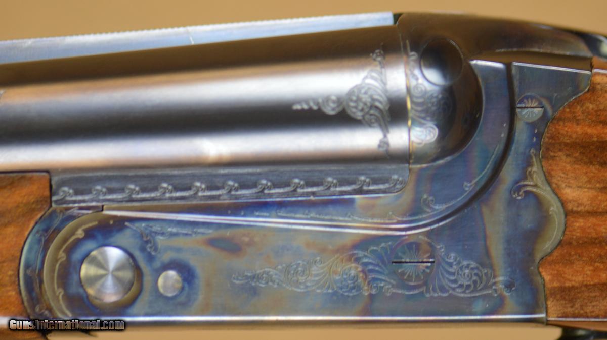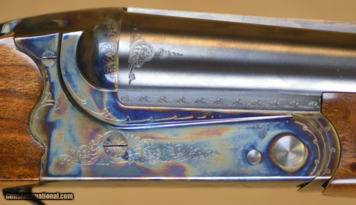 Description: New Merkel 47 Game 20GA with 28" fixed choke (IC/M) barrels, solid rib. Factory case-colored action with Double Triggers and automatic safety. Factory English Straight-Hand stock to checkered butt, splinter forearm. Factory box. SOLD |