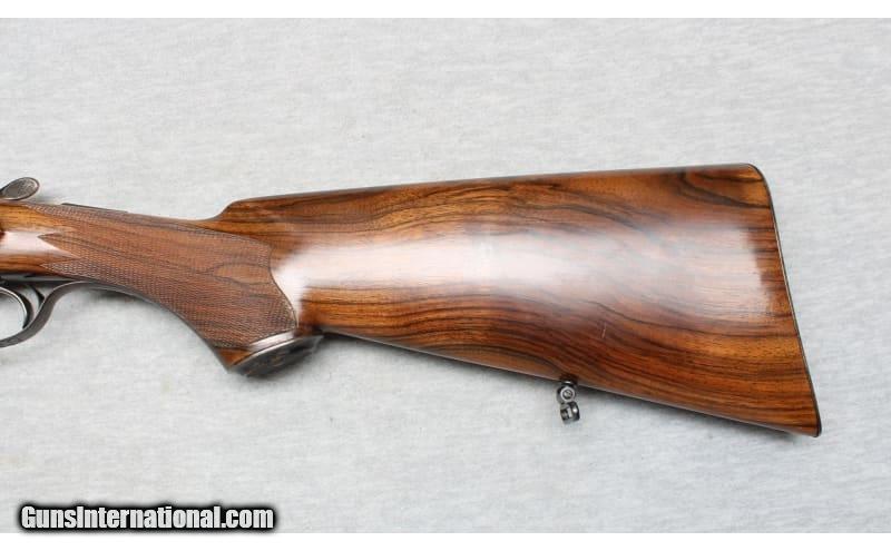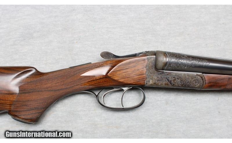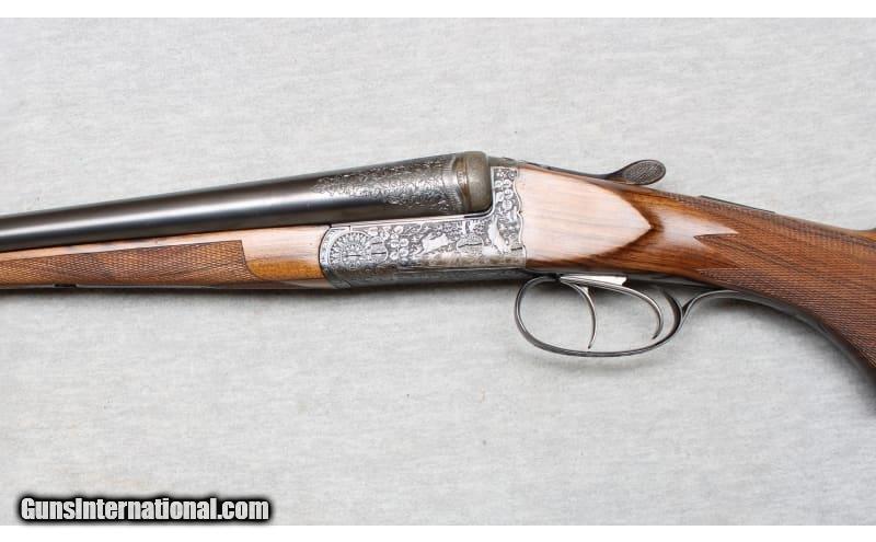 Description: Merkel Boxlock SxS in 16 Gauge. High quality shotgun made in the famous gun-making town of SUHL (Germany). Deluxe checkered pistol grip and forend, French walnut with cheekpiece. Double trigger, Greener crossbolt, extractors, and sling swivels. Case color finished boxlock. Mirror clean inside of barrels. This is an exceptional piece of German workmanship. 16 Gauge SOLD Metal Condition: Excellent Wood Condition: Excellent Barrels: 26 Inches Triggers: Double triggers Stock Dimensions: LOP 14 1/2 inches from front trigger Fore End: Checkered walnut Butt Pad: Steel and checkered walnut Sights: Single silver bead on rib Item Location: La Vista, NE |
