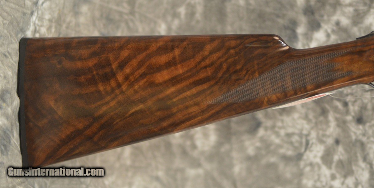 Description: New Merkel Model 122 Game 20GA with 28" fixed choke (IC/M) barrels,concave solid rib. Limited edition No. 5 (of 10) 120th Anniversary of Merkel firearms commemorative model. Features nickel finished sideplates with deep scroll engraving, scroll engraved chambers. Double triggers with ejectors. Factory English straight-hand stock to factory removable butt-plate and splinter forearm. Includes factory leather case and additional factory ABS case. Call 626-633-1002 for best pricing. SOLD |