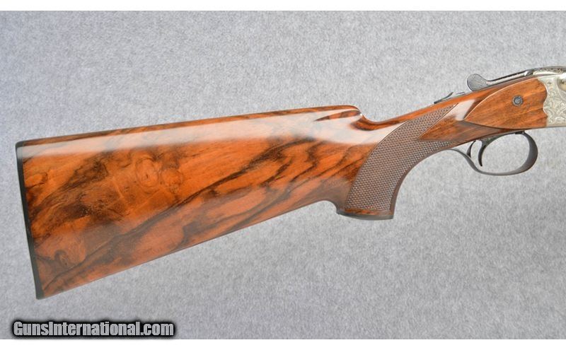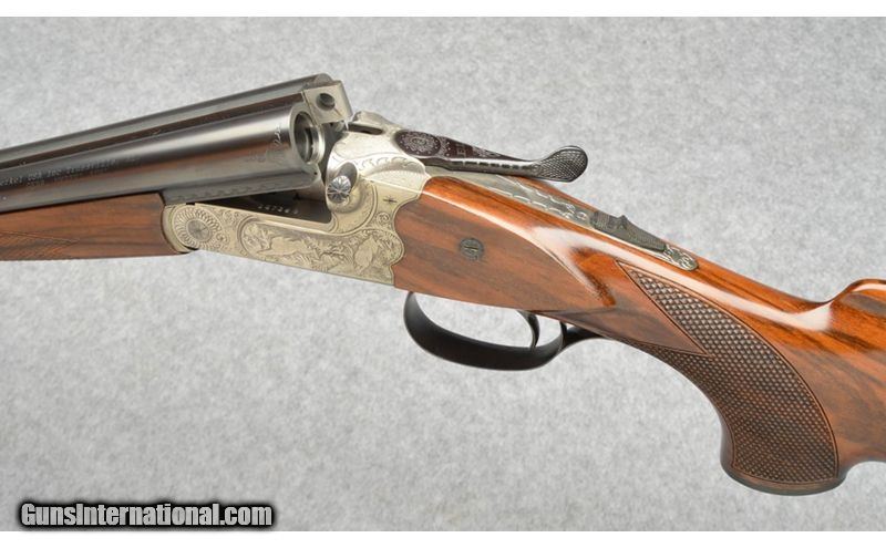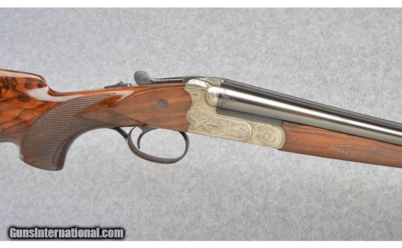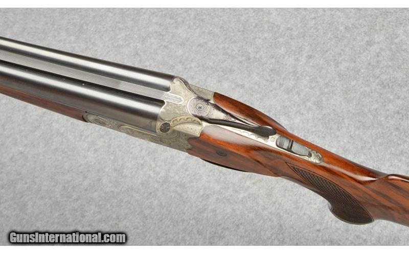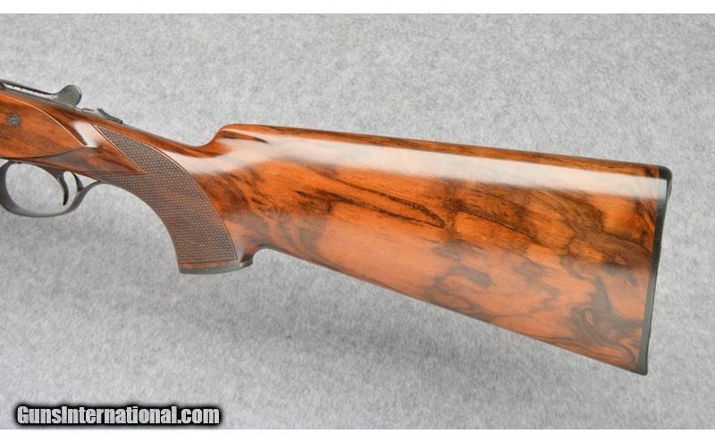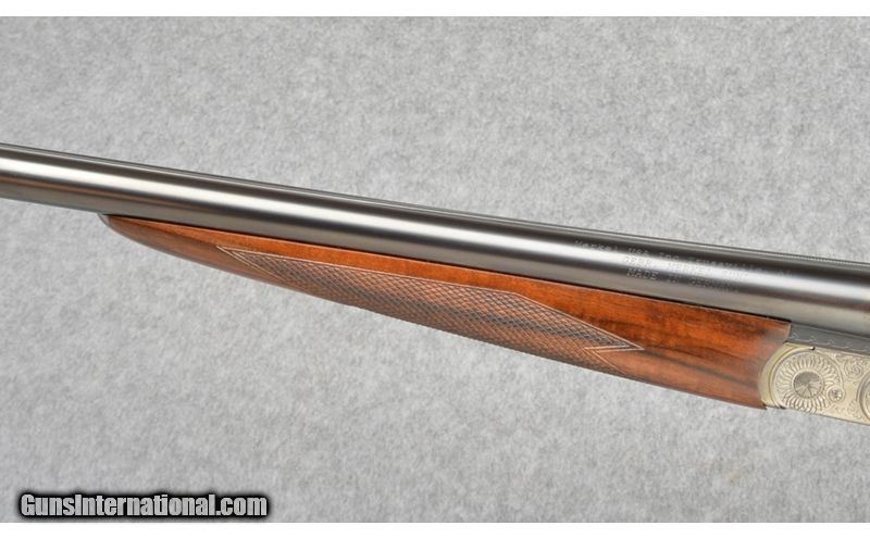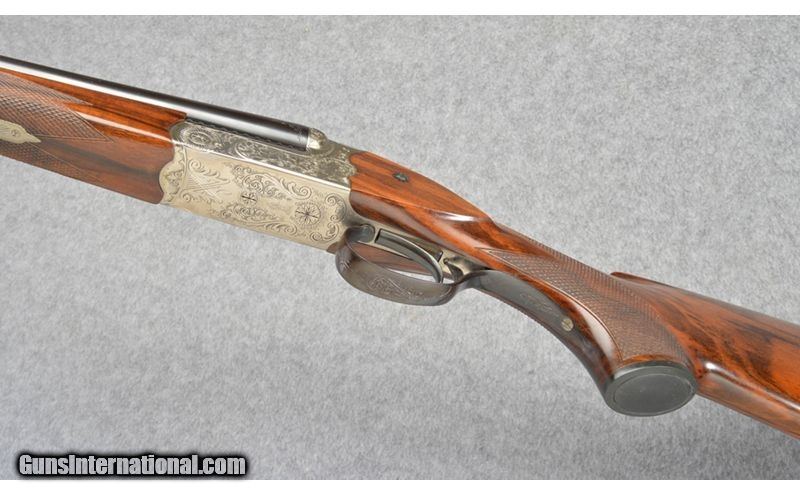 Description: Single trigger, auto safety ejector model with coin finished receiver engraved with scroll and game scenes. Capped pistol grip stock of high grade walnut. Excellent condition. 28 Gauge SOLD Chambers: 2 3/4 Inch Barrels: 28 Inch Triggers: Single Trigger Stock Dimensions: 14 1/4 Inch LOP, 2 1/2 Inch DAH, 1 3/8 Inch DAC Fore End: Splinter Forearms Butt Pad: Merkel Plate Weight: 5 lbs. 13 oz. Sights: Matted Rib, Metal Bead Chokes: Modified / Imp Cylinder, Fixed Item Location: Buda, TX |
