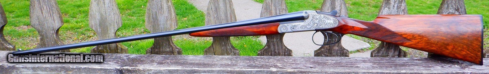 Description: MERKEL MODEL 360SL - 410 GAUGE SIDELOCK EJECTOR - 28" BARRELS CHOKED IMP. MOD. / FULL - 3" CHAMBERS - ENGRAVED RECEIVER WITH LOCKPLATES HAVING GAME SCENES - GREENER STYLE CROSS BOLT - FIRING PINS ARE BUSHED -COCKING INDICATORS - AUTO SAFTEY - STRAIGHT HAND STOCK OF FULL FIGURE LOP 14 9/16"OVER GROOVED BUTPLATE - DROP AT COMB 1 7/16" - DROP AT HELL 2 5/8" - SPLINTER FOREND - DOUBLE TRIGGERS - GUN IS AS NEW SOLD |