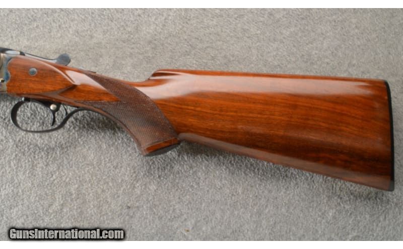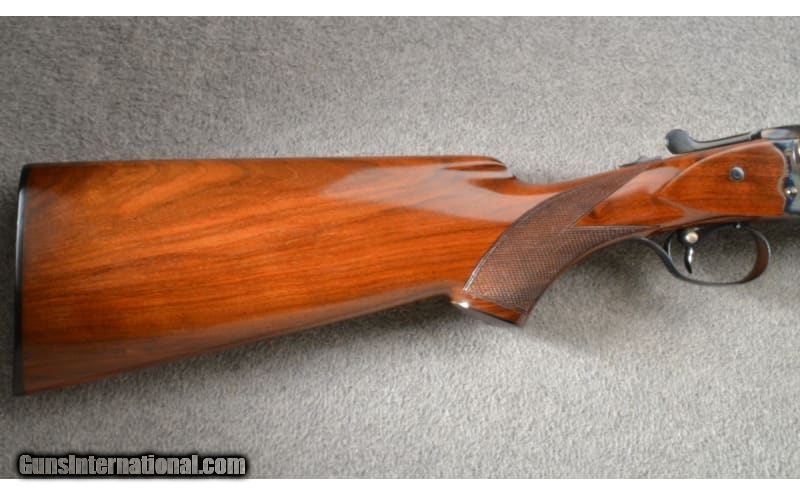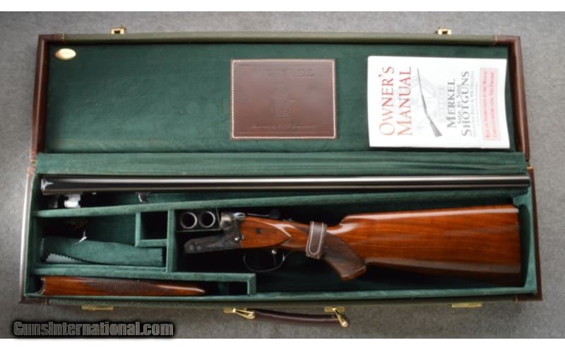 Description: 2007 Merkel 47E chambered in 3" 12 gauge. This Merkel has 28" blued barrels with single brass bead sight on the matted concave solid rib, German proofs, chokes marked "VBZ"/"1/2", with automatic ejectors. The casehardened action displays light scroll engraving and features a single selective trigger with an auto safety. Checkered splinter forend with light scroll engraving on the fittings. The pistol grip stock has a black grip cap and a factory merkel buttplate, measurements (1 1/2" DC) (2 7/8" DH) (14 1/2" LOP). Overall this gun is in 99% condition and Includes leather-bound takedown case. 12 Gauge SOLD Chambers: 3' chambers. Metal Condition: 99%. Wood Condition: 99%. Bore Condition: Bright smooth bores. Barrels: 28" barrels. Triggers: Selective trigger. Stock Dimensions: LOP 14.5". Fore End: Splinter. Butt Pad: Hard rubber. Weight: 6.75 lbs Sights: Bead. Chokes: Fixed. Item Location: Owatonna, MN |