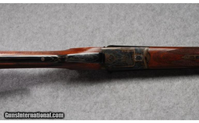 Description: A product of the Cold War era, this Merkel 47E carries the East German proof marks from Suhl on the barrel flats as well as the "Outstanding Quality" mark on the left side of the barrel lug above the serial number. This gun was proofed in June of 1971 as evidenced by the three-digit (671) proofhouse date mark and there are no importer marks to be found. The right barrel is marked "SPECIAL - GEWEHRLAUFSTAHL" (gun barrel steel) and the left "GEBR. MERKEL SUHL" (Merkel brothers, Suhl) with a second line reading: "Made in GDR" (German Democratic Republic, or East Germany). The action is a scalloped boxlock with cocking indicators, Greener crossbolt and Deeley forend release. The lower rib is drilled and tapped (plug screws installed) for a front sling attachment and there is a screw plug in the buttstock for the rear swivel. Well over forty years have passed since this gun was built in the former East Germany and the action is as tight as the day it was made. All outward appearences suggust that this gun was used very little, and it remains in as close to "As New" condition as could reasonably be expected. SOLD Manufacturer: June 1971 Caliber Info: 20 Gauge Chambers: 2-3/4" - Ejectors Metal Condition: Deeply blued barrels appear as new with no visible sign of wear. Receiver case colors are prominent with no evidence of wear or damage. Wood Condition: A very few miniscule handling impressions dot the stock and forend, but one must really scrutinize the surfaces to detect them. Bore Condition: Bright bores. Barrels: 26-3/4" with solid concave rib Triggers: Double triggers Stock: Straight-grip, checkered walnut Stock Dimensions: LOP: 14-1/2", DAC: 1-3/8", DAH: 2-3/8 Fore End: Checkered walnut with Deeley release Butt Pad: Maker's checkered black composition buttplate Weight: 6-1/2 lbs. Sights: Single brass bead Chokes: Fixed Chokes - Improved Cylinder / Improved Cylinder Extras: None. Item Location: East Hartford, CT |