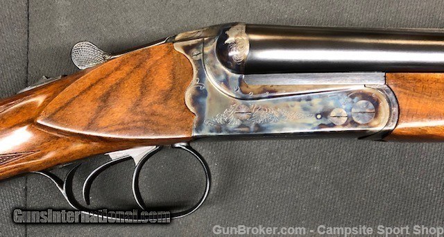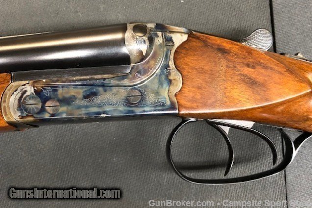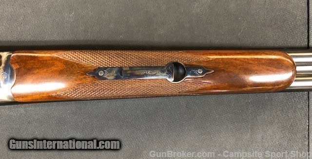 Description: Used Merkel Model 47E boxlock in like new condition. Mfg in Germany. 20ga side x side features 28" barrels choked IC/MOD. The beautiful color cased scalloped back receiver mates perfectly with the straight grip European high grade walnut. The beavertail forend features classic boarded wraparound checkering. This firearm would be a wonderful edition to any shogun shooters collection. SOLD Manufacturer: Merkel Model: 47 E Barrels: 28 Gauge Info: 20 |