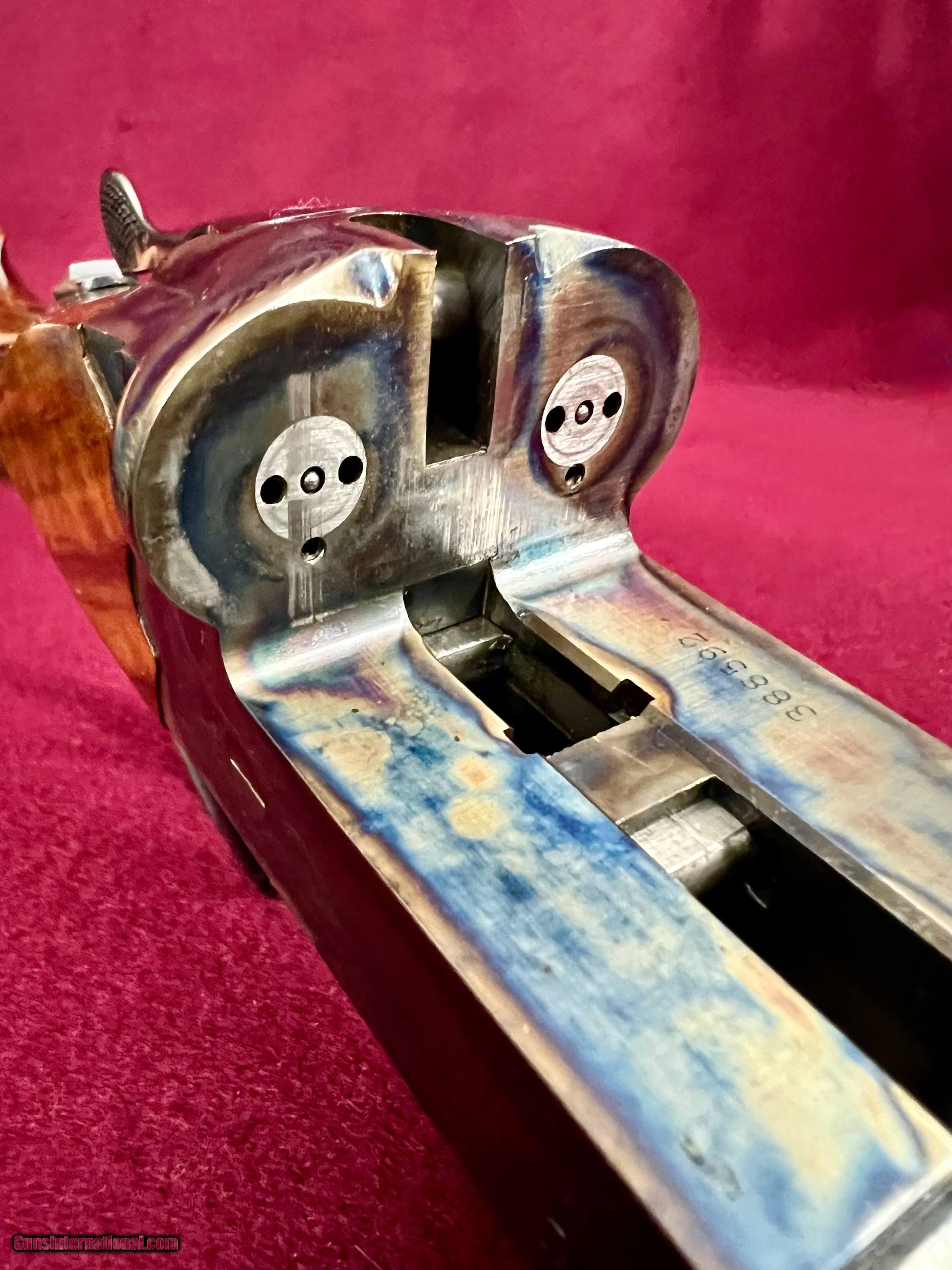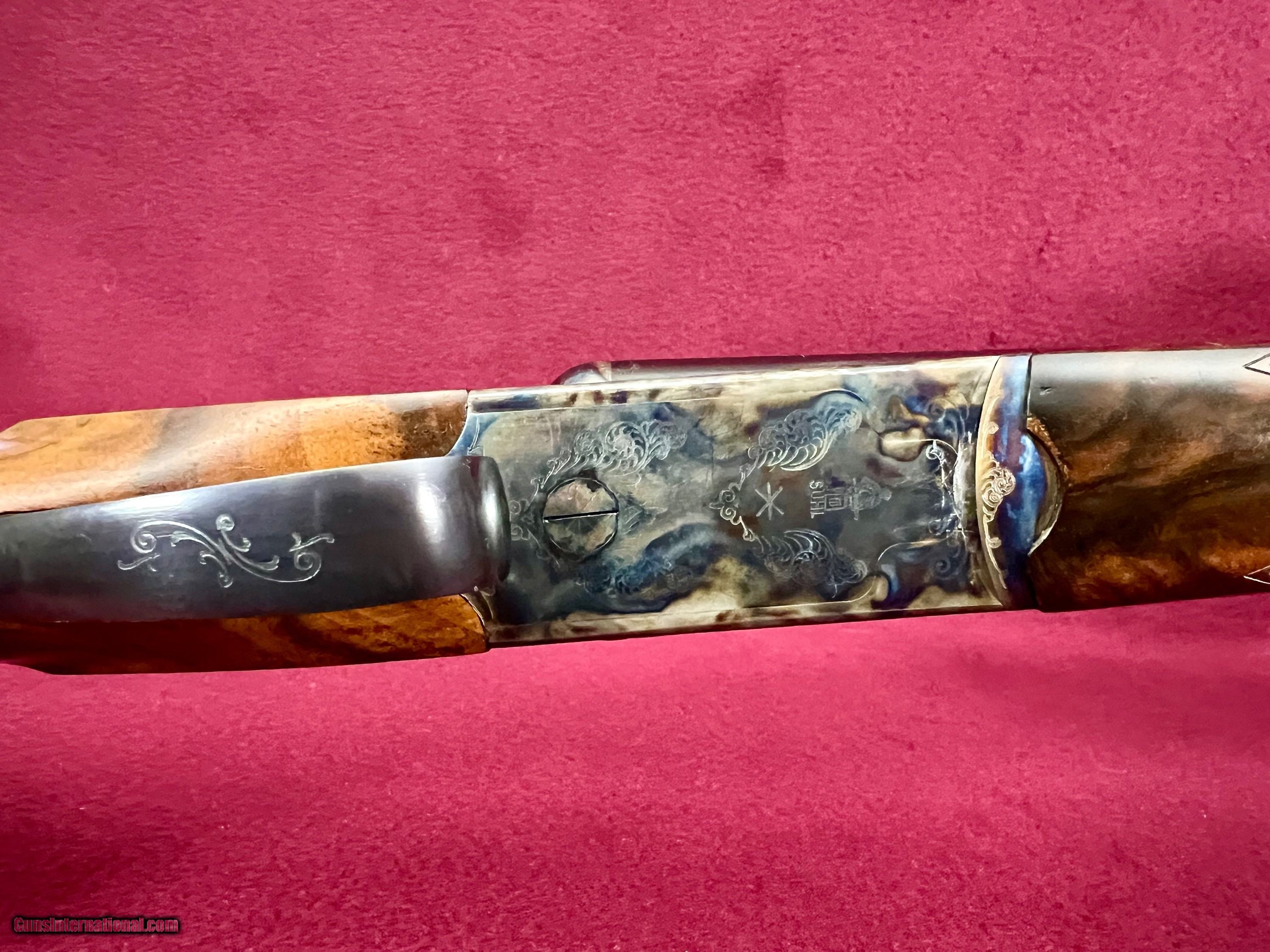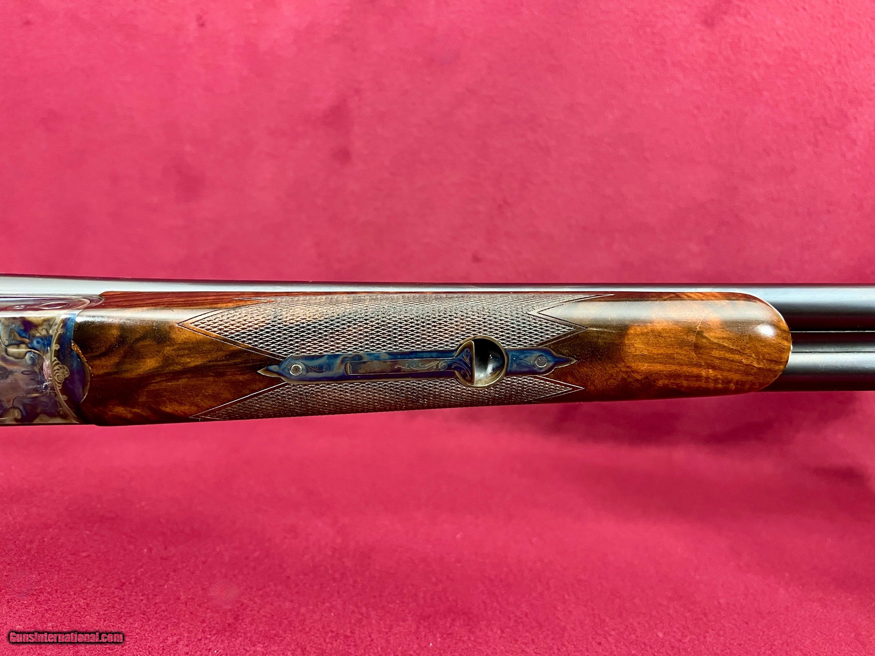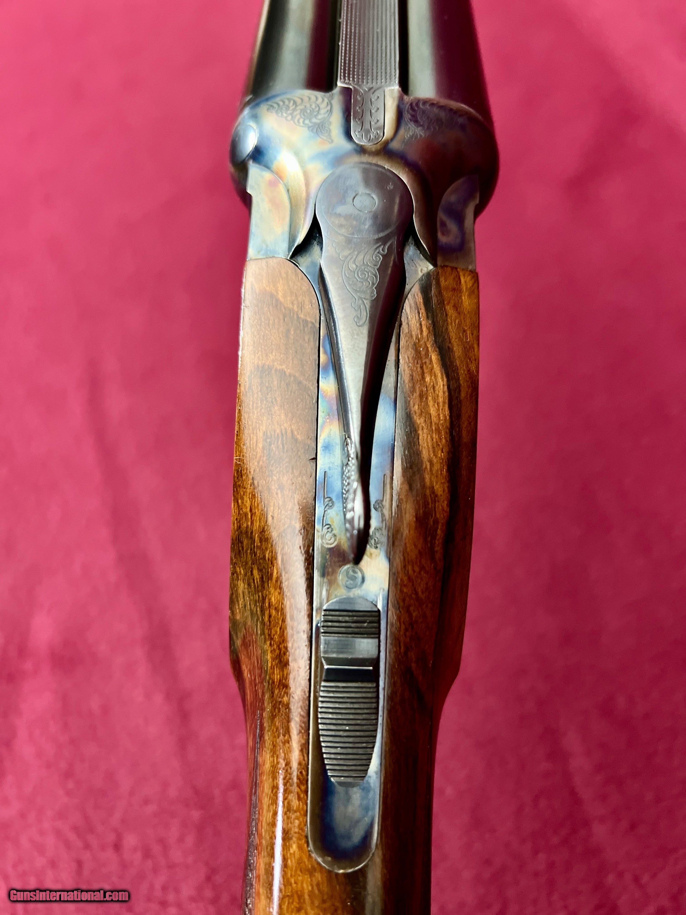 Description: I have for sale a beautiful Merkel Model 47E side by side in 20 gauge. This particular gun comes with 30 inch barrels with improved cylinder and modified chokes with both both bores measuring .627 and right barrel constriction of .008 IC and left at .016 Mod. just as marked on the barrel flats. The barrels also have factory 3 inch chambers which sets this gun up perfectly for Pheasants or even ducks over decoys. Straight English stock with dimensions of 1 1/2 X 2 1/2 X 14 7/16 over the original Merkel butt plate. Stock has slight cast off for the right hand shooter. While we are talking about the stock, please take a look at the attached pictures and see the wood on this gun. I've never owned or seen a Model 47E with wood even close to this stock. I would definitely say it had to be a special order gun to get this grade of wood. The stock also features a splinter forend which matches the butt stock perfectly. The bone and charcoal case coloring on this gun is drop dead gorgeous and in perfect condition as you can see in the pictures. Trigger pulls are crisp and selective ejectors are strong and well timed. Merkels are built tough with the greener crossbolt lockup and are made to be shot. Weight of the gun is a nice 6 pounds 6 ounces. Condition of the gun is excellent with a few light impressions in the wood. There is nothing that detracts from the beauty of this little gun. Price of the gun is $4200 plus $75 shipping to your FFL. As always there is a three day non-firing inspection period with the buyer paying shipping charges if returned. Contact me with any questions you might have. Shotgun Gauge: 20 Gauge Manufacturer: Merkel Model: 47E Serial Number: 3169 Barrel Length: 30 Chambers: 3 Inch Ejectors: Selective Well Timed Condition: Excellent Metal Condition: Excellent Wood Condition: Excellent Bore Condition: Perfect Action: Boxlock Triggers: Double Stock: Straight English Stock Comb: 1 1/2 Stock Heel: 2 1/2 Stock Cast: Slight Right Hand Fore End: Splinter Butt Pad: Merkel Plate LOP: 14 7/16 Rib: Solid Raised Weight: 6 pounds 6 ounces Sights: Single front Bead Chokes: IC & Mod Choke Left: .016 Mod Choke Right: .008 IC Engraving: Scroll Extras: None Price: $4,200.00 Shipping: $75.00 Contact Seller |