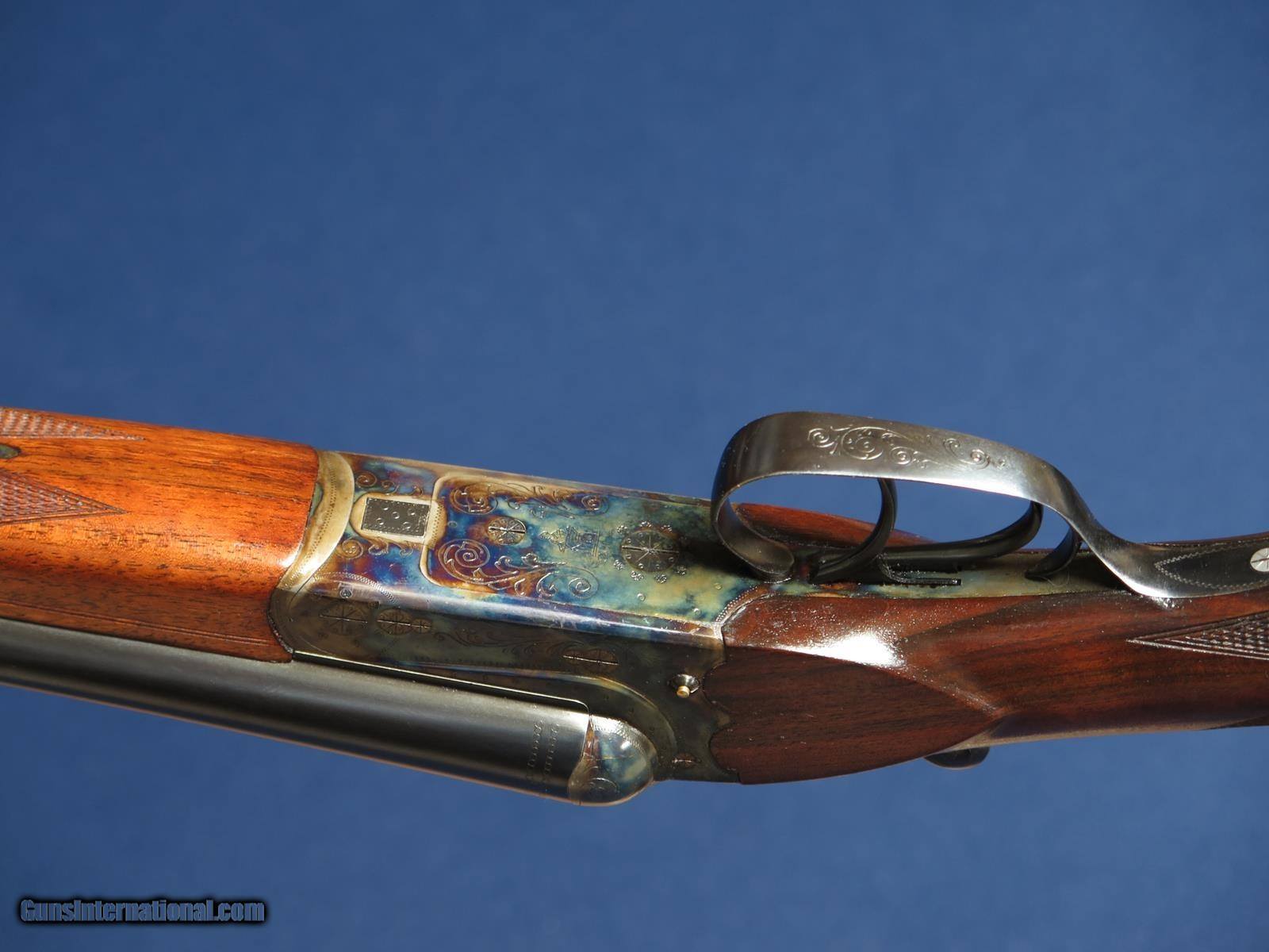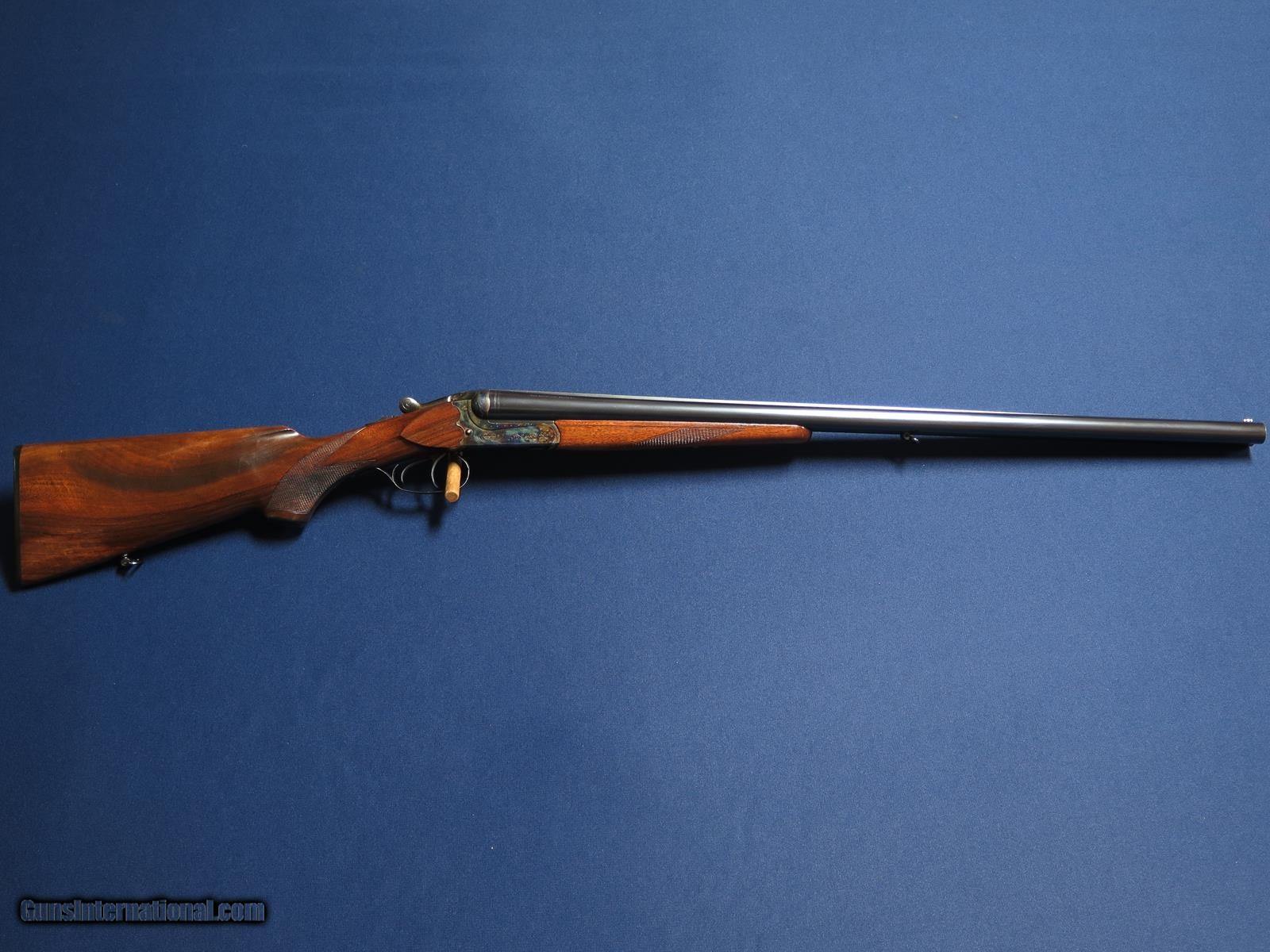 Description: Merkel 8 12ga. 28 inch Mod & Mod. .017 & .022. Scalloped boxlock. Side clips. cocking indicators. Double triggers. Extractors. 14 5/8 LOP butt plate. 97-98%. Excellent bores. We have over 45 years in business, and not only do we buy guns, but we accept collections (and single/multiple guns) on consignment. SOLD |