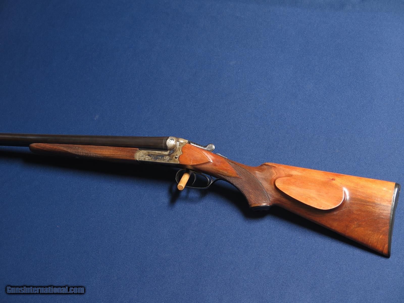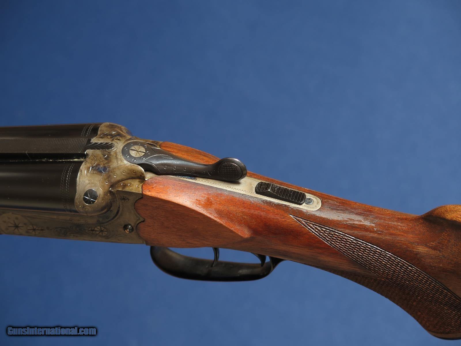 Description: Merkel 8 12ga. 28 inch full & extra full. .039 & .047. Double triggers. Extractors. Side clips. Cocking indicators. Greener crossbolt. 14 1/2 LOP butt plate. 2 3/4 chambers. 97%. Excellent bores. Missing swivel in stock. We have over 45 years in business, and not only do we buy guns, but we accept collections (and single/multiple guns) on consignment. SOLD |