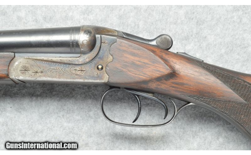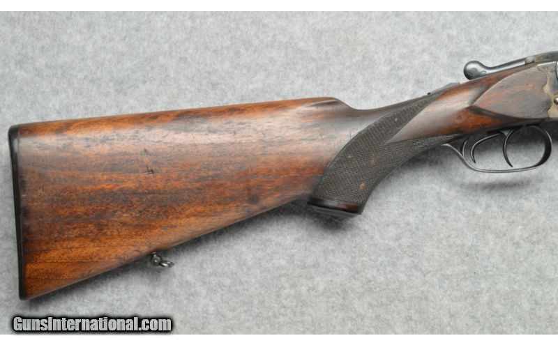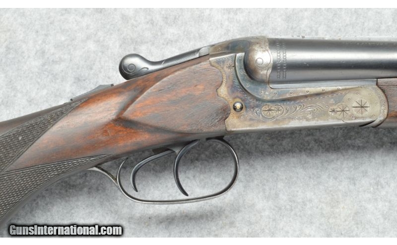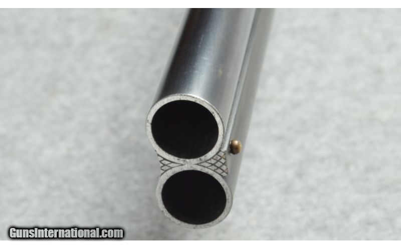 Description: The importer labeled this firearm as a 47E which has ejectors. This firearm has extractors and is therefore a Model 8, same internals as a 47E without ejectors. SOLD Curio/Relic: Yes Manufacturer: February 1974. Date code 274 on barrel flat. Caliber Info: 16 Ga. Chambers: Side by side shotgun with 2 3/4 inch chambers. Metal Condition: Semi gloss blued barrels, some wear marks and light scratches on the barrels, the receiver is lightly engraved in good condition. Most of the Case finish has worn away. Wood Condition: Stock and fore-end are in good condition, some small dent and scratches. Bore Condition: Very good, bright and shiny. Barrels: 28 inch round blued barrels. Triggers: Two triggers. Stock: Checkered pistol grip wood stock with Monte Carlo cheek piece. Stock Dimensions: 13 3/8 inch LOP rear trigger, 14 3/8 inch LOP front trigger. Fore End: Checkered fore-end matches the checkered pistol grip wood stock. Butt Pad: Black synthetic butt pad. Weight: 7 pounds. Sights: Brass bead at the muzzle. Chokes: Fixed chokes, Full left, Modified right. Extras: Sling swivels. Item Location: Berlin, MA |