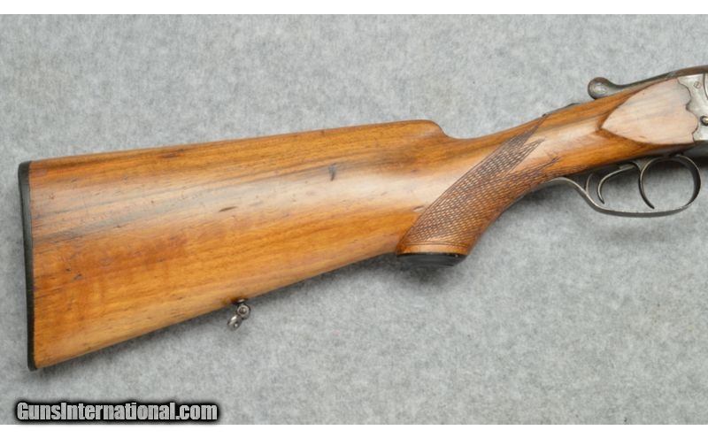 Description: Importer has marked this firearm as a Merkel 47E. It is actually a Model 8 and was miss-marked at the time of import. SOLD Manufacturer: August 1969. Caliber Info: 16 Ga. Chambers: Break action two round capacity. Metal Condition: Fair to good, Case finish of receiver is mostly missing. Wood Condition: Fair to good, checkering is very worn and there are a few dings and dents. Bore Condition: Fair to good, some pitting in front of the chambers on both barrels. Barrels: 28 inch side by side round blue barrels. Triggers: Two triggers, rear left barrel, front right barrel. Stock: Checkered pistol grip stock with a Monte Carlo cheek piece. Stock Dimensions: Front trigger is 14 1/2 inch length of pull, rear trigger is 13 1/2 inch length of pull, Fore End: Small checkered wooden fore-end. Butt Pad: Synthetic butt pad. Weight: 6 pounds. Sights: Single brass bead at the muzzle. Chokes: Left barrel is Full choke, right barrel is Modified choke. Item Location: Berlin, MA |