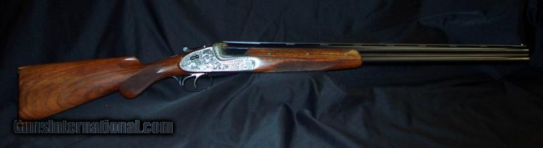 Description: Merkel 203-E Sidelock 12 gauge 28 inch vent rib with Modified & Full chokes. Ornate games scenes and scroll work on a coin finished receiver. This beautiful used over/under with pistol grip stock and 3-piece fore stock show a small ding in the wood under the fore stock and another on the underside of the butt stock. Black plastic butt plate. Super tight lockup of the action. ***NOTICE****PLEASE READ****NOTICE*** All items are subject to prior in store sales and may not be available. NO international sales, No California sales !! NO trades !! Credit cards-- Master Card, Visa and Discover are 3% higher than the listed prices- USPS money orders & Certified Banks checks OK. New York residents add NYS sales tax. All sales of firearms have a 3 day, no fire return policy -- Return shipping is not refundable -- NO C&R's, All firearms are shipped only to FFL holders in the lower 48--The buyer is responsible for knowing the firearms laws and ordinances of his state and city. SOLD |