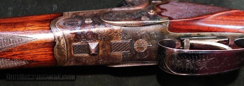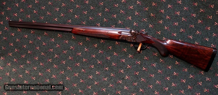 Description: MERKEL, PRE WAR SCALLOPED BOXLOCK 28GA O/U SHOTGUN, 28" BBLS, CASE COLORED ACTION WITH SCROLL AND BOUQUETS, 2 3/4, CHOKED MOD/IM, SOLID RIB, EJECTORS, SST, BEAUTIFUL HIGHLY FIGURED FRENCH WALNUT, RK, DIAMOND PISTOL GRIP, 3 PC FOREND, LOP 14 1/4, 1 7/16, 2 1/2, 6LBS, IN EXCELLENT ORIGINAL CONDITION, WOOD, BLUE, CASE COLORS, BORES, TIGHT ACTION ~! SOLD Shotgun Gauge: 28 Gauge Manufacturer: MERKEL Model: SCALLOPED BOXLOCK Barrel Length: 28" BBLS Bore: 28GA Chambers: 2 3/4 Ejectors: YES Condition: EXCELLENT ORIGINAL CONDITION ! Action: O/U Triggers: SST Stock: HIGHLY FIGURED FRENCH WALNUT, RK, DIAMOND PISTOL GRIP Fore End: 3 PC FOREND LOP: LOP 14 1/4, 1 7/16, 2 1/2 Rib: SOLID RIB Weight: 6LBS Chokes: MOD/IM Engraving: SCROLL WITH BOUQETS ON CASE COLORED ACTION Item Location: SAFARI OUTFITTERS LTD. 2517 ROUTE 44 SALT POINT, NY 12578 |