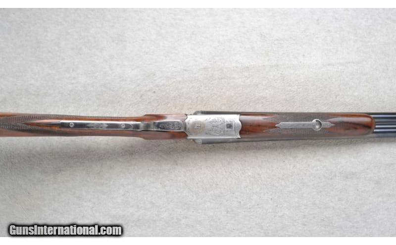 Description: This Merkel Side by Side Model is a 12 Ga. shotgun. It has 28 inch barrels with ejectors and a middle solid rib. A brass bead front sight. With 3 inch chambers it comes with choke tubes. It has a single trigger. The butt stock is a checkered grip walnut straight grip. The forearm is a checkered grip walnut splinter. The receiver is very nicely engraved with scroll and has game birds in an outdoor scene. Serial Number 464384. 12 Gauge SOLD Chambers: 3 inch. Metal Condition: Good. Some minor use marks. Wood Condition: Good. Has some minor use marks. Some very small cracks at the receiver right side. Crack behind upper tang. Bore Condition: Shiny. Barrels: 28 inch barrels with ejectors and a middle solid rib. Triggers: Single Stock Dimensions: LOP 13 3/4 inches. DAC 1 1/2 inch. DAH 2 1/2 inch. Fore End: Checkered grip walnut splinter. Butt Pad: Suhl checkered black plate. Weight: 6 lb. 12 oz. Sights: Brass bead front. Chokes: Comes with choke tubes. Item Location: Richfield, WI |