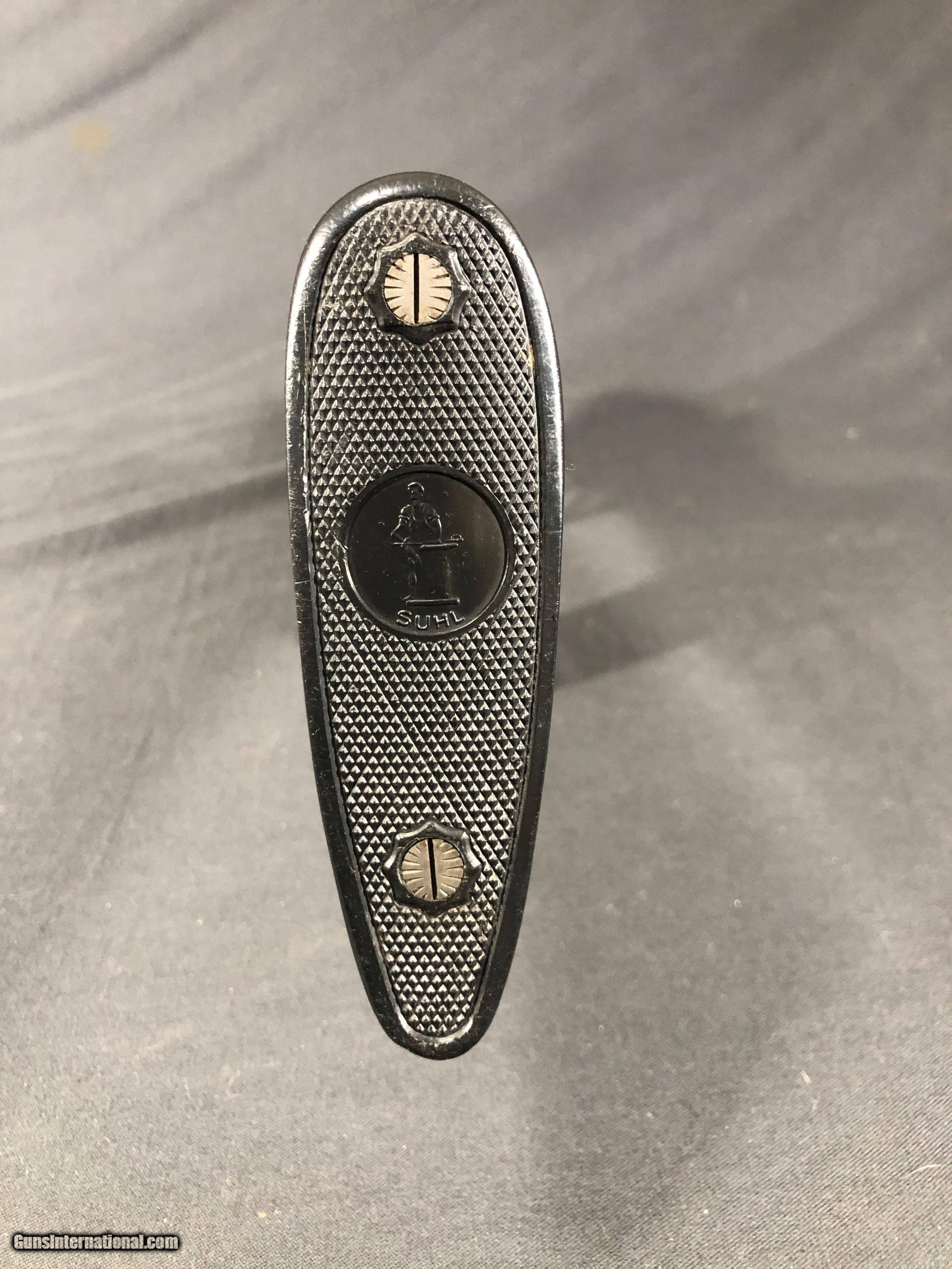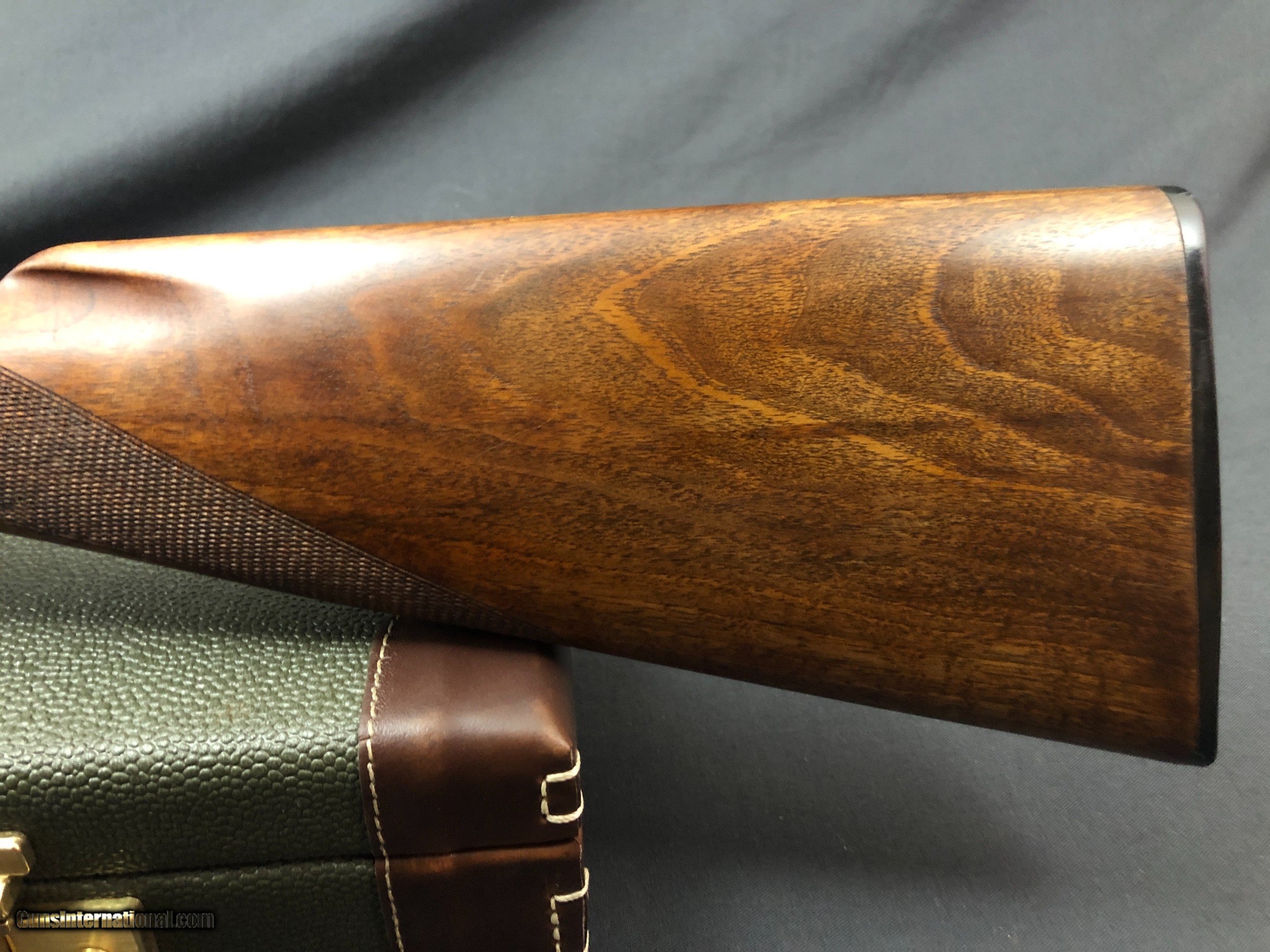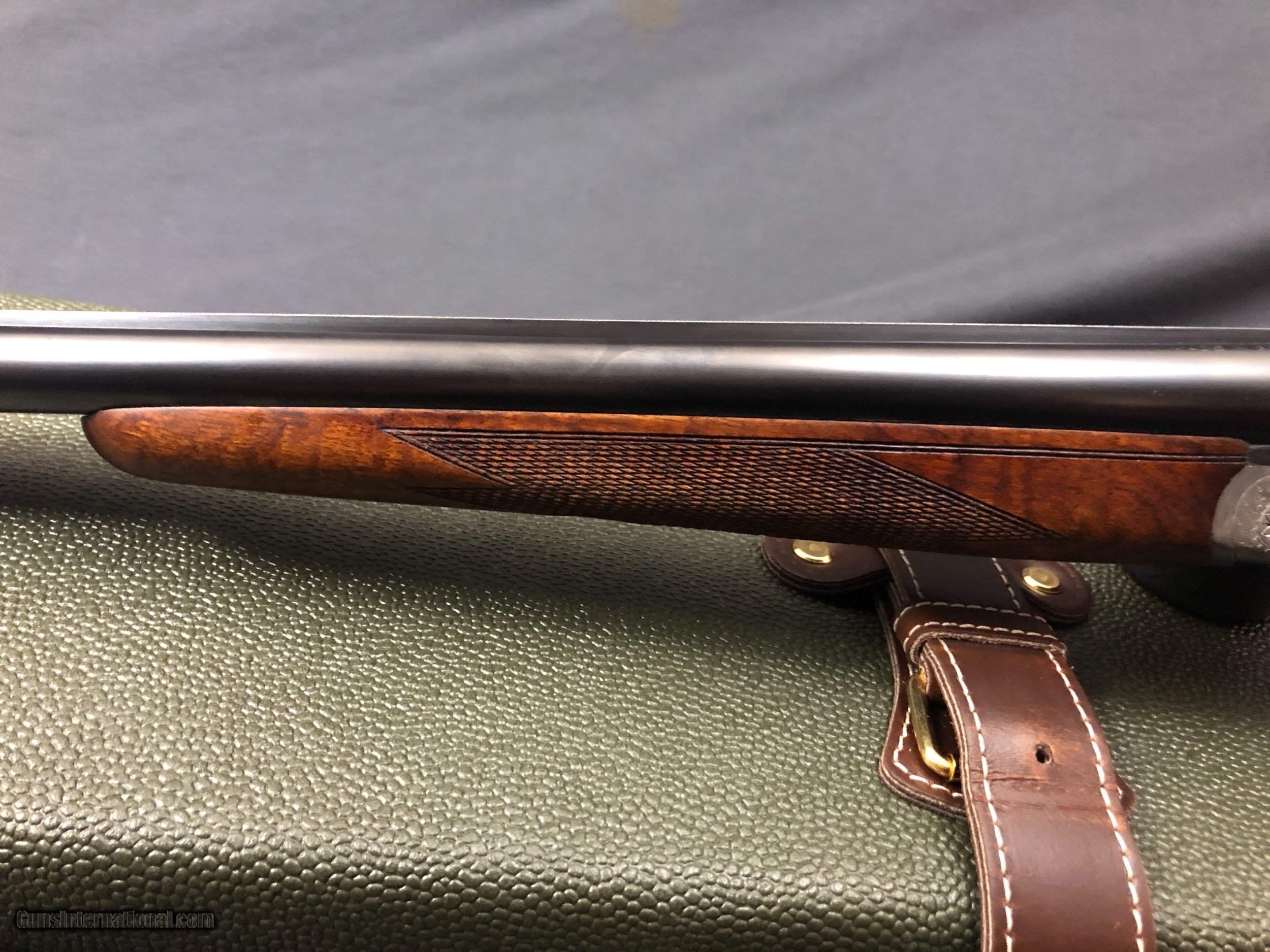 Description: SALE PENDING!!! A seldom found Merkel made for the English market. No sling swivels. Flat sided action. No cocking indicators. No side clips. Comes in a makers case. All in Excellent mechanical and cosmetic condition. Please call Mark 715-814-1295 Pack and ship $45 LAYAWAY: Layaway is available with 1/3 down of final total price including shipping/insurance within 7 days . Balance due in 45 days. Layaway Sales and guns modified at time of sale are FINAL with no refunds, no inspections, no returns. Chokes may be opened to your choice at time of sale for $50 per barrel . SOLD Shotgun Gauge: 20 Gauge Manufacturer: MERKEL Model: 147E ENGLISH Barrel Length: 26IN Chambers: 3IN Ejectors: YES Condition: EXCELLENT Metal Condition: EXCELLENT Wood Condition: EXCELLENT Bore Condition: EXCELLENT Stock Comb: 1 7/16IN Stock Heel: 2 3/8 IN Butt Pad: ORIGINAL LOP: 14 1/2IN Weight: 5LBS 12OZ Manufacture Date: 1985 Choke Left: MODIFIED Choke Right: IMP/CYL Engraving: GAME AND SCROLL HAND Case: MERKEL Proof:Nitro: YES |