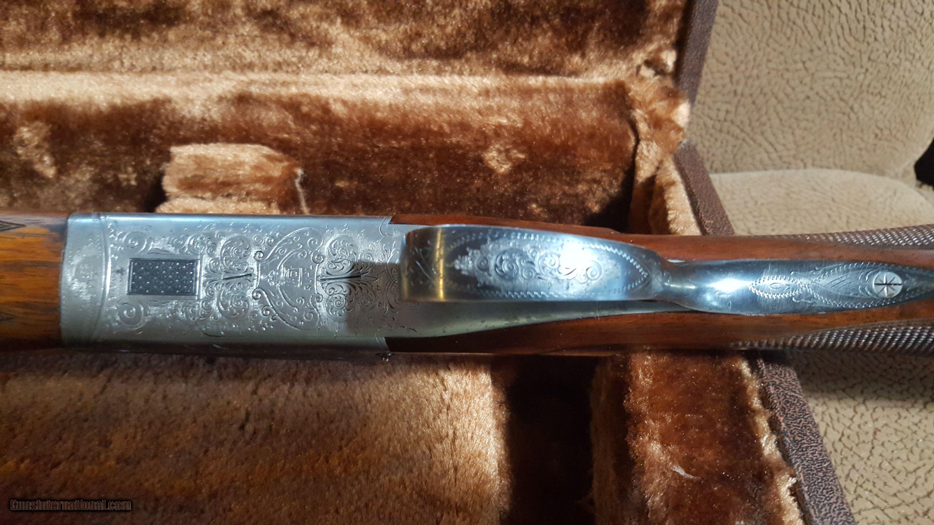Description: SN 66048. Cal. .410 ga. 28" Demi-bloc bbls have matted ventilated rib. Coin finished ogee backed dbl Kersten OU Blitz action features non-automatic and single non-selective trigger. Action is engraved with sprays of scroll surrounding hunting scenes with pointer and two grouse on left side, and trio of ducks in marsh on right. Lightly marbled European walnut capped pistol grip buttstock with right hand cheekpiece measures 14-1/4" over composition buttplate. Matching 3-pc ejector forend has Deeley release. Bore diameter at muzzles: top -.398, bottom - .398. Drop at heel: 2-3/8", drop at comb: 1-1/2". Cast: approx 1/2 off. Weight: 6 lbs. 7 oz. LOP: 14-1/4". PROVENANCE: Bill Trotter collection. CONDITION: Excellent, retaining nearly all factory finishes on wood and metal. Mechanically Excellent Brand new SportLock Deluxe case sold separately $100. I do ship to CA. Shipping and insurance $100 to lower 48. AK, HI pay more, contact prior to bid. See pictures for condition. More pictures of specific area will be provided on request. I do not have FFL. If you FFL dealer does not accept shipment from non FFL seller you will have to pay additional $35 for my FFL fee. International buyers: Contact prior to bid. Please budget $1000 - $1500 for export fees and shipping. If you cannot find US exporter, I will find one for you and facilitate document preparation for $200 upfront nonrefundable fee. It is your responsibility to obtain import license and translate it to English in home country. If paying by PayPal add 4% to final invoice. For wire transfer - contact for credentials. Layaway available up to 6 months, 6 equal payments - 10% extra. 3 days no fire inspection. Unless item is materially misrepresented 10% will be deducted from refund. Unless engraved on the gun, the make, model and year of manufacture is my best guess based on available info and research. Ask questions and do research before or buying. SOLD Manufacturer: Merkel Model: 201E Serial Number: 66048 Chambers: 2 3/4 Ejectors: Ejector Condition: Excellent Metal Condition: Excellent Wood Condition: Excellent Bore Condition: Excellent Barrels: 28 Barrel Type: O/U Action: Boxlock Triggers: Single, nonselective Gauge Info: .410 Stock: Solid Wood Stock Comb: 1 1/2 Stock Heel: 2 3/8 Stock Cast: 1/2 off Fore End: 3 piece LOP: 14 1/4 Rib: Ventilated Chokes: IM/IM Case: Sold separately Item Location: 11756 Minimum Wall Thickness Left: .398 Minimum Wall Thickness Right: .398 |