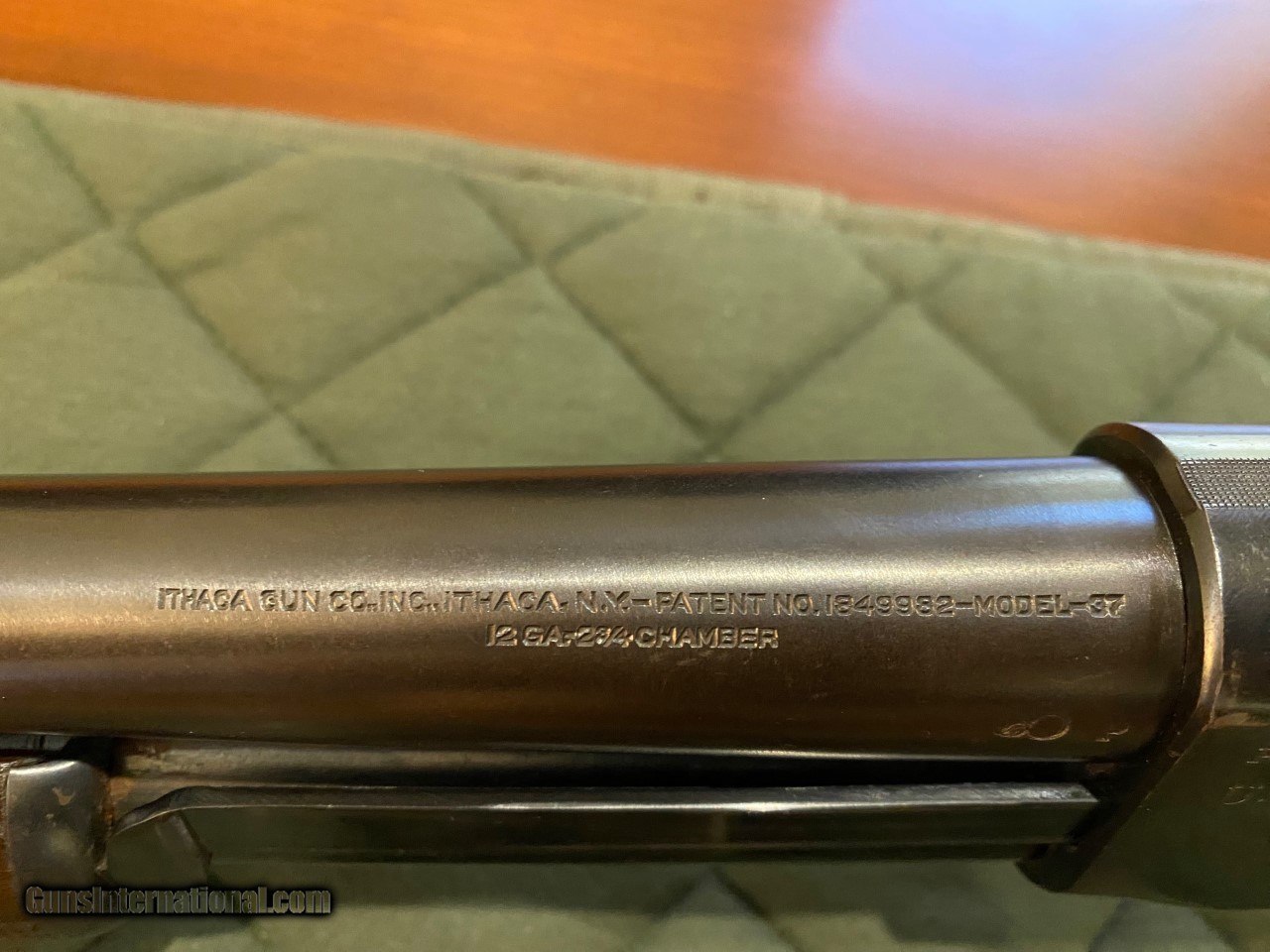 RARE Ithaca Model 37 Riot Shotgun Martially Marked Cartouche Stock Stamping