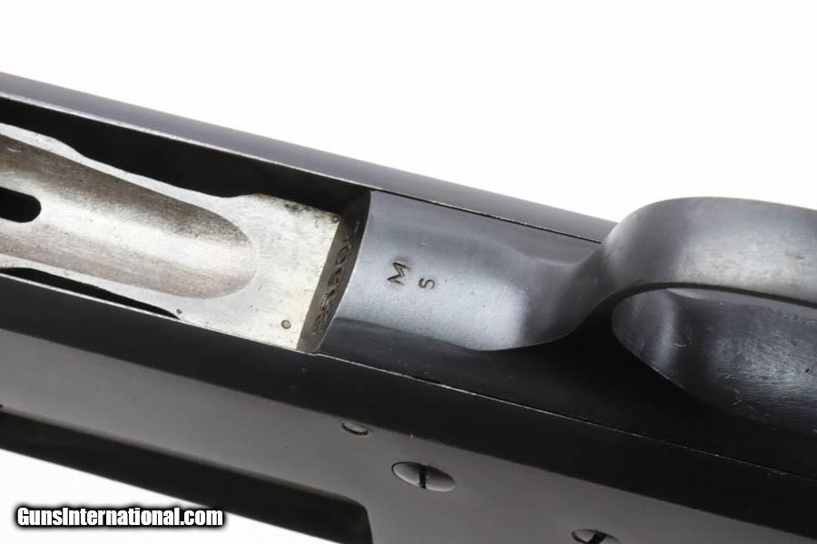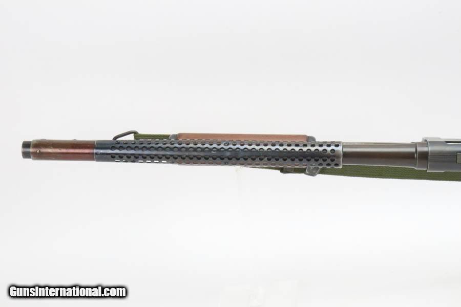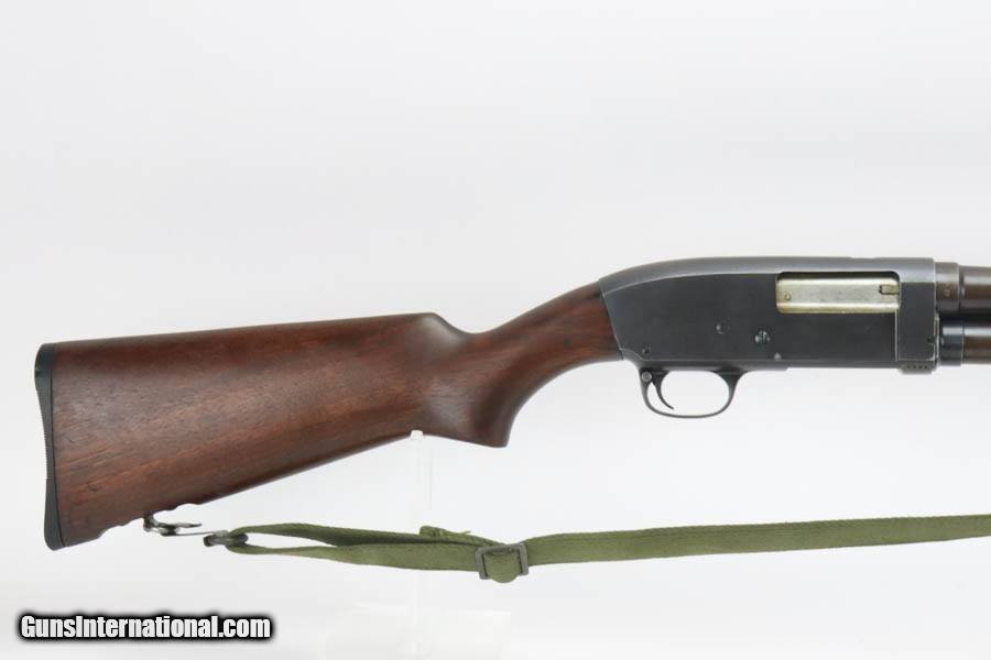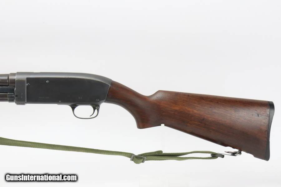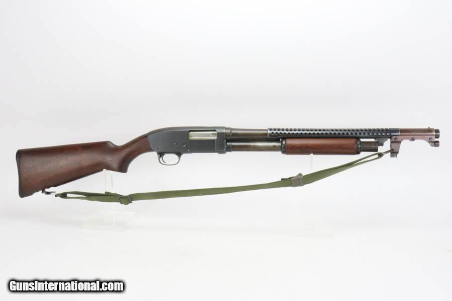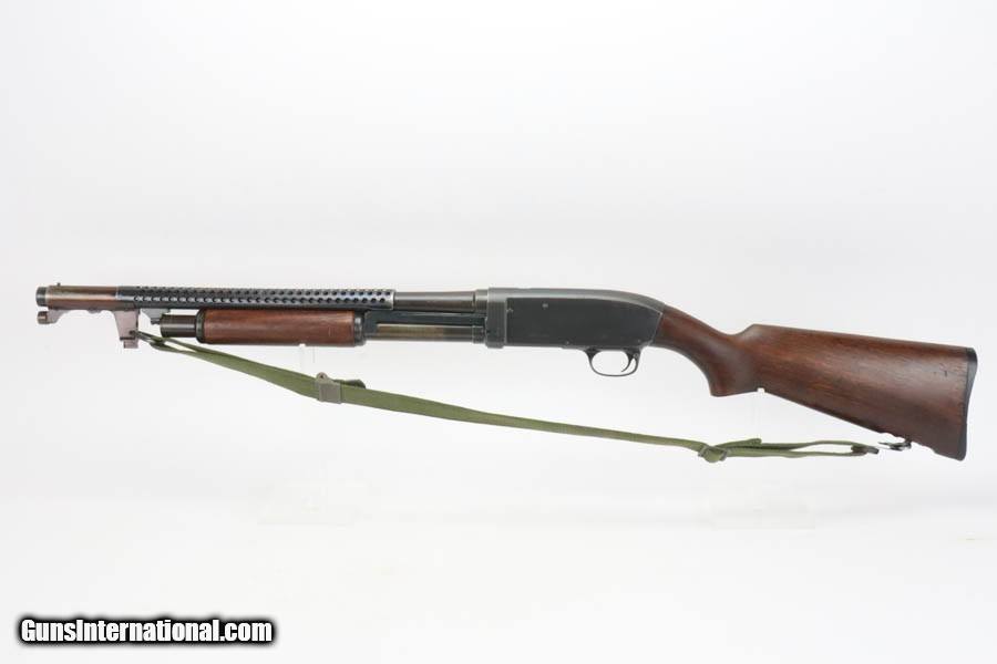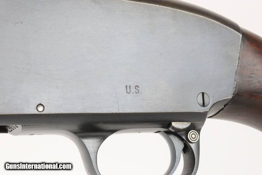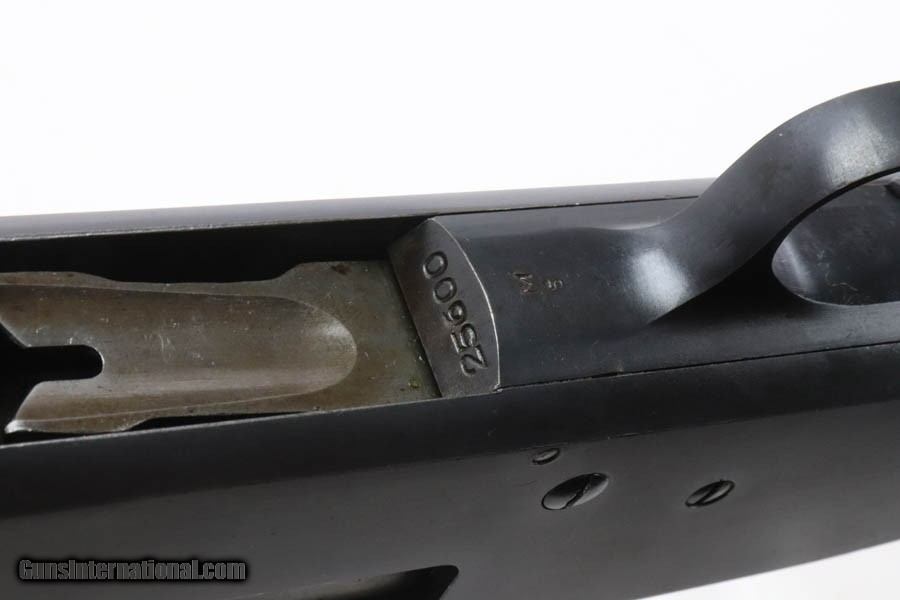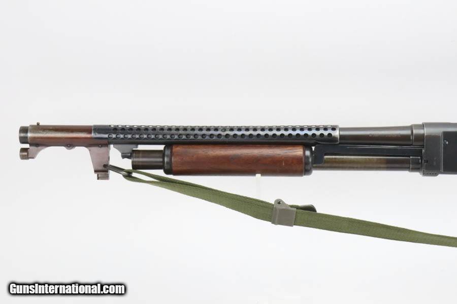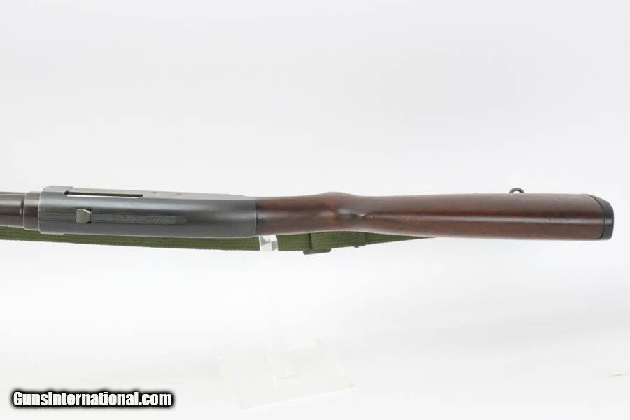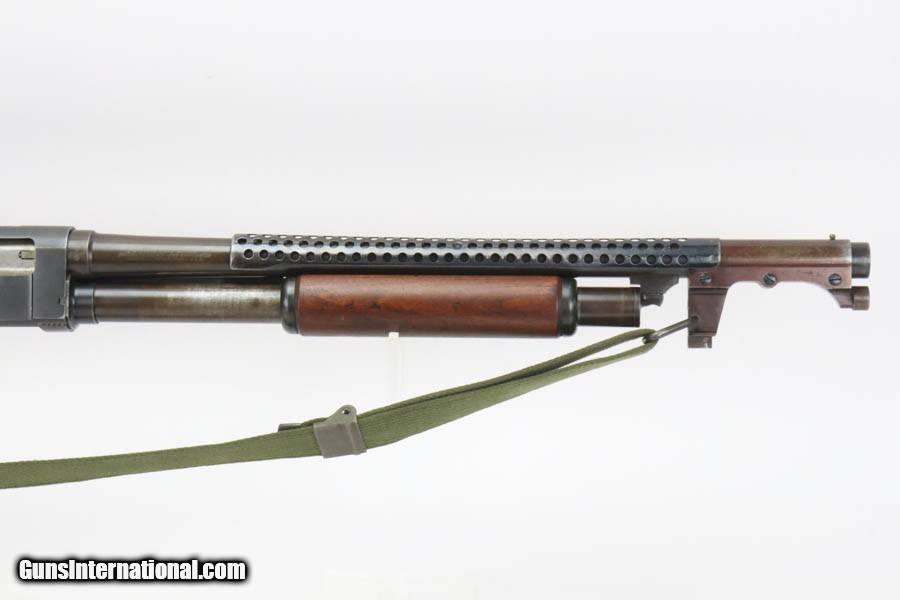 Description: This is a very rarely encountered Stevens Savage Model 620 trench shotgun, made as a part of US military procurement during WWII. Unlike its M520 counterpart, this was a hammerless model, very much like Winchester M12. It was produced in trench configuration in limited numbers and is very difficult for a collector to acquire. This particular gun is a textbook example, with all the correct military markings, original finish and all original parts including the bayonet lug and heat shield. Canfield reports that fewer than 10,000 military trench examples were ordered during WW2. This particular example is in very good condition with minor edge wear on the receiver, and standard finish loss on the mag tube from the action. Receiver and barrel both have the flaming bomb proofs, and the receiver is 'U.S.' marked. Correct heat shield with plum tone. The wood parts are in great shape with no cracks and hardly any dings or nicks, but unfortunately, the buttstock is mismatched to the receiver. Listing includes a scarce, original Remington bayonet. Shiny bore with a hint of frosting. Comes with a period canvas sling. Curio/Relic: Yes Shotgun Gauge: 12 Gauge Price: $5,500.00 Contact Seller |