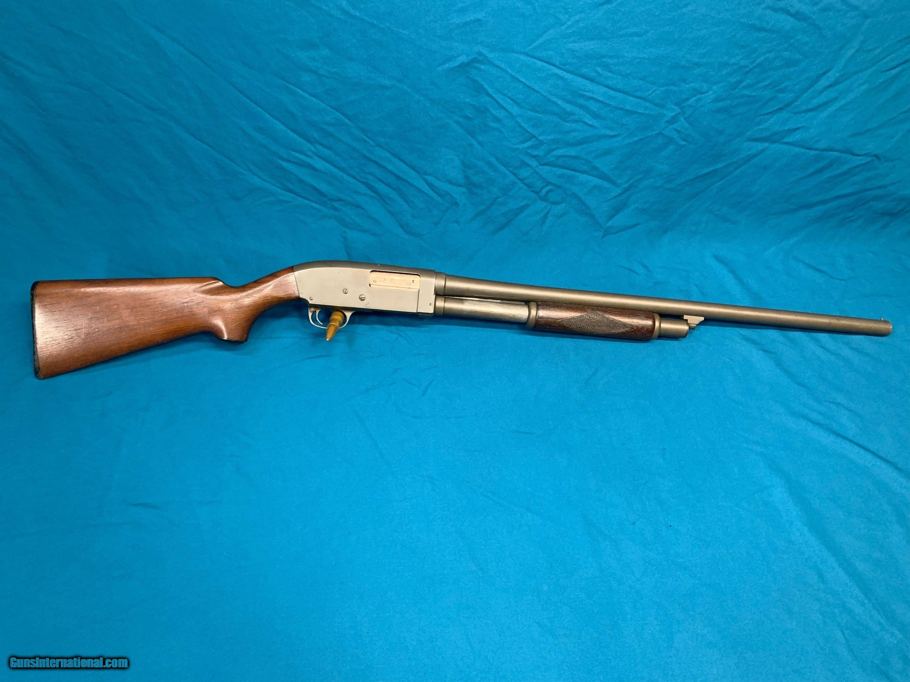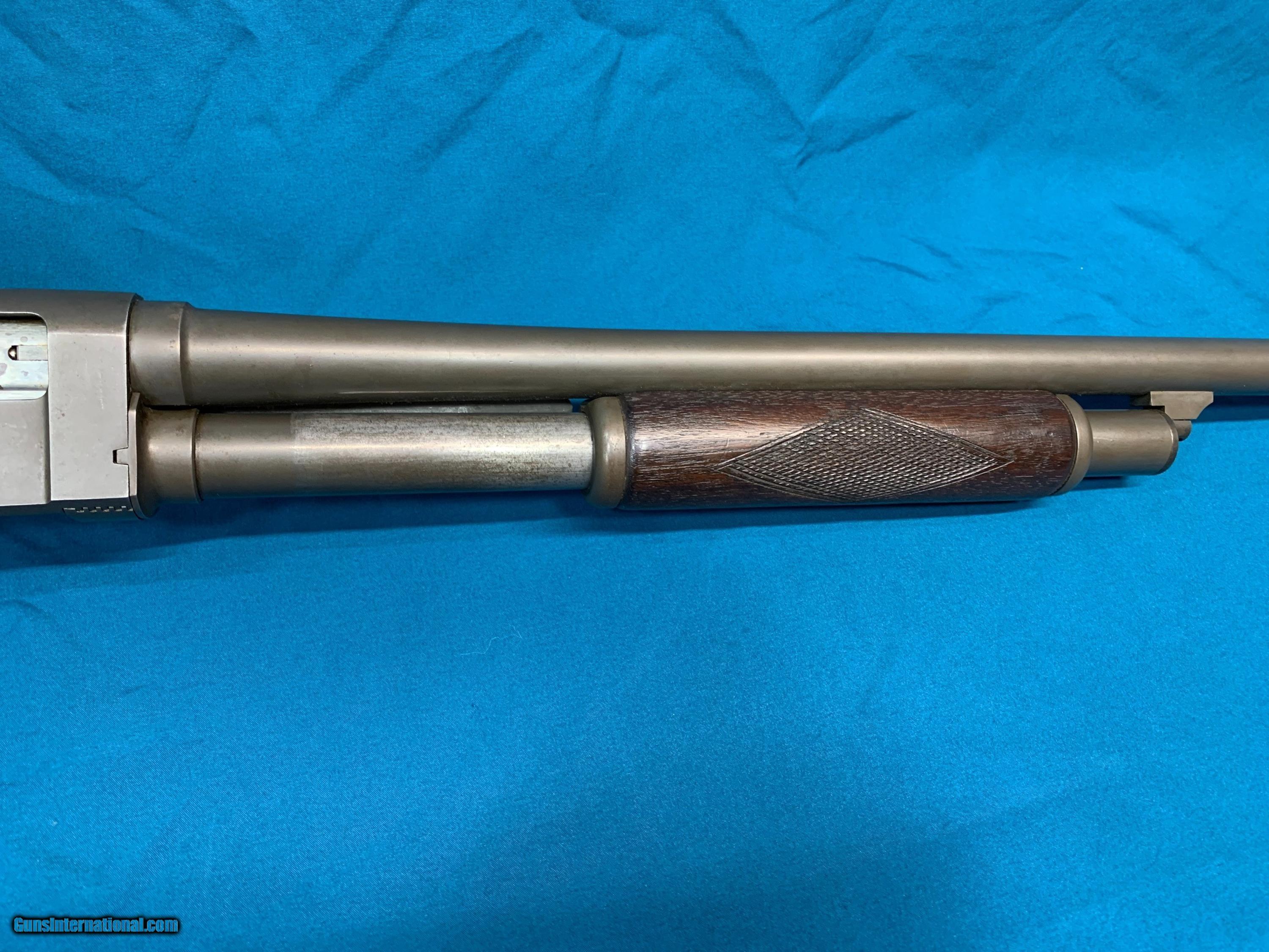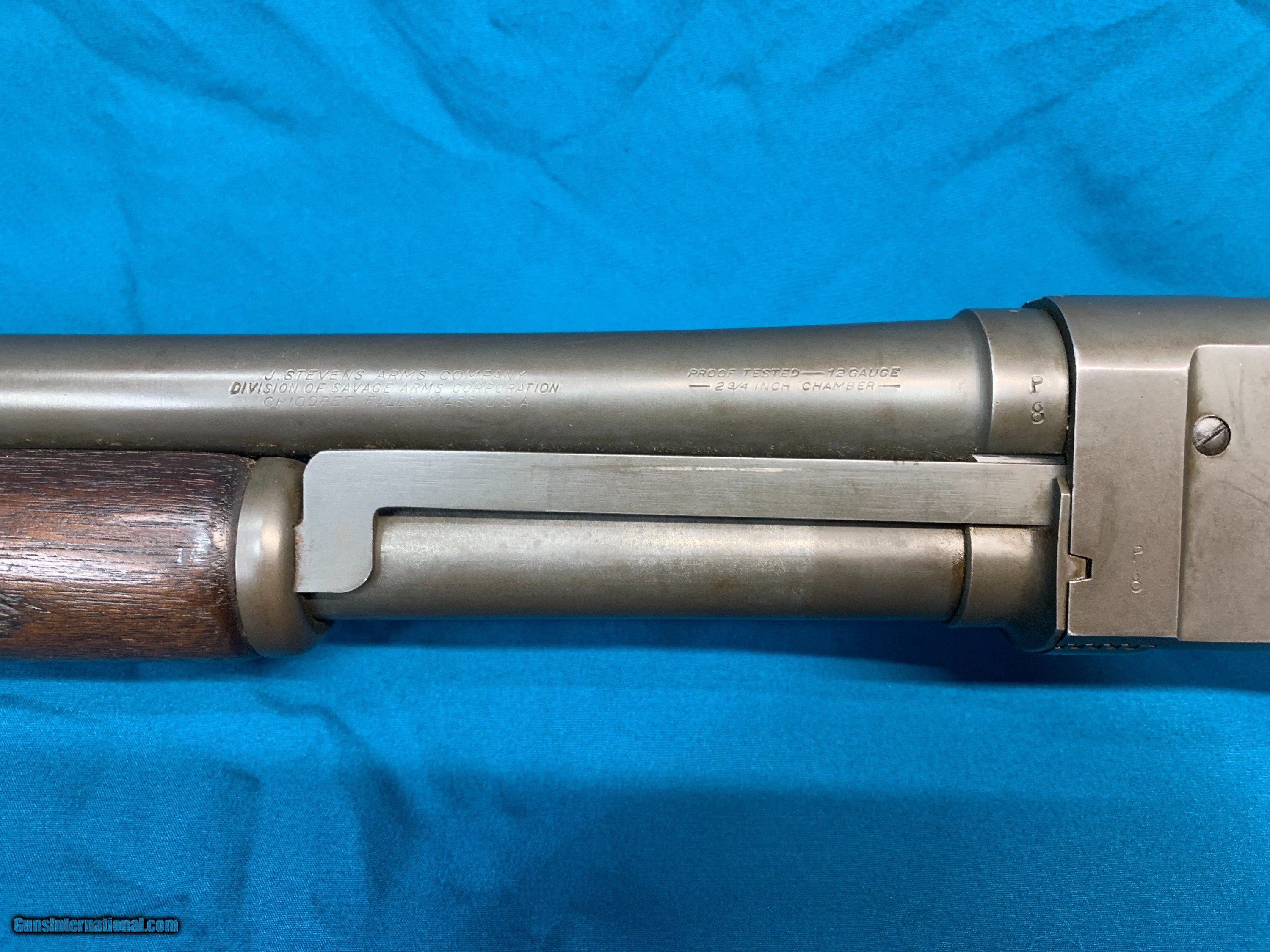 Description: Rare WW2 US Military issued Stevens model 620 pump action 12ga shotgun. Parkerized finish, US marked on the side of the receiver. Original stock with military proof mark on the grip and RA for Raritan Arsenal on the side of the stock. Barrel is 26" choked Improved Cylinder. Overall condition is very good. These were used to train airplane gunners to lead targets during WW2 which is why they were basically standard commercial configuration shotguns slightly modified, marked and issued to the military and it is very unusual to see still in full length configuration as most of these were cut down to try and pass off for Riot guns. See pictures for details, any questions please ask, see my other listings for similar items. For contact, best way is by email or text message, please only call after 5pm eastern time SOLD |