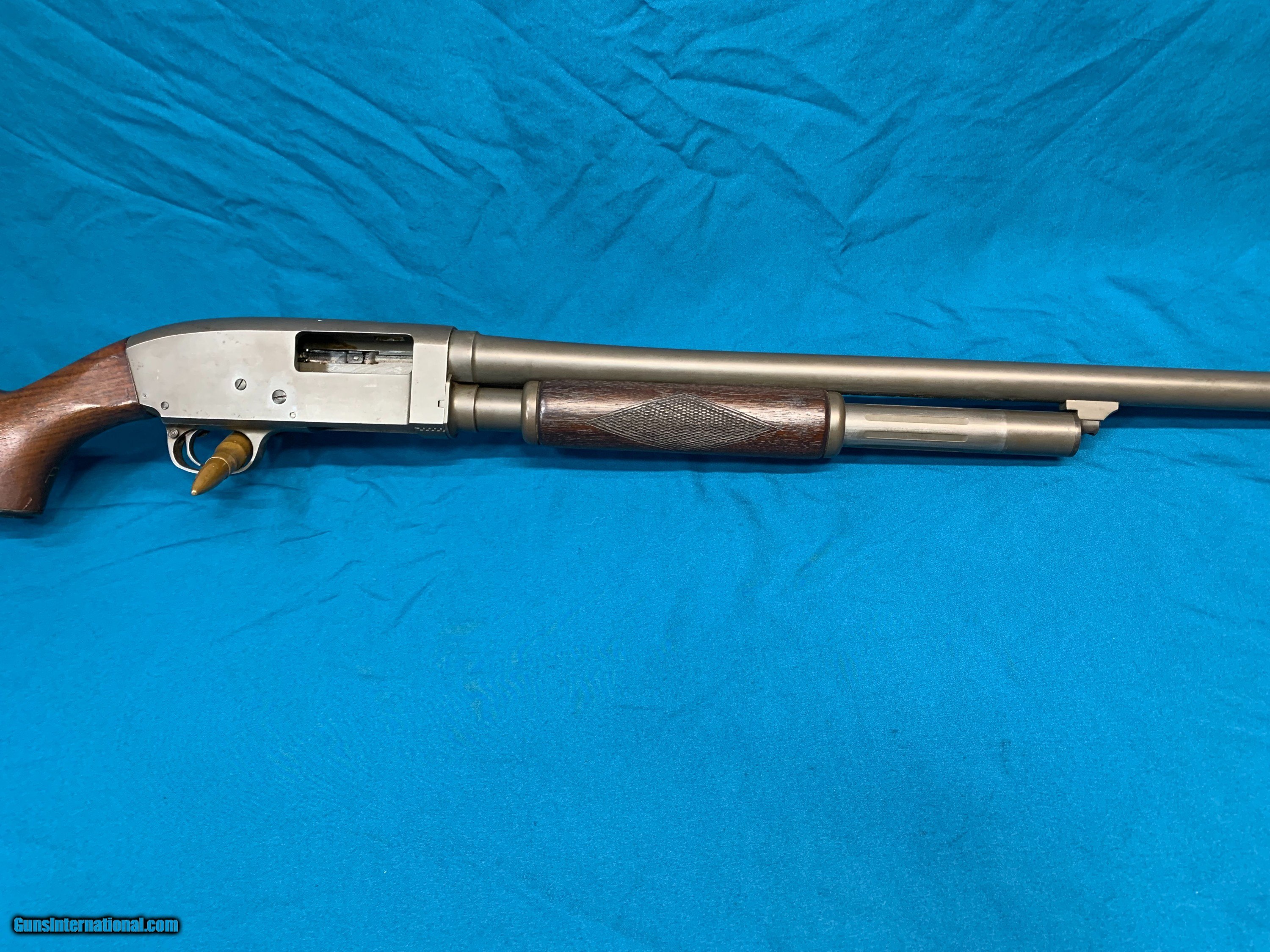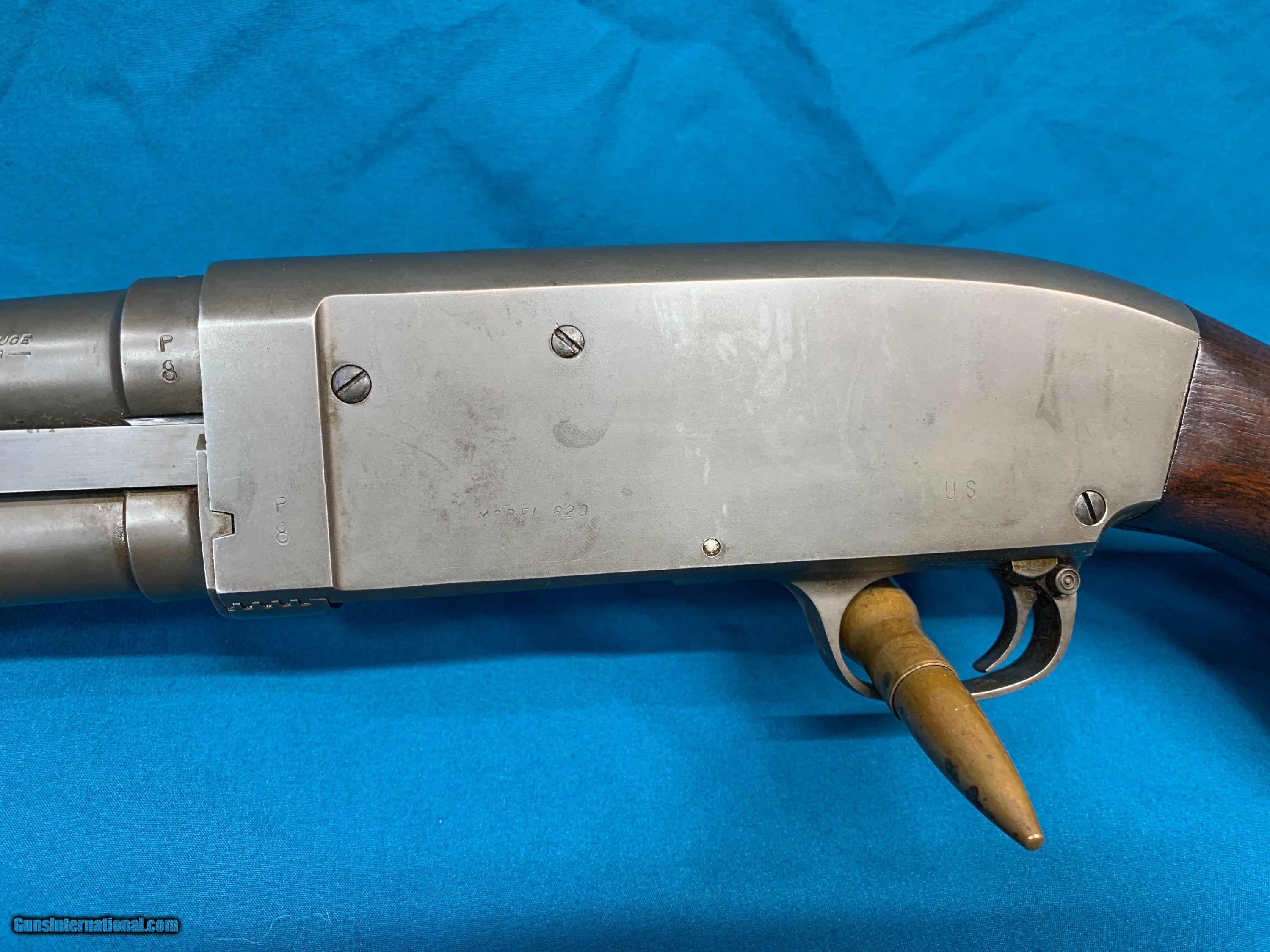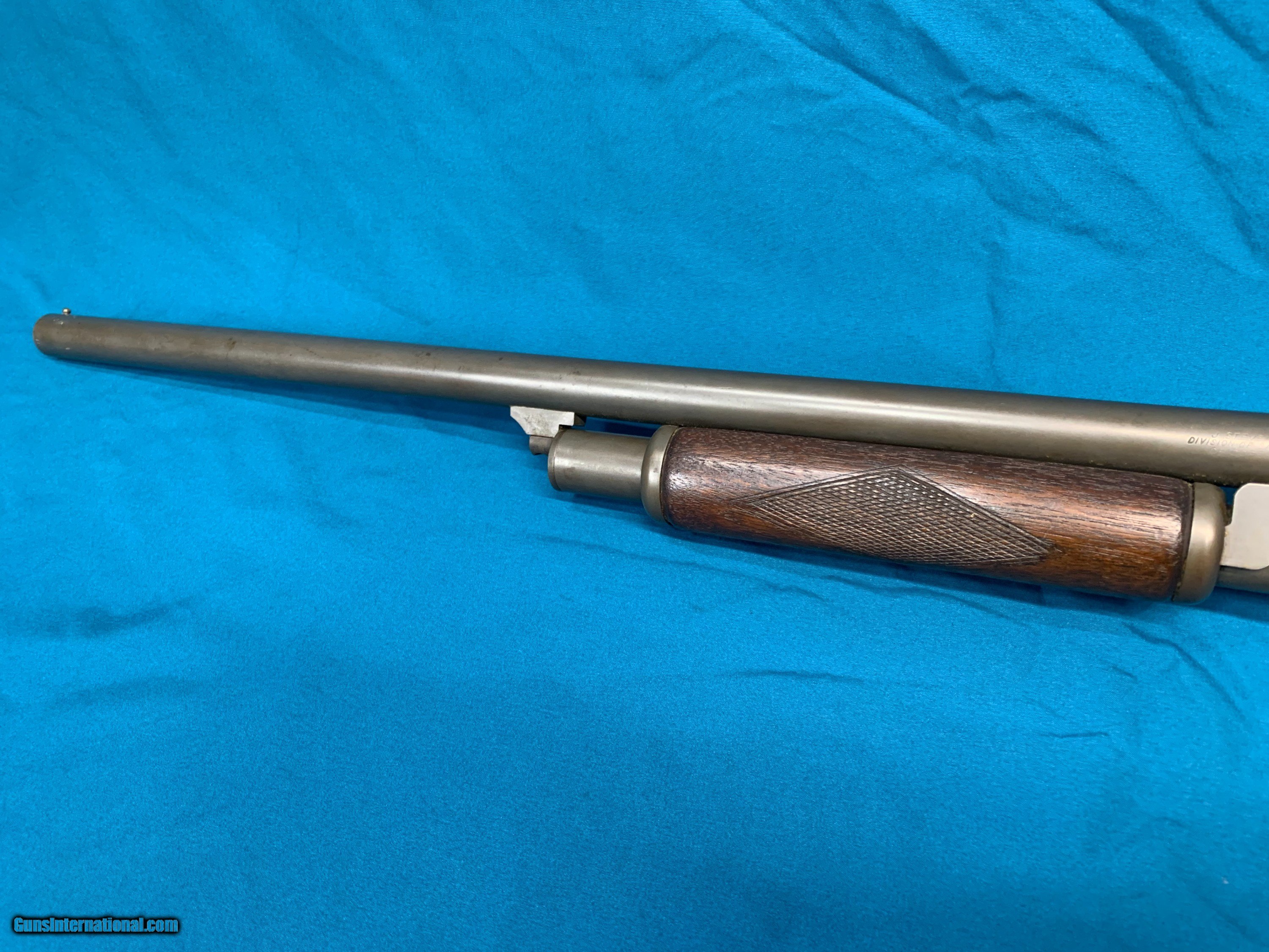 Description: Rare WW2 US Military issued Stevens model 620 pump action 12ga shotgun. Parkerized finish, US marked on the side of the receiver. Original stock with military proof mark on the grip and RA for Raritan Arsenal on the side of the stock. Barrel is 26" choked Improved Cylinder. Overall condition is very good. These were used to train airplane gunners to lead targets during WW2 which is why they were basically standard commercial configuration shotguns slightly modified, marked and issued to the military and it is very unusual to see still in full length configuration as most of these were cut down to try and pass off for Riot guns. See pictures for details, any questions please ask, see my other listings for similar items. For contact, best way is by email or text message, please only call after 5pm eastern time SOLD |