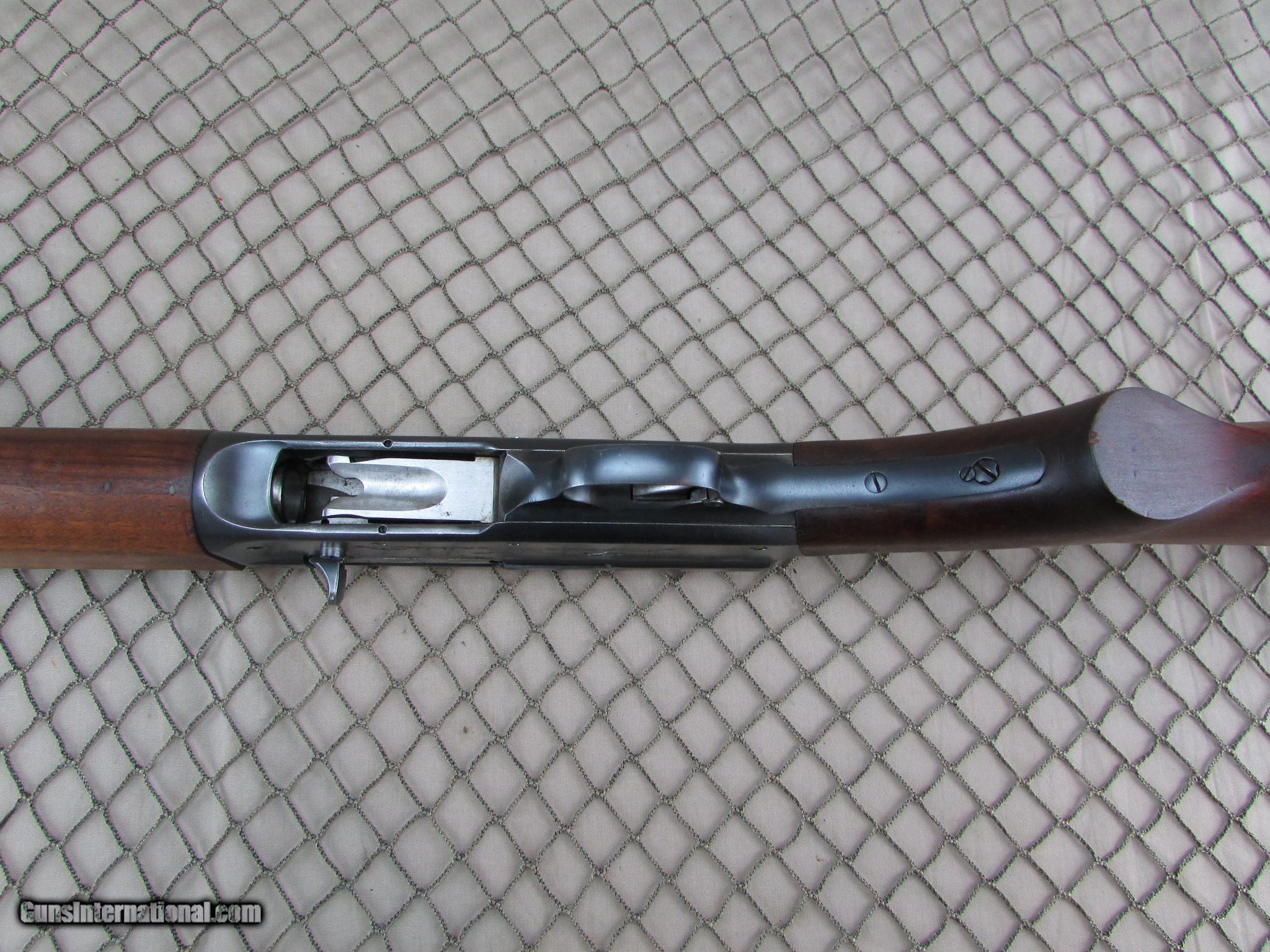 Description: Here is our genuine, unaltered, WWII Remington Model 11 riot shotgun. Its serial number 464660 (which is on both the receiver and barrel). This is an earlier model built in June 1942 as indicated by the code on the barrel “P L”. Because it is an earlier model it also has a commercial-grade polished blue finish and an “engraved” game scene, later models had a “brushed” finish and receivers were plain. This one has the proper martial markings, “U. S.” and “flaming bomb” stamper on the left side of the receiver and top of the barrel. The barrel is 20-inch cylinder bore, bead front sight. Other barrel markings included the date code mentioned above. The barrel also has other letters and symbols that I am assuming are factory inspection symbols. It should be noted too that the difference between the barrel date and the vintage of the gun rarely varied by more than a few months. The top of the barrel just ahead of the receiver was stamped “U. S.” and Ordnance Department “flaming bomb.” The stock is a plain, unadorned oil finished wood and there is no grove on the fore-end. The inside of the forearm has the proper decaled information on how to set the friction rings. Most stocks were serially numbered to match the receiver but the number cannot be seen unless the stock is removed and it fits much too tight for me to attempt to do that and possibly damage it. Note the serial number on the end of the fore-end. Note the scratch on the “D” of the “MODEL 11” bolt Please look at the pictures closely as I am selling as is. I have not shot this weapon; however, it appears to be in very good or better condition. Need more photos? We got 'em! SOLD Curio/Relic: Yes Shotgun Gauge: 12 Gauge Manufacturer: Remington Model: 11 Barrel Length: 20 inches |