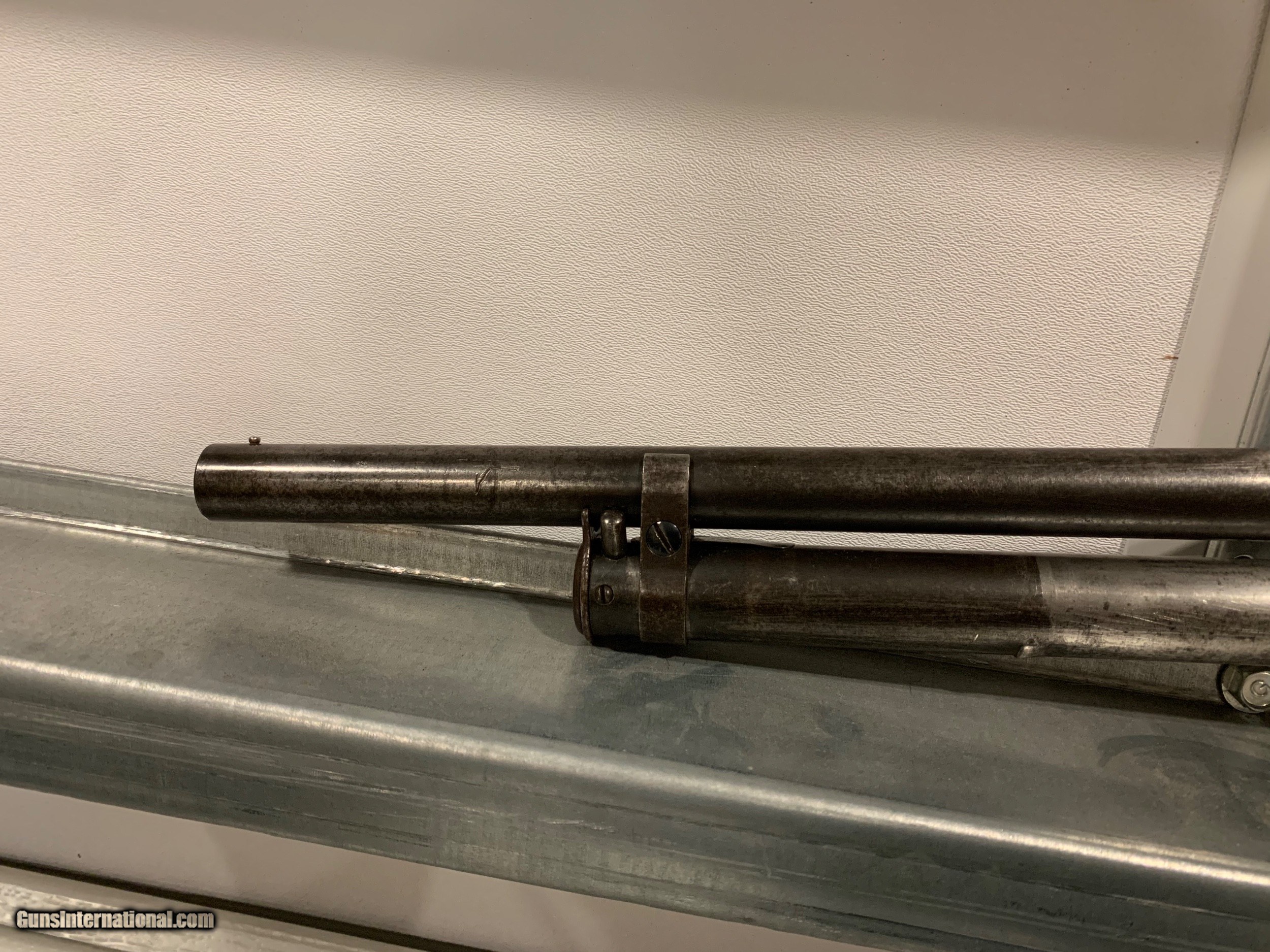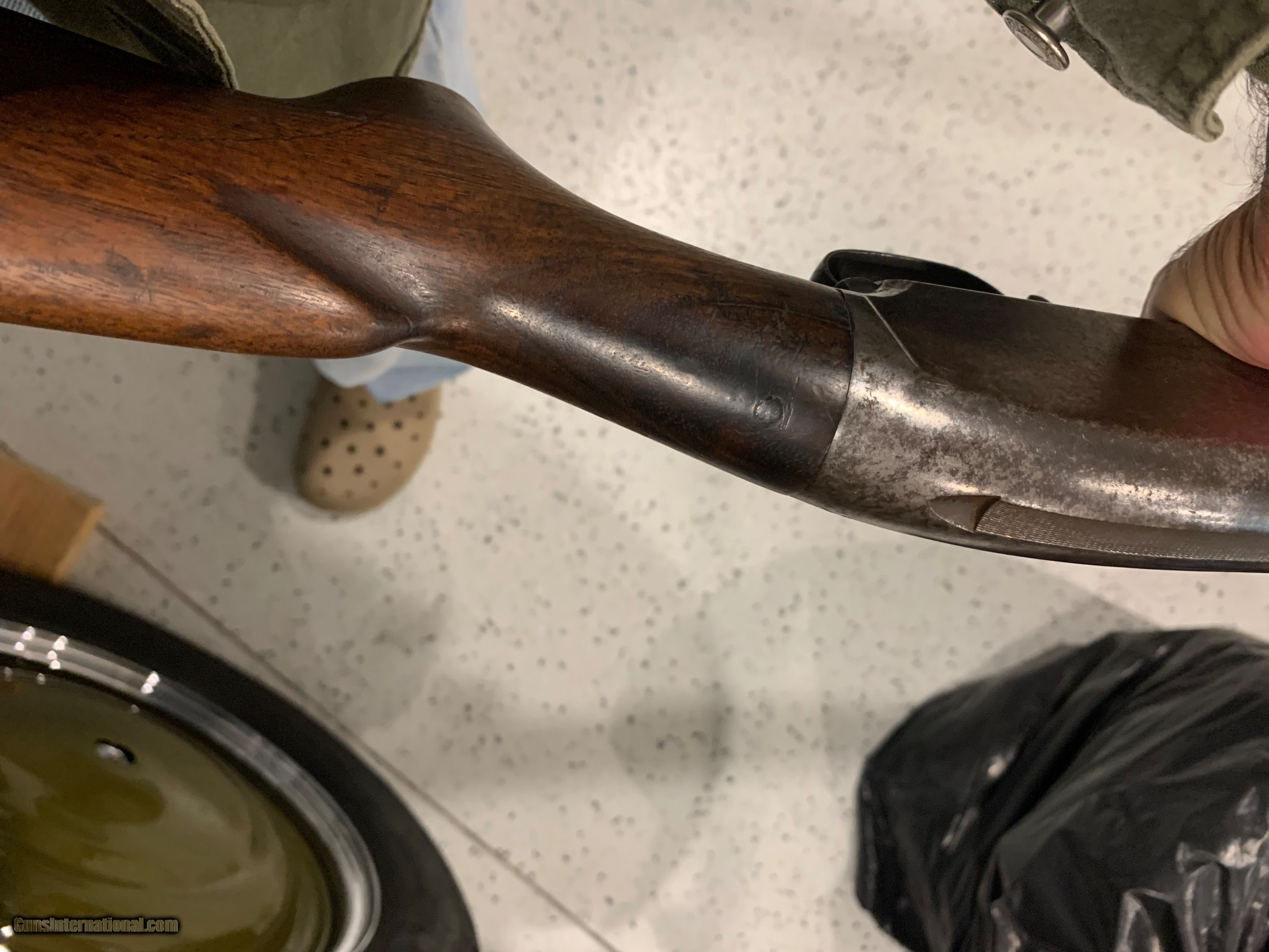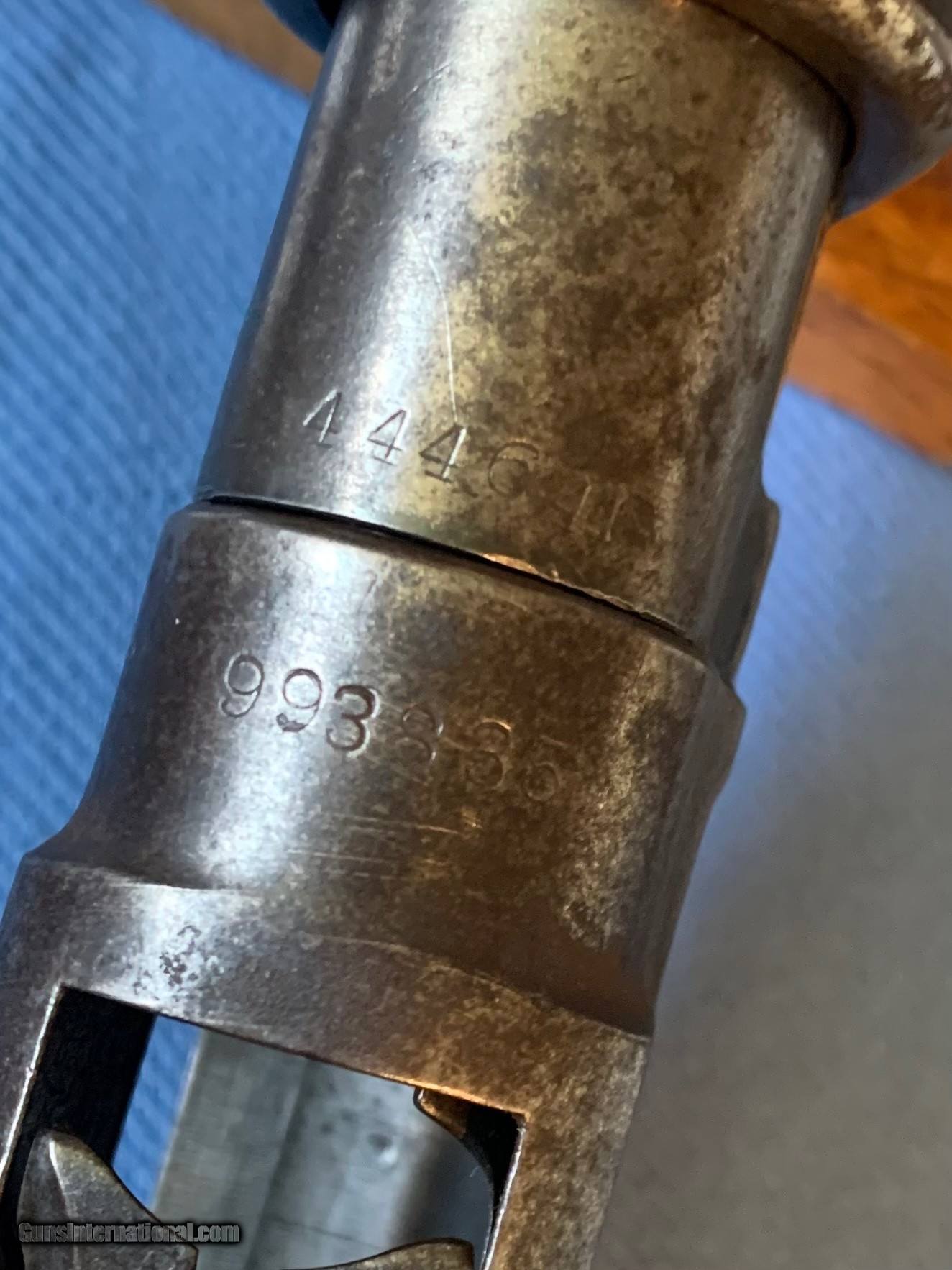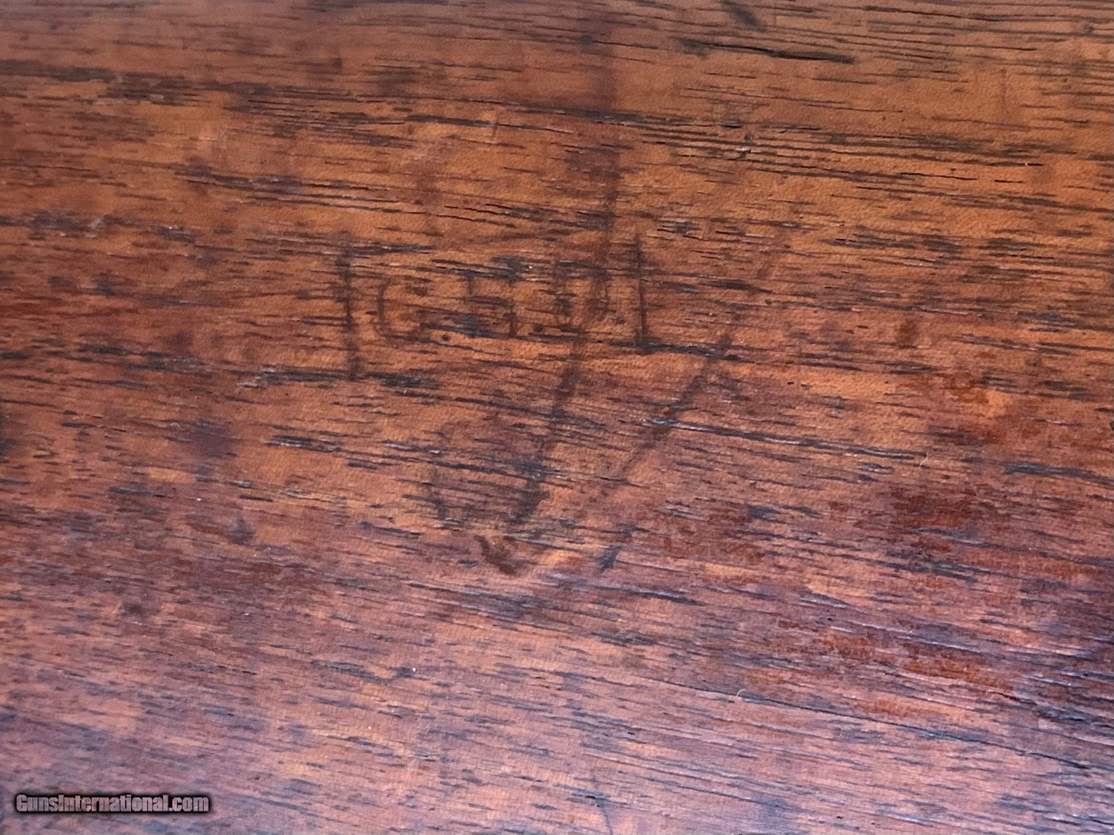 Description: Here's a WW2 Used Winchester model 12 Riot Gun ! Serial number 993885 . Barrel and frame don't match . looking at this gun you can see that it's been together forever , so we believe this was a field mix and used this way during WW2 . Gun is in used condition. Metal finish has turned a brown patina. With scratches and handling marks . Walnut stock is original and has a vivid GHD and Winchester Wheel stamped in proper location on stock . Stock has a old repair on wrist . Butt plate I replaced because the original butt plate was missing a chip and was cracked in 2 spots ( see photo ) . Original butt plate I will include. U.S. stamped on frame . Barrel has correct CYL marking below full stamp, which was crossed out and CYL stamped below. This was a Arsenal Rework from full to cylinder choke . Typical during WW2 . All markings are very visible. Bore and mechanics are excellent! Gun locks up tight and is in excellent working order ! Overall a very good Example of a WW2 Winchester Military Riot gun in 12 gauge . Please review my photos and please email me with any questions? 3 day inspection as allways ! Thank you for looking Little Jo SOLD Curio/Relic: Yes Shotgun Gauge: 12 Gauge Manufacturer: Winchester Model: Model 12 Serial Number: 993885 |