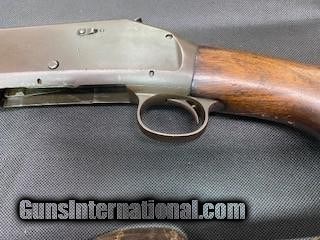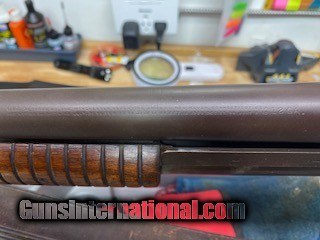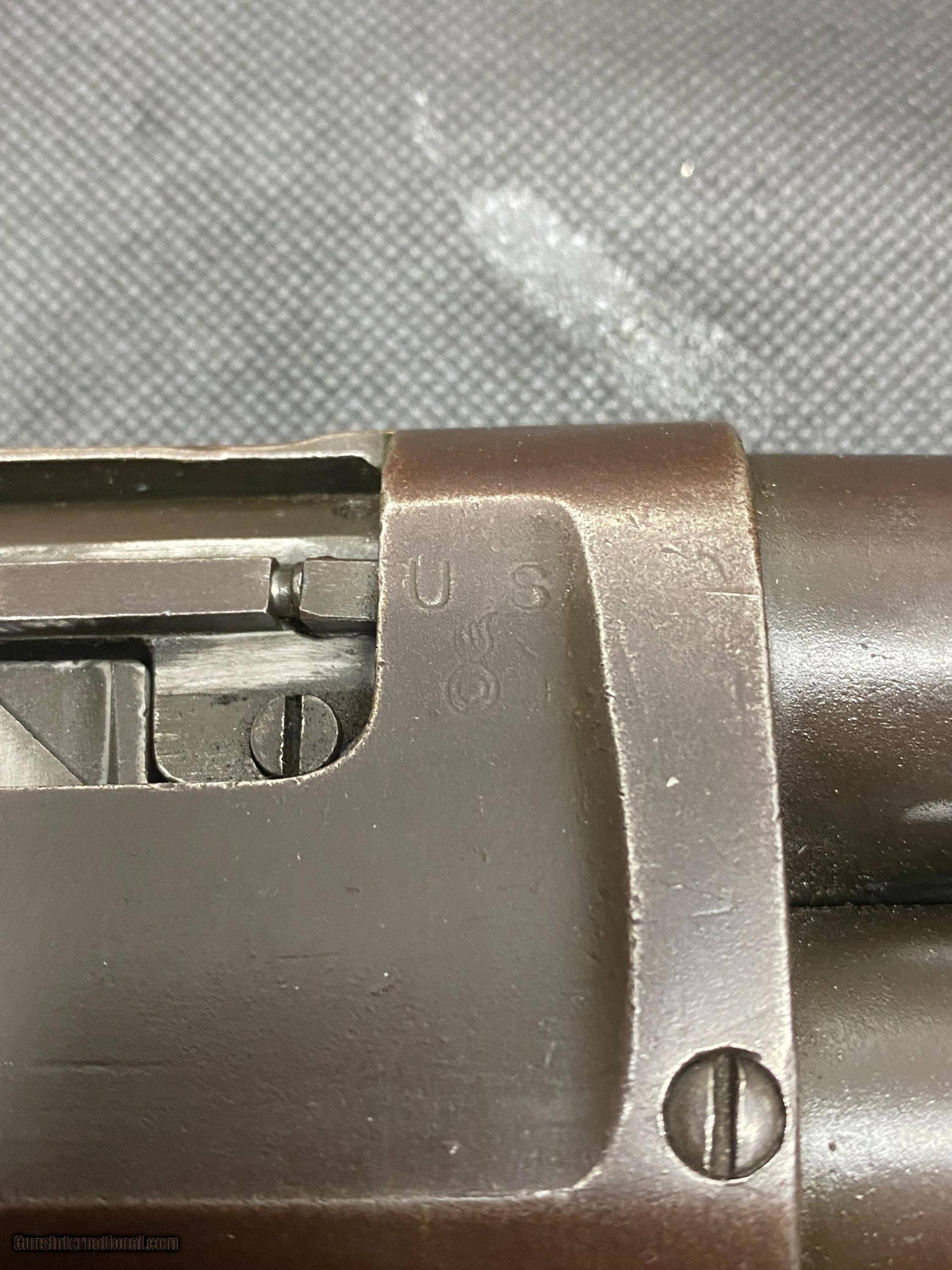 Description: Winchester Model 1897 Trench Gun WW1 solid frame 12 gauge pump action shotgun. In really good shape considering its age, over 100 years, serial number E675393 falls within the range (E613000-E705000) for procurement of of WW1 model 1897s. The gun has all the martial markings as described in Canfield's COMPLETE GUIDE to United States Military Combat Shotguns (page 50), i.e. handstamped US (obvious misalignment) and flaming bomb on the right side. It has the standard 20 inch cylinder bore barrel as indicated by the "CYL" stamp. It also has the "WP" Winchester Proofed on the top of the receiver and all the slide markings. Thje buttplate is the standard factory black plastic with the Winchester logo. The sling swivels include the lower swivel inletted and screwed to the bottom of the buttstock, the upper swivel attached to the back of the bayonet lug. The gun has been parkerized and according to Canfield this can be encountered but relatively few of them were aresenal rebuilt however, this does have ordnance markings on the buttstock "O. G." (Ogden Utah) and a "W" marked bayonet lug. I have not fired the gun but the person I purchased said they did? I am selling it as shown in the photos. I have 15 more photos I can share. Sling not included. Thank you to Bruce N. Canfield's book as all this information came from his book. SOLD Curio/Relic: Yes Shotgun Gauge: 12 Gauge Manufacturer: Winchester Model: 1897 Barrel Length: 20 inches |
