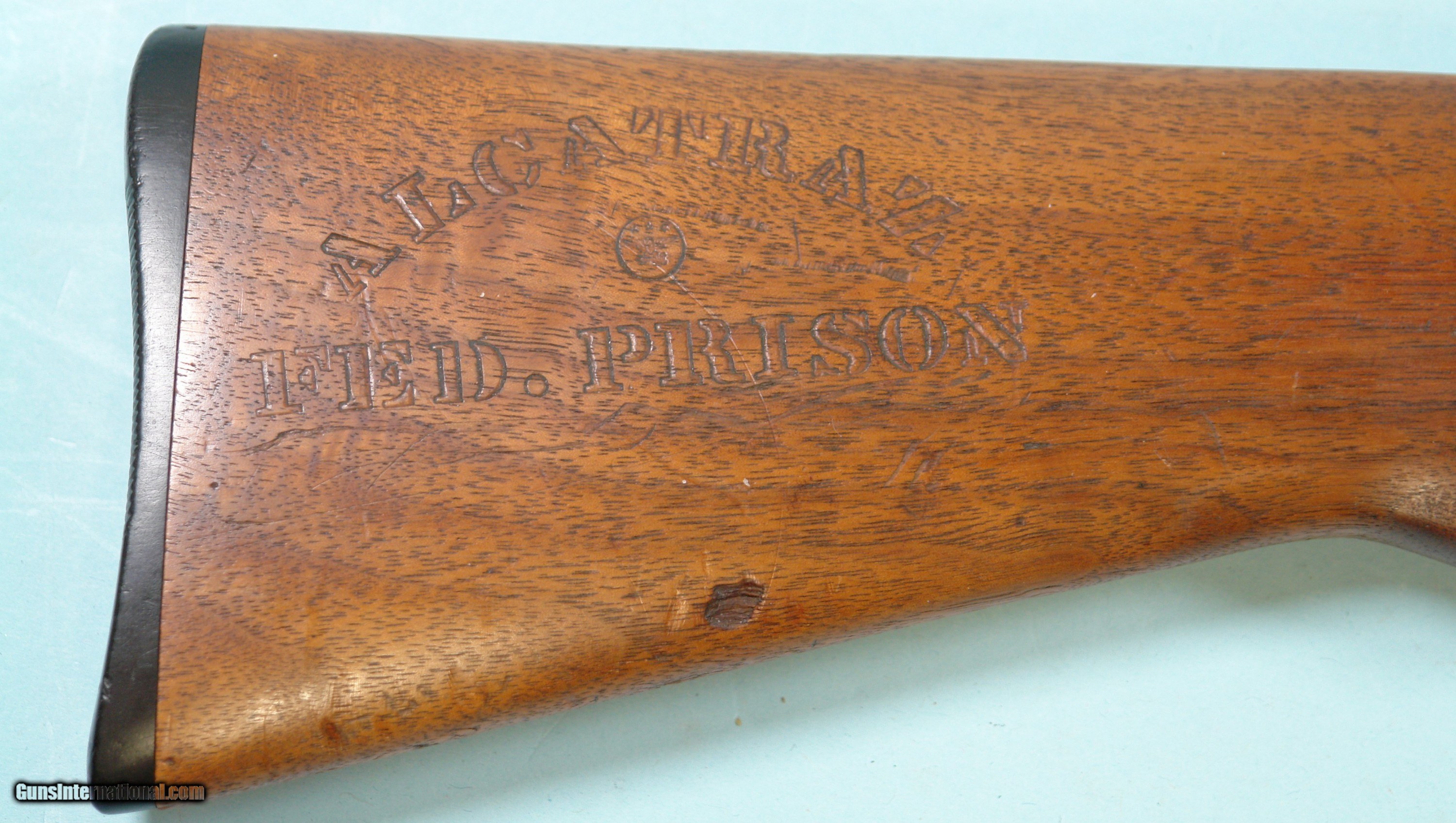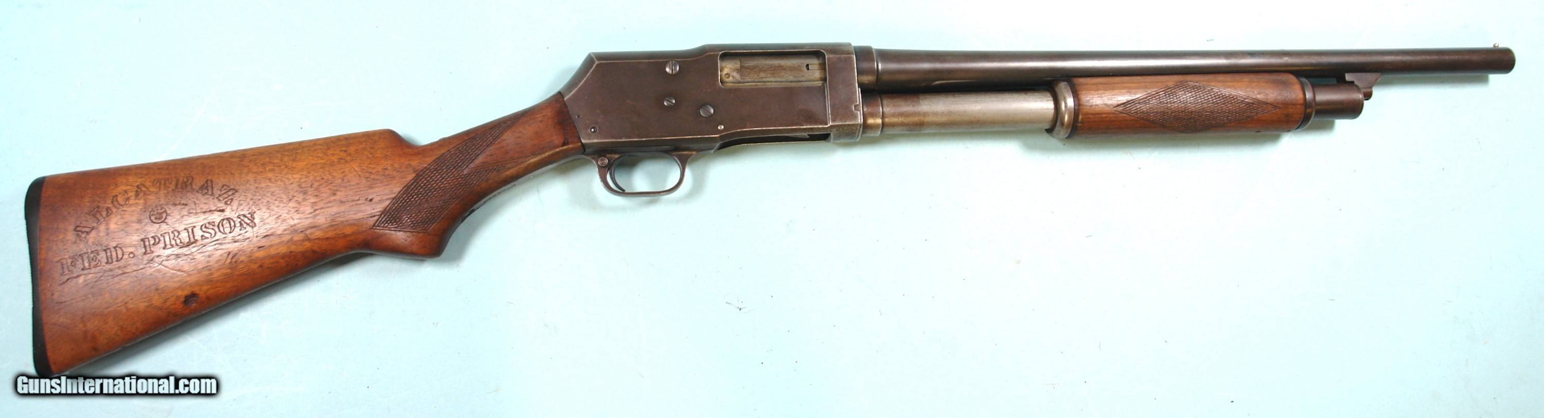 Description: WW2 ERA WESTERN FIELD-STEVENS MODEL 30 U.S. 16 GAUGE RIOT GUN CIRCA 1940’S. 20” barrel. Underside of frame stamped “I/U.S.”. Appears all original with moderate blue and stock wear overall. Working order and good bore. Right side of stock stamped “ALCATRAZ/FED. PRISON” which looks old. SOLD Curio/Relic: Yes Shotgun Gauge: 16 Gauge |
